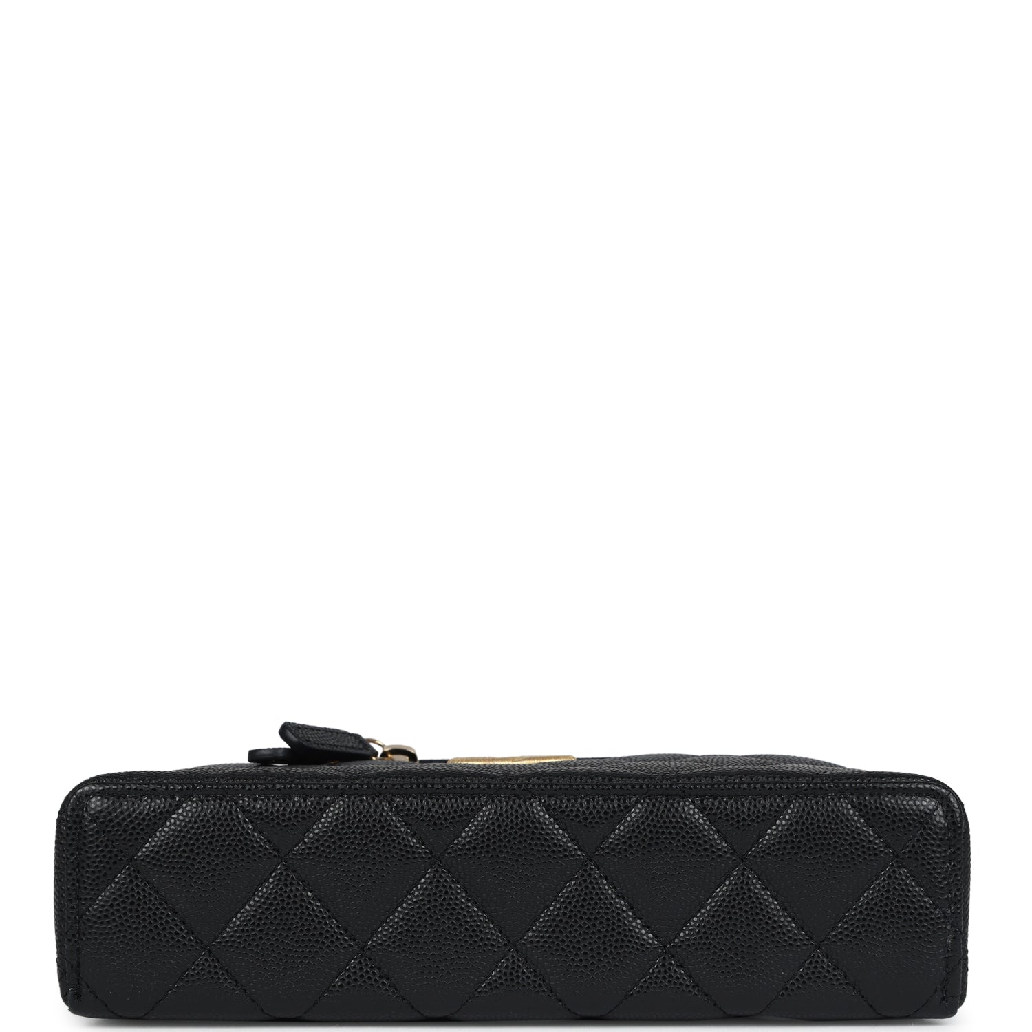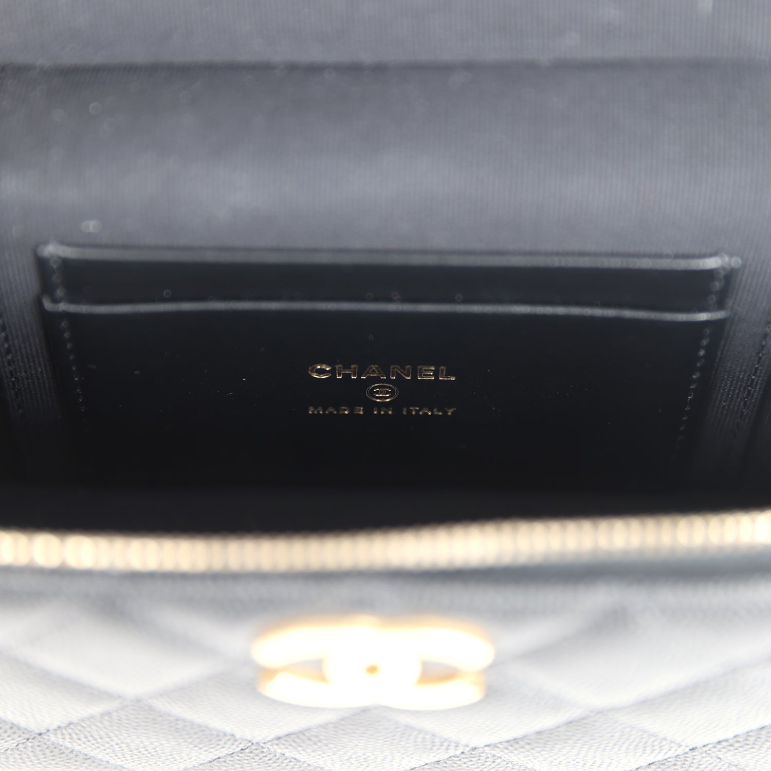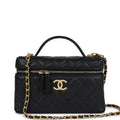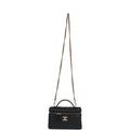 Chanel Top Handle Long Vanity Case With Chain Black Shiny Caviar Brushed Gold Hardware