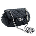 CHANEL Chain Around Shoulder Bag Crossbody Black Calfskin Leather j91
