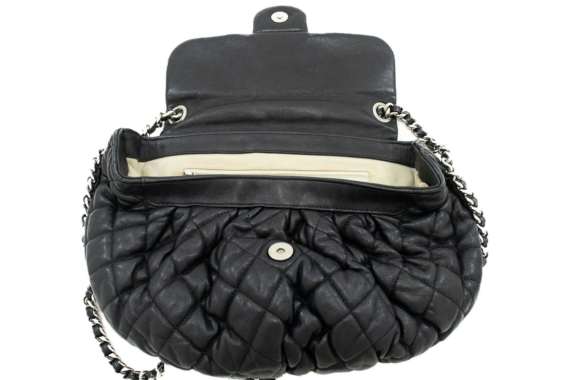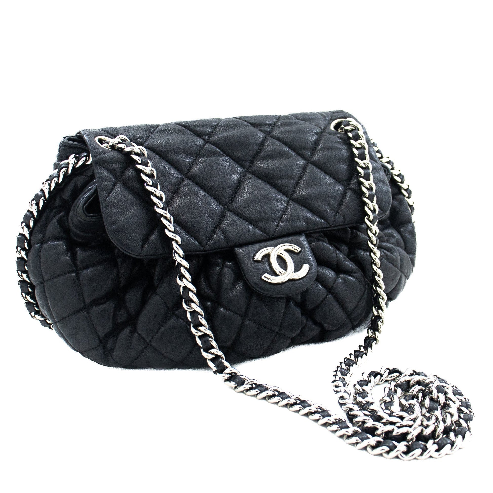 An authentic CHANEL Chain Around Shoulder Bag Crossbody Black Calfskin Leather j91 This item is Contemporary. The year of manufacture would be 2011.