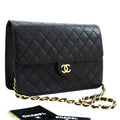 CHANEL Chain Shoulder Bag Clutch Black Quilted Flap Lambskin Purse j78