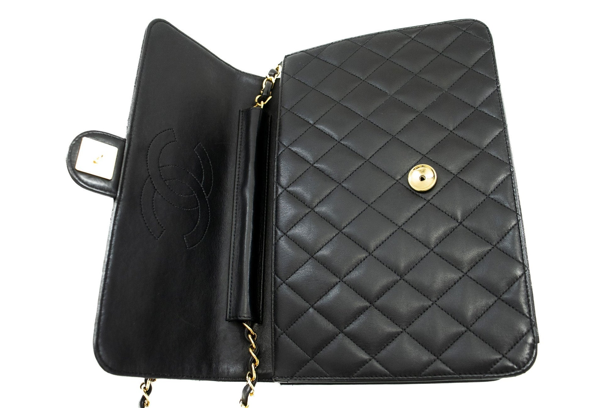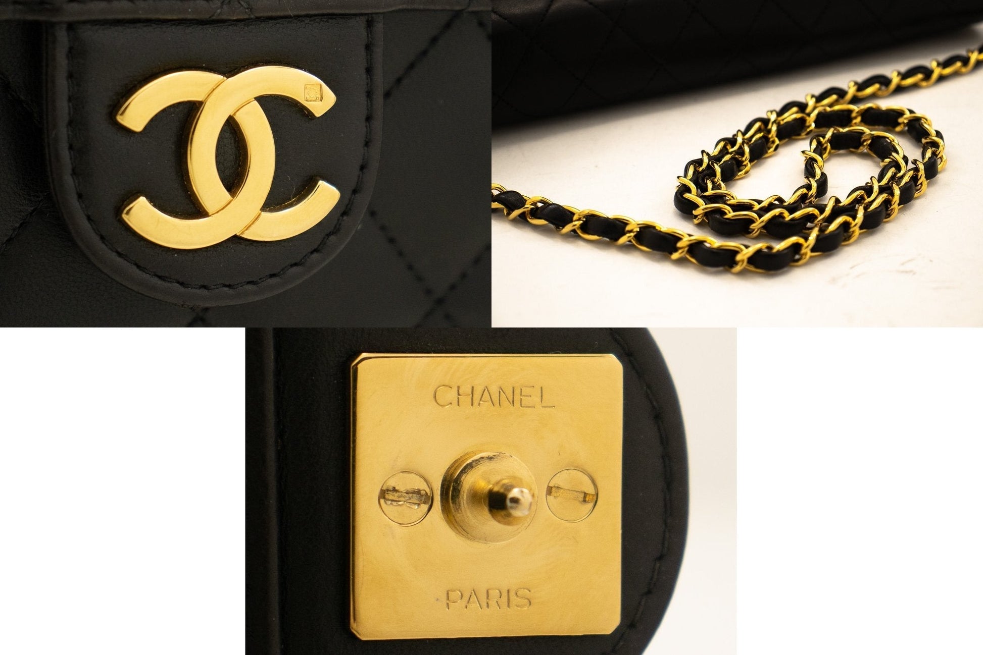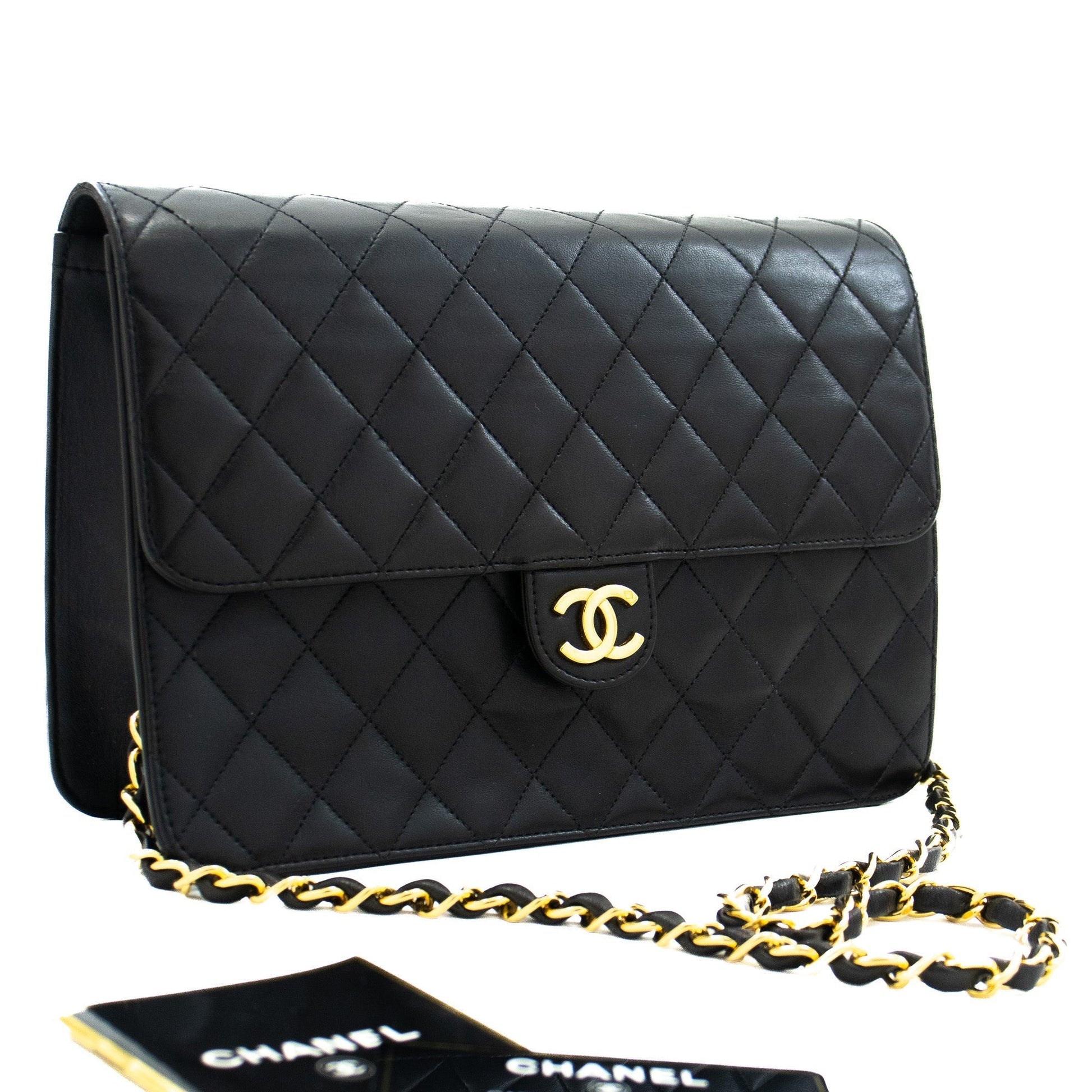 An authentic CHANEL Chain Shoulder Bag Clutch Black Quilted Flap made of black Lambskin Purse j78 This item is Vintage / Classic. The year of manufacture would be 1997-1999.