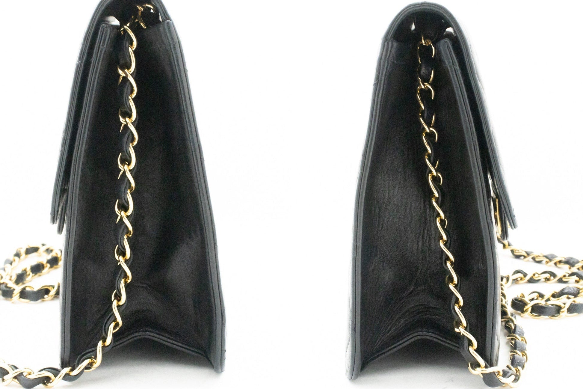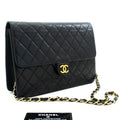 CHANEL Chain Shoulder Bag Clutch Black Quilted Flap Lambskin Purse k05