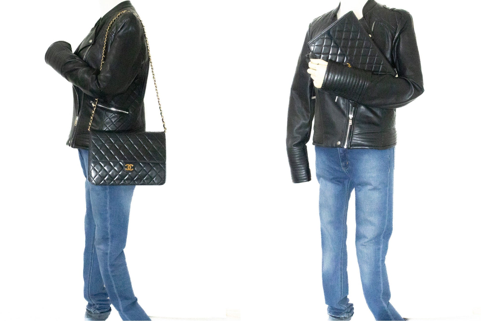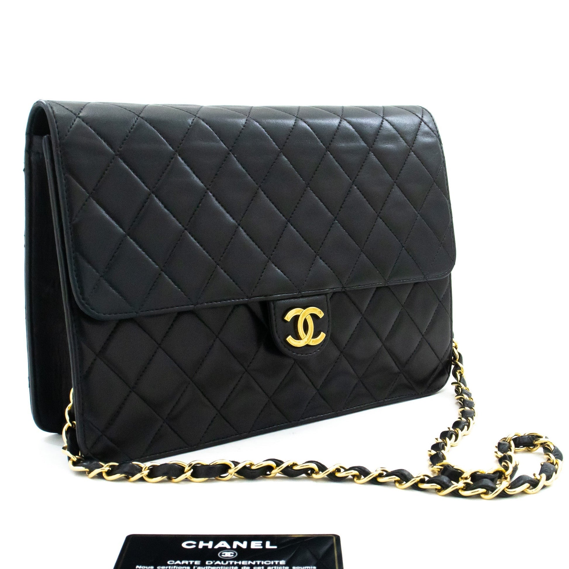 An authentic CHANEL Chain Shoulder Bag Clutch Black Quilted Flap made of black Lambskin Purse k05 This item is Vintage / Classic. The year of manufacture would be 1997-1999.