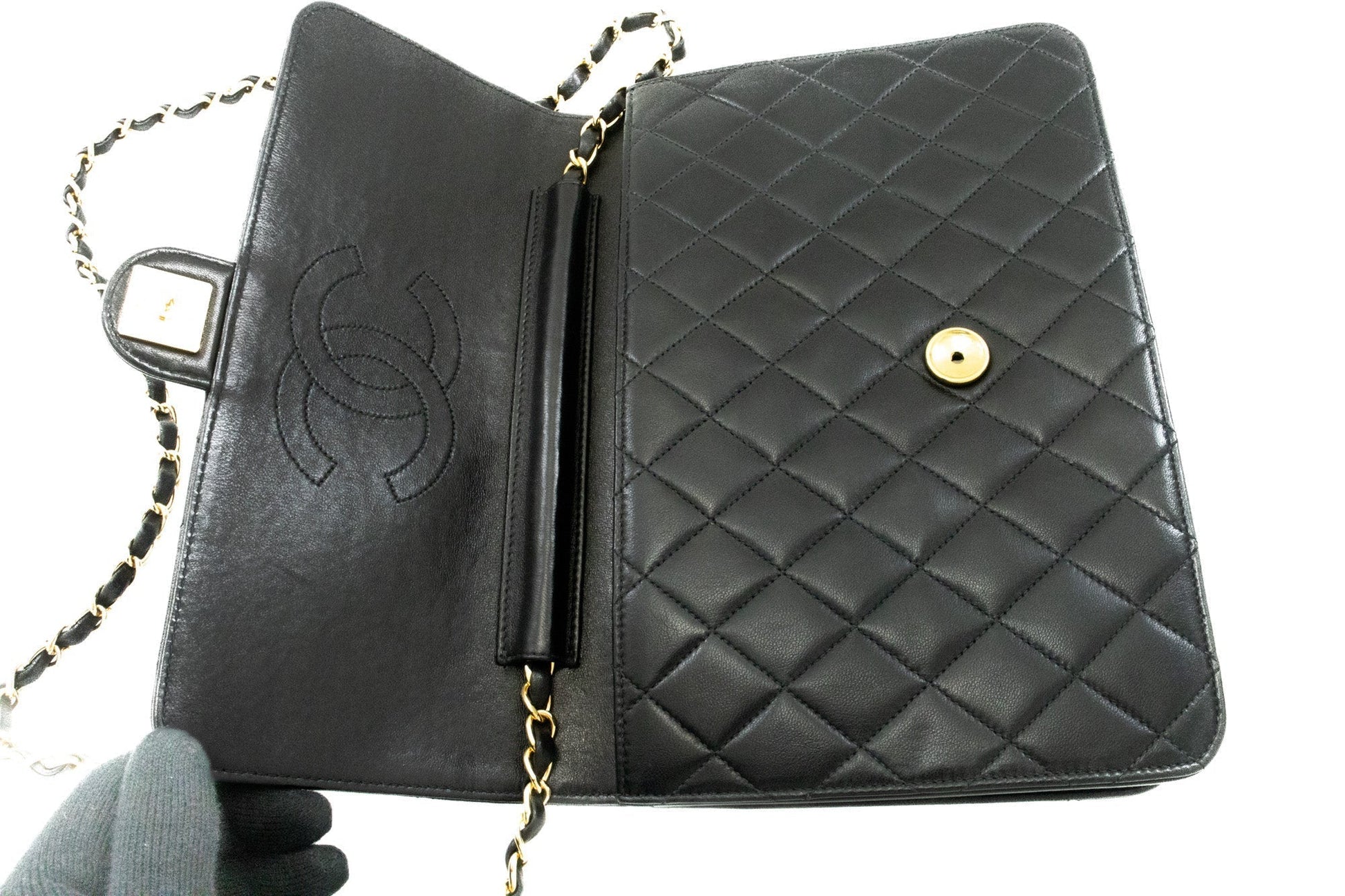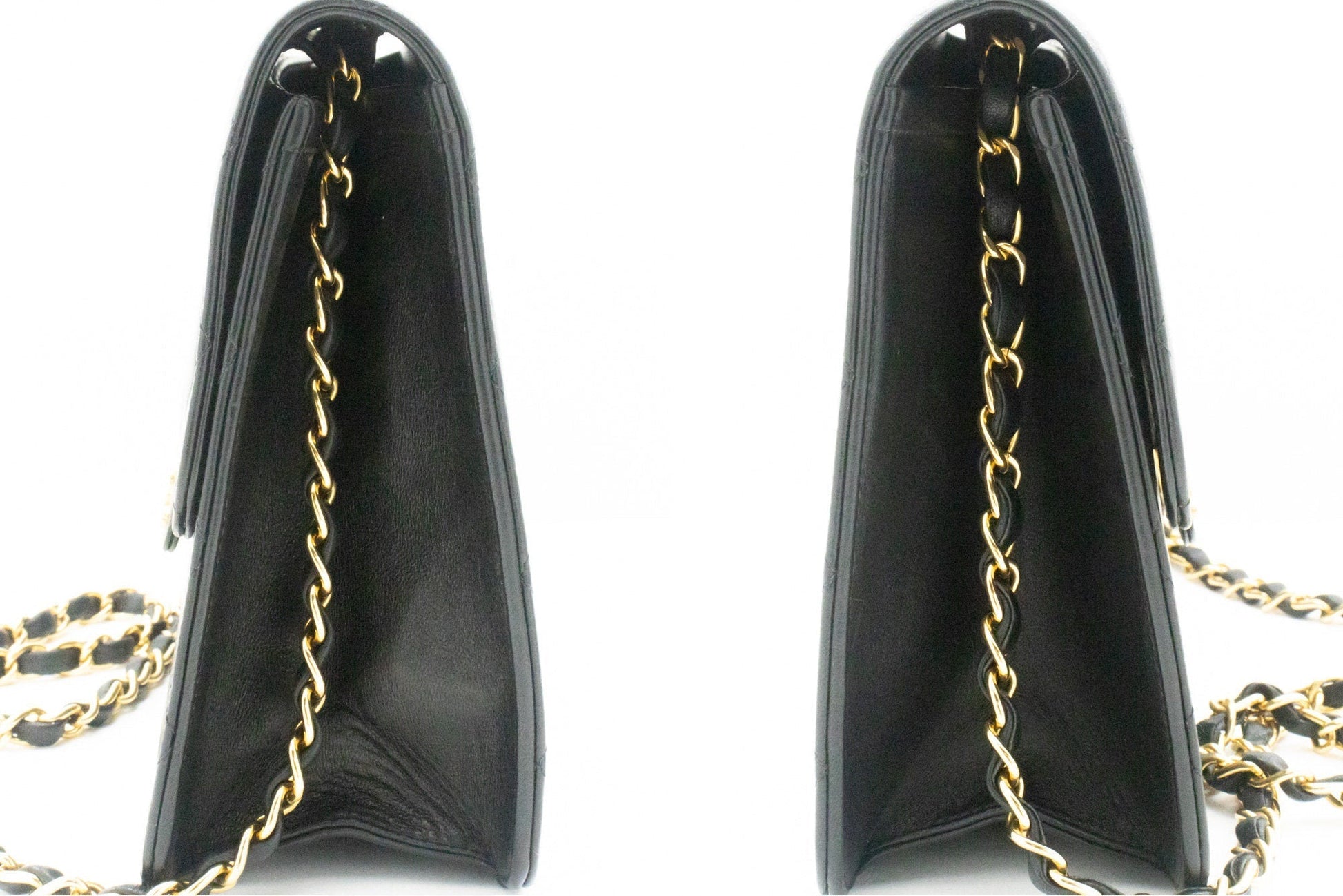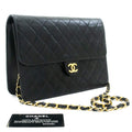 CHANEL Chain Shoulder Bag Clutch Black Quilted Flap Lambskin Purse k11
