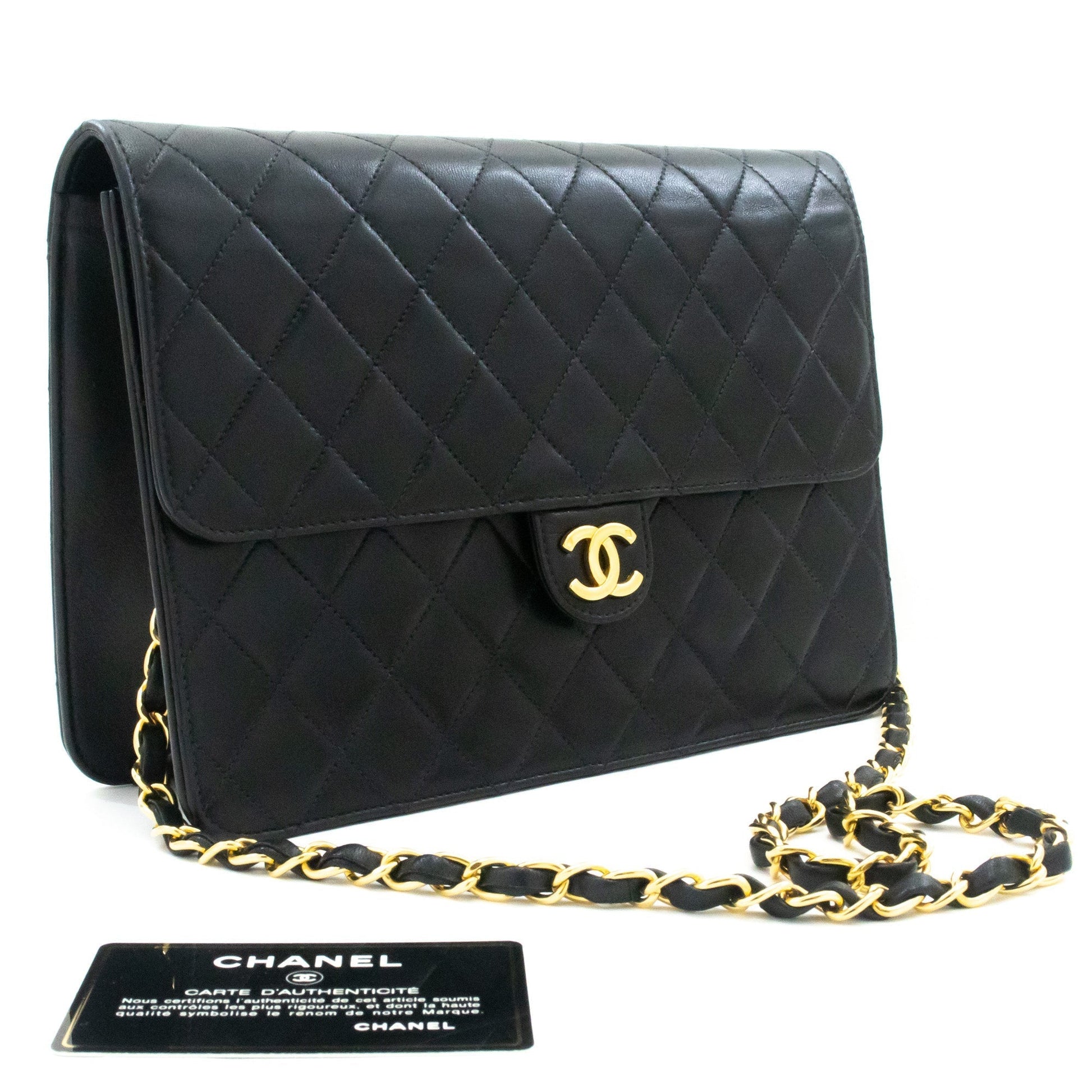 An authentic CHANEL Chain Shoulder Bag Clutch Black Quilted Flap made of black Lambskin Purse k11 This item is Vintage / Classic. The year of manufacture would be 2000-2002.