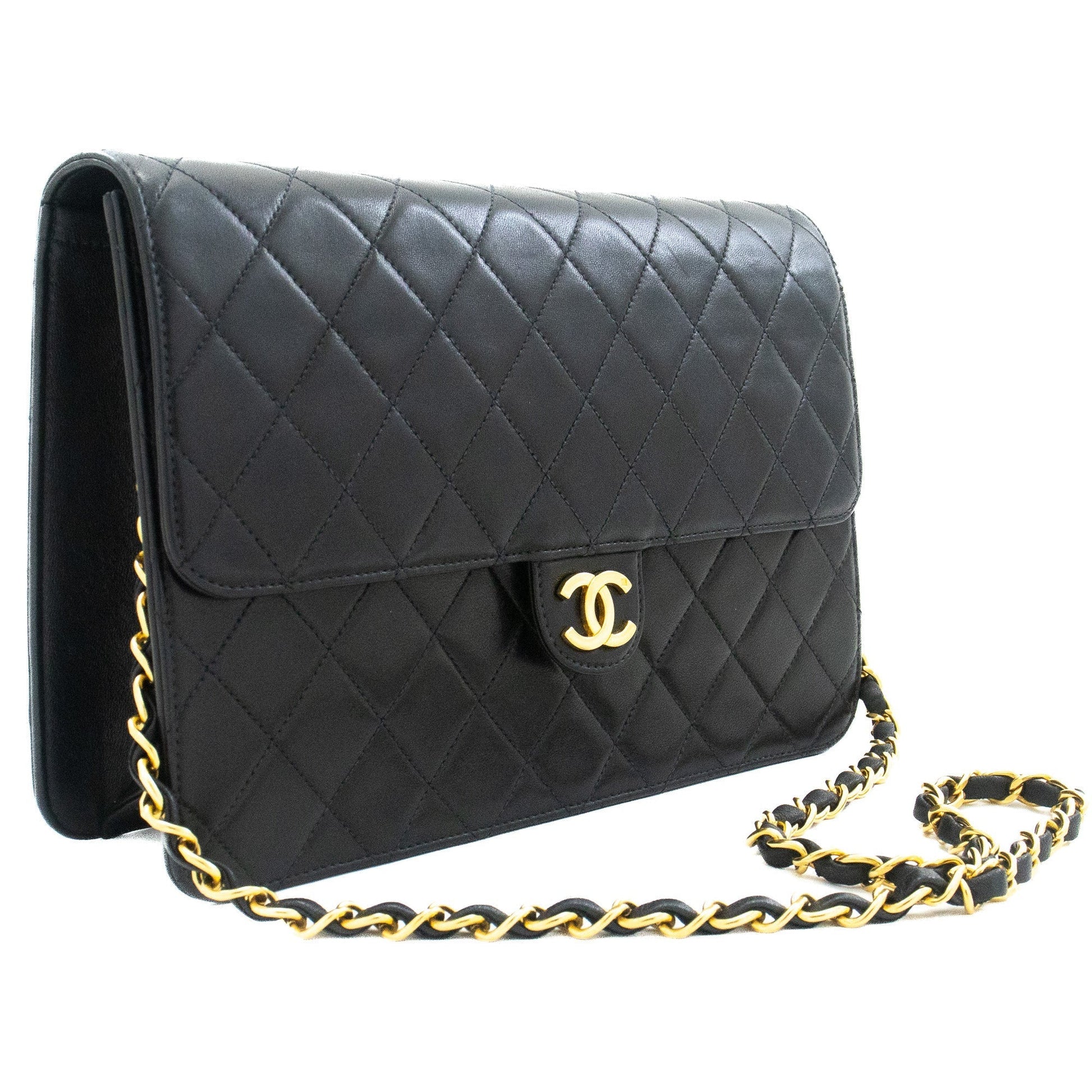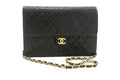 CHANEL Chain Shoulder Bag Clutch Black Quilted Flap Lambskin Purse k13