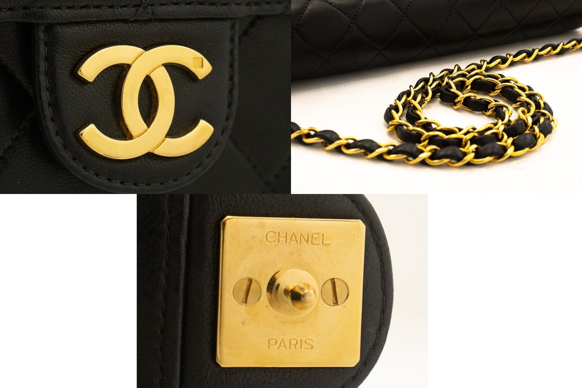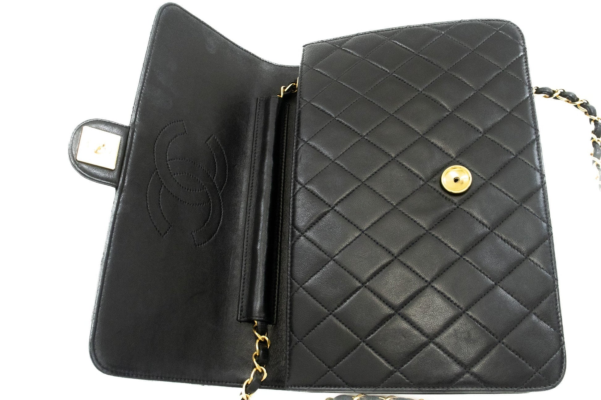 An authentic CHANEL Chain Shoulder Bag Clutch Black Quilted Flap made of black Lambskin Purse k13 This item is Vintage / Classic. The year of manufacture would be 1996-1997.