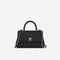 Chanel Small Coco Handle Black Caviar / Burgundy Lizard Handle Champagne Gold Hardware