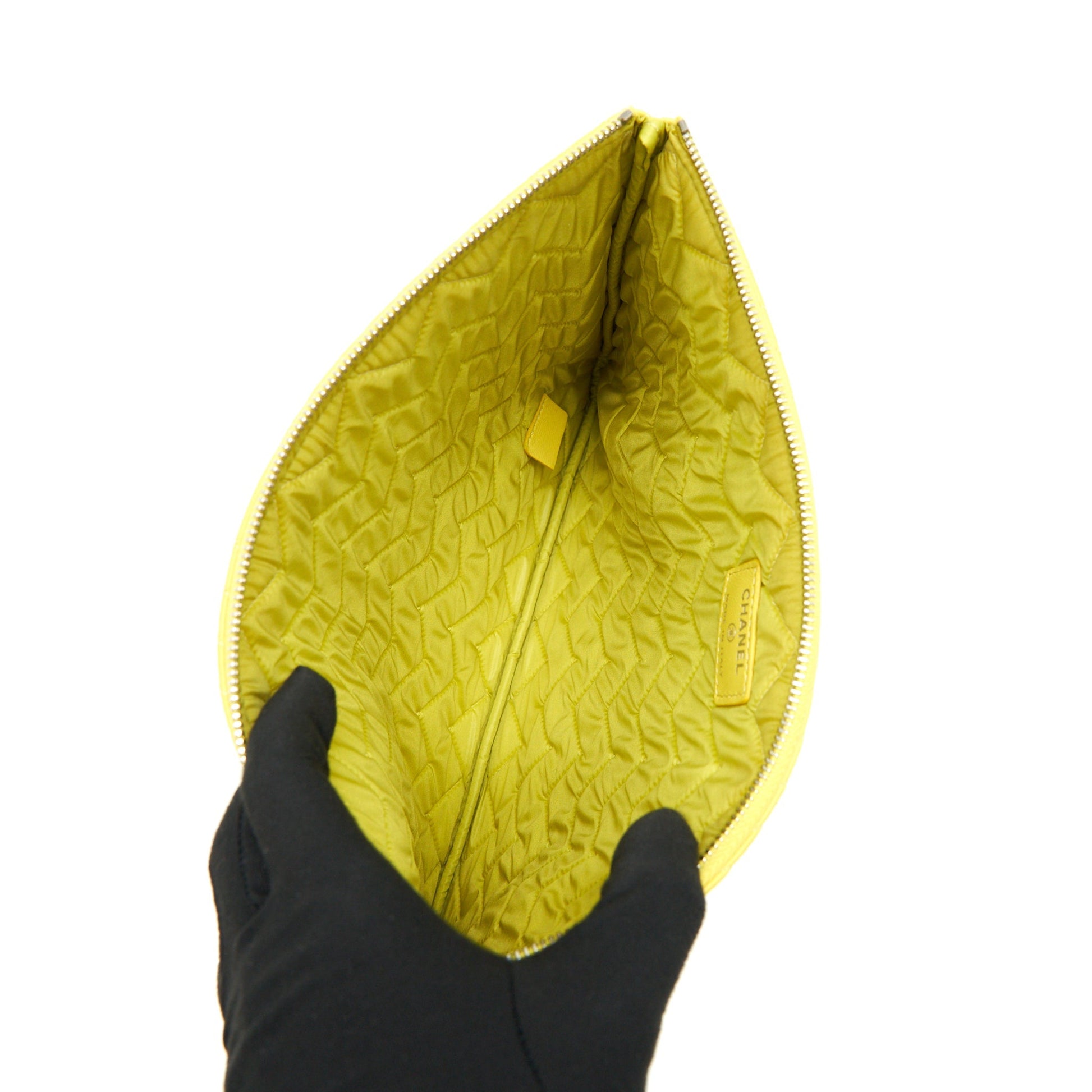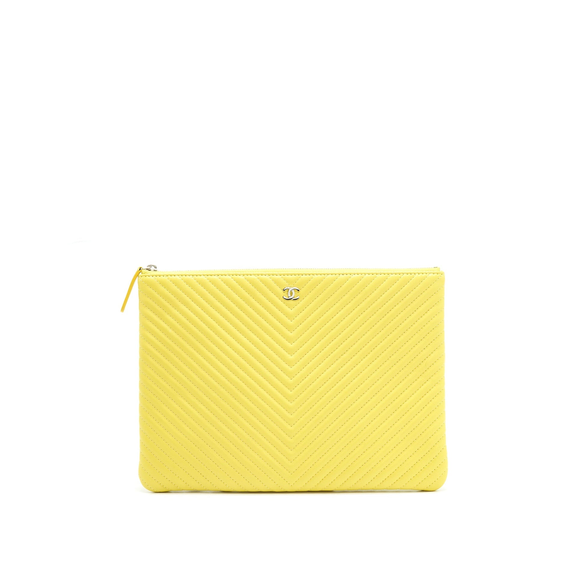 CHANEL CHEVRON CLUTCH BAG IN YELLOW SHW