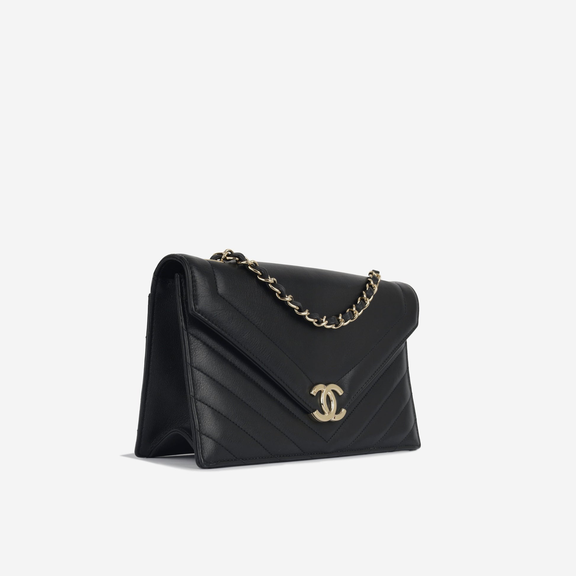 Introducing the Chevron Envelope Flap Bag – Your Timeless Chanel Elegance. Discover the epitome of sophistication with our CHANEL Calfskin Chevron Stitched Small Coco Flap Bag in Black. Crafted to perfection, this stylish bag showcases the artistry of chevron-quilted lambskin leather in a sleek black hue.