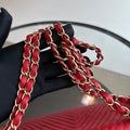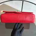 Chevron Herringbone Medallion Seasonal Flap Red Calfskin AGHW No 21