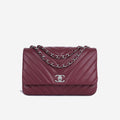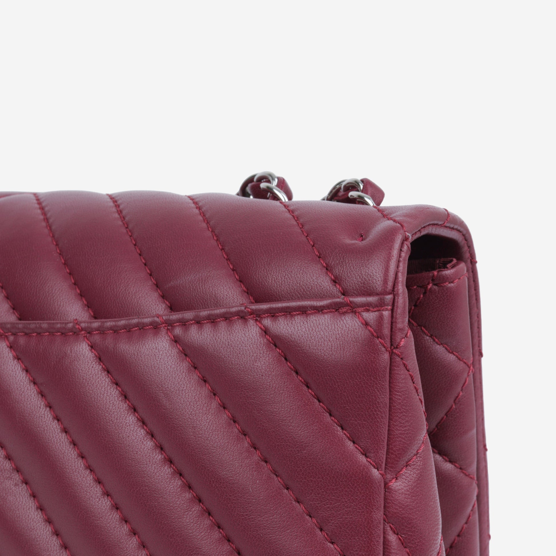 For those who like something a little different than a classic flap, the Chevron Statement Flap is crafted lambskin leather and accentuated with silver hardware. This bright piece is a complete showstopper and will make you stand out in any crowd.