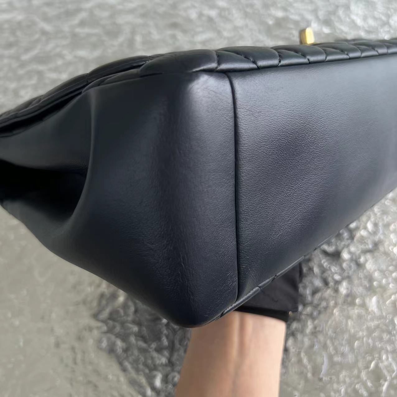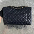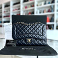 Chic Flap Jumbo Quilted Calfskin Dark Blue Golden Hardware Series 21