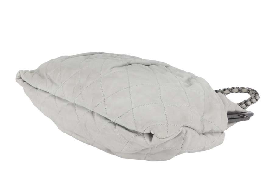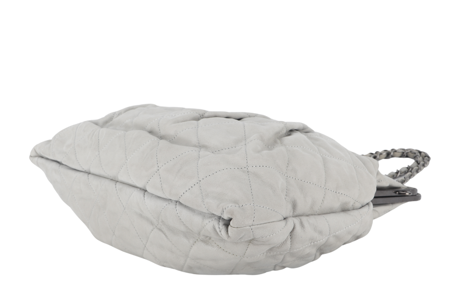 CHANEL CHIC FRAME TOTE (1484xxxx) LIGHT GREY CALFSKIN SILVER HARDWARE WITH AND DUST COVER