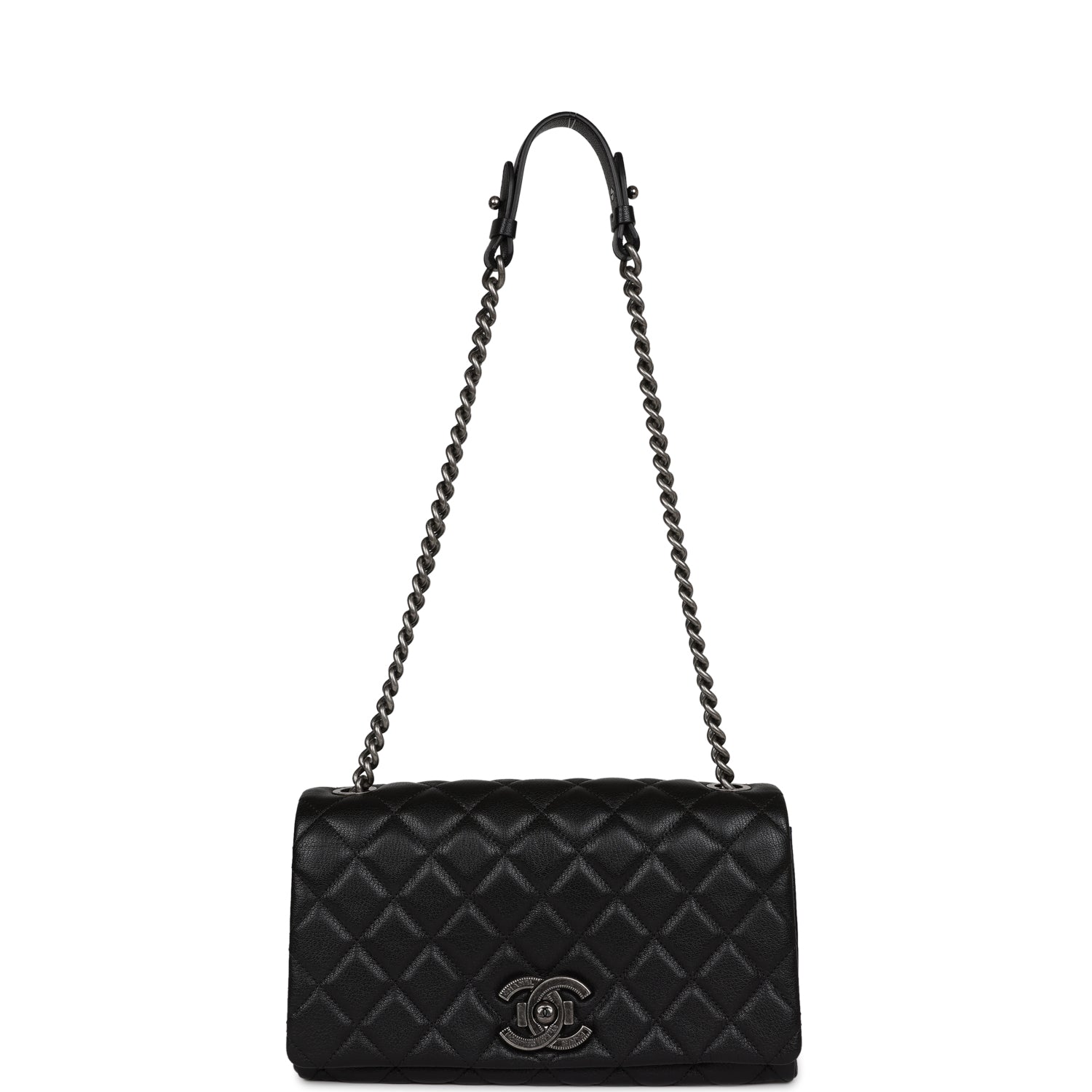 Chanel City Rock Medium Flap Black Goatskin Ruthenium Hardware