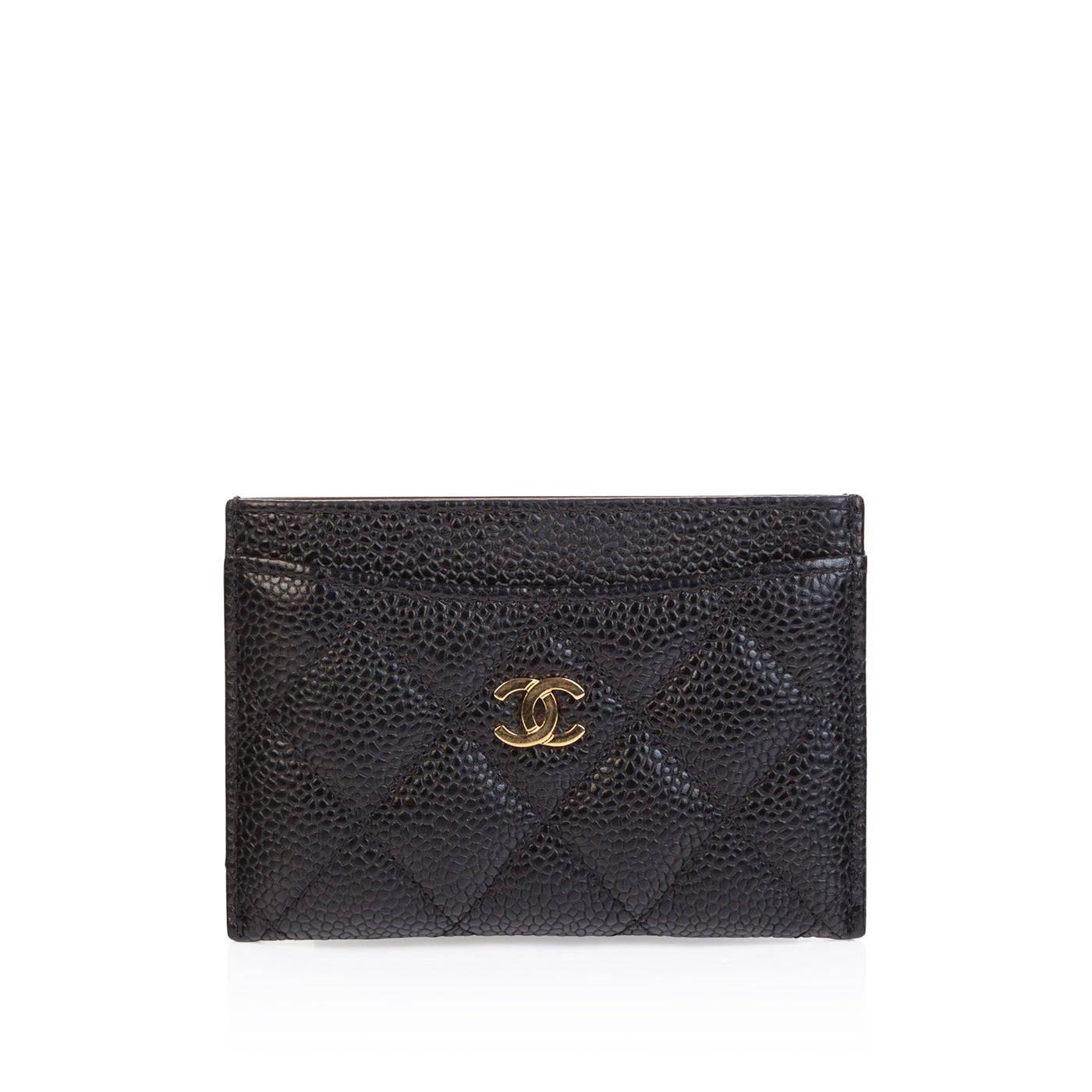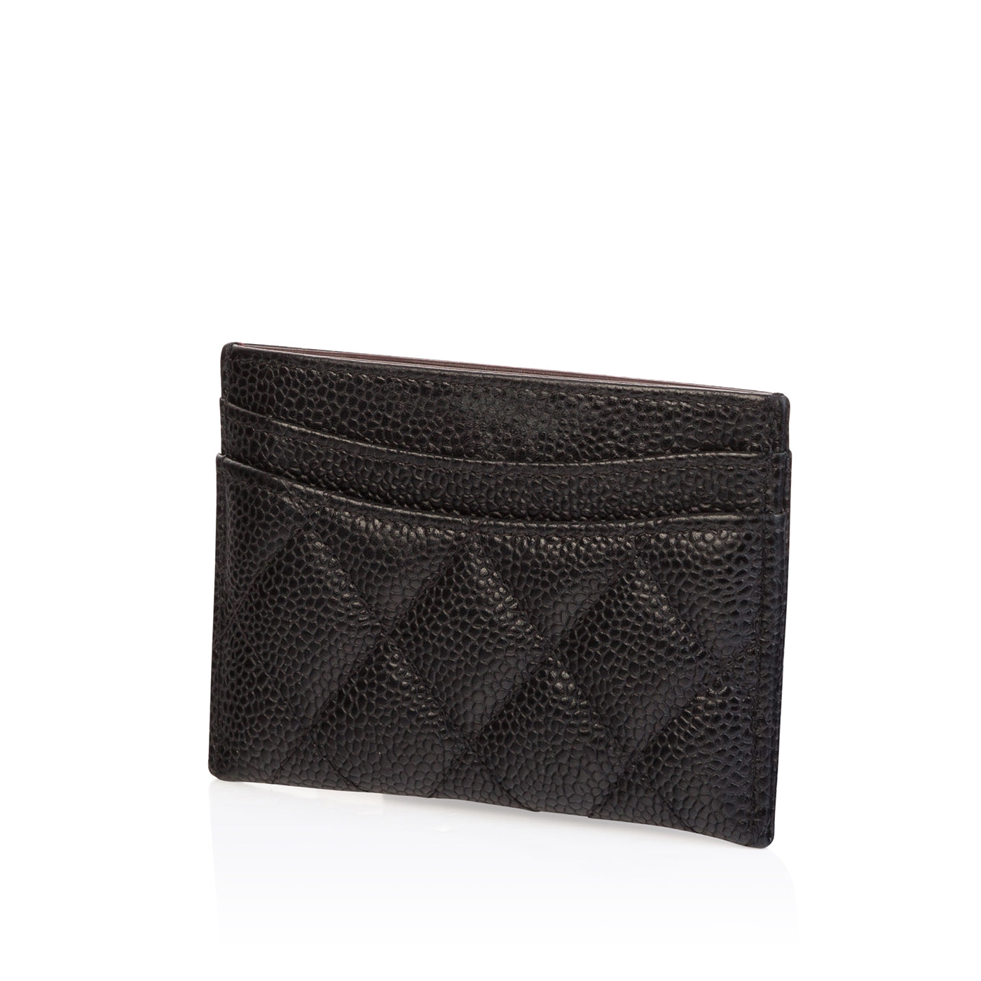 Carefully crafted from the brand's signature caviar leather, Chanel presents this stunning cardholder. This beautiful and romantic piece oozes elegance and femininity. A timeless accessory that will never go out of style, this is a piece you will have forever. With three card slots and Chanel's iconic CC logo prominently embossed at the front, this cardholder is a true must-have for any woman with a love for mini classics.