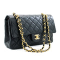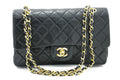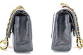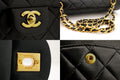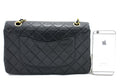 CHANEL Classic Double Flap 10" Chain Shoulder Bag Black Lambskin i65