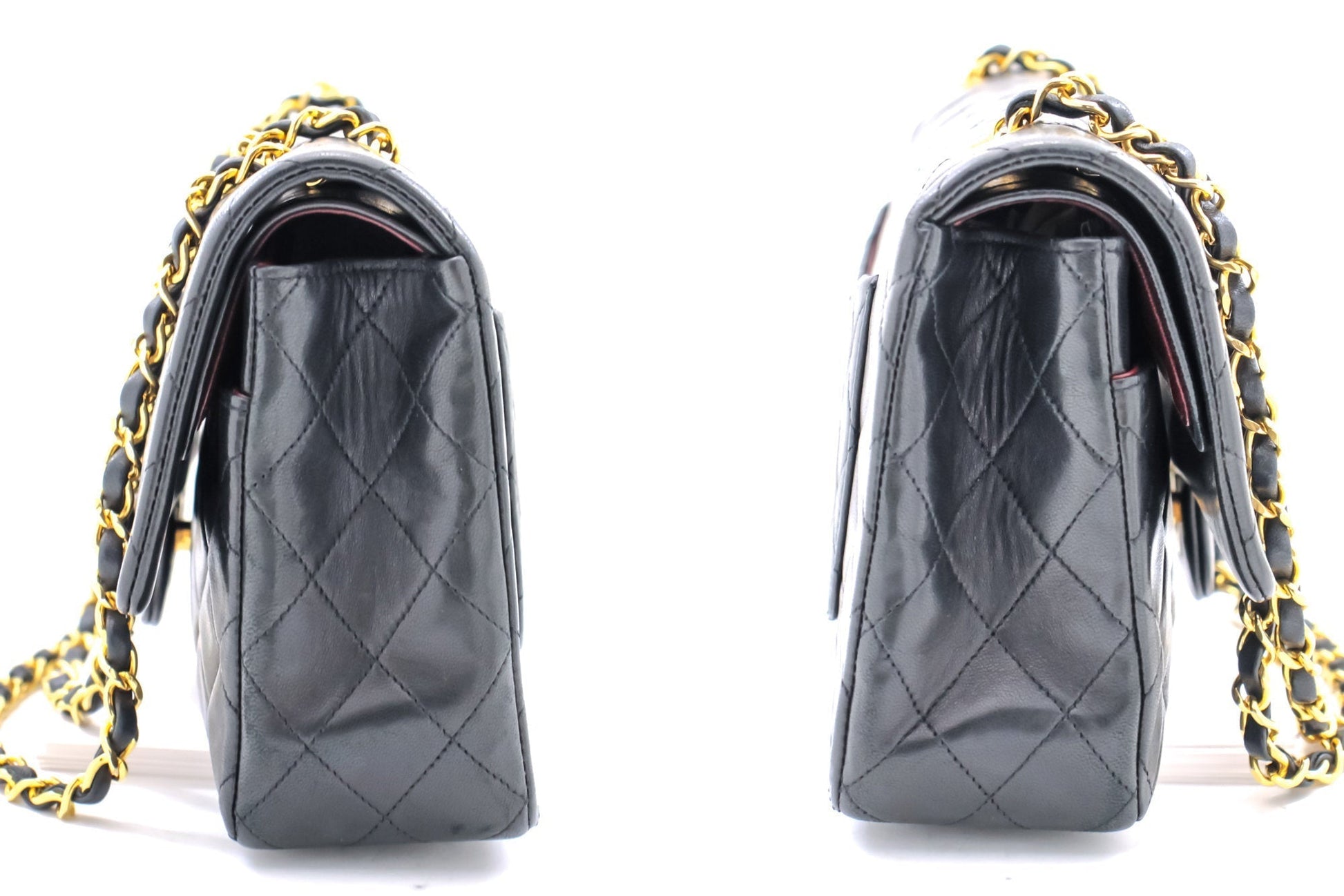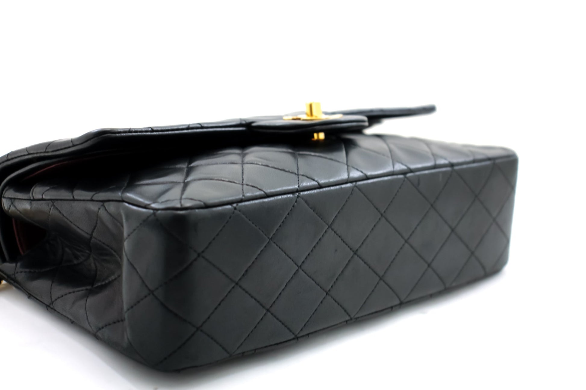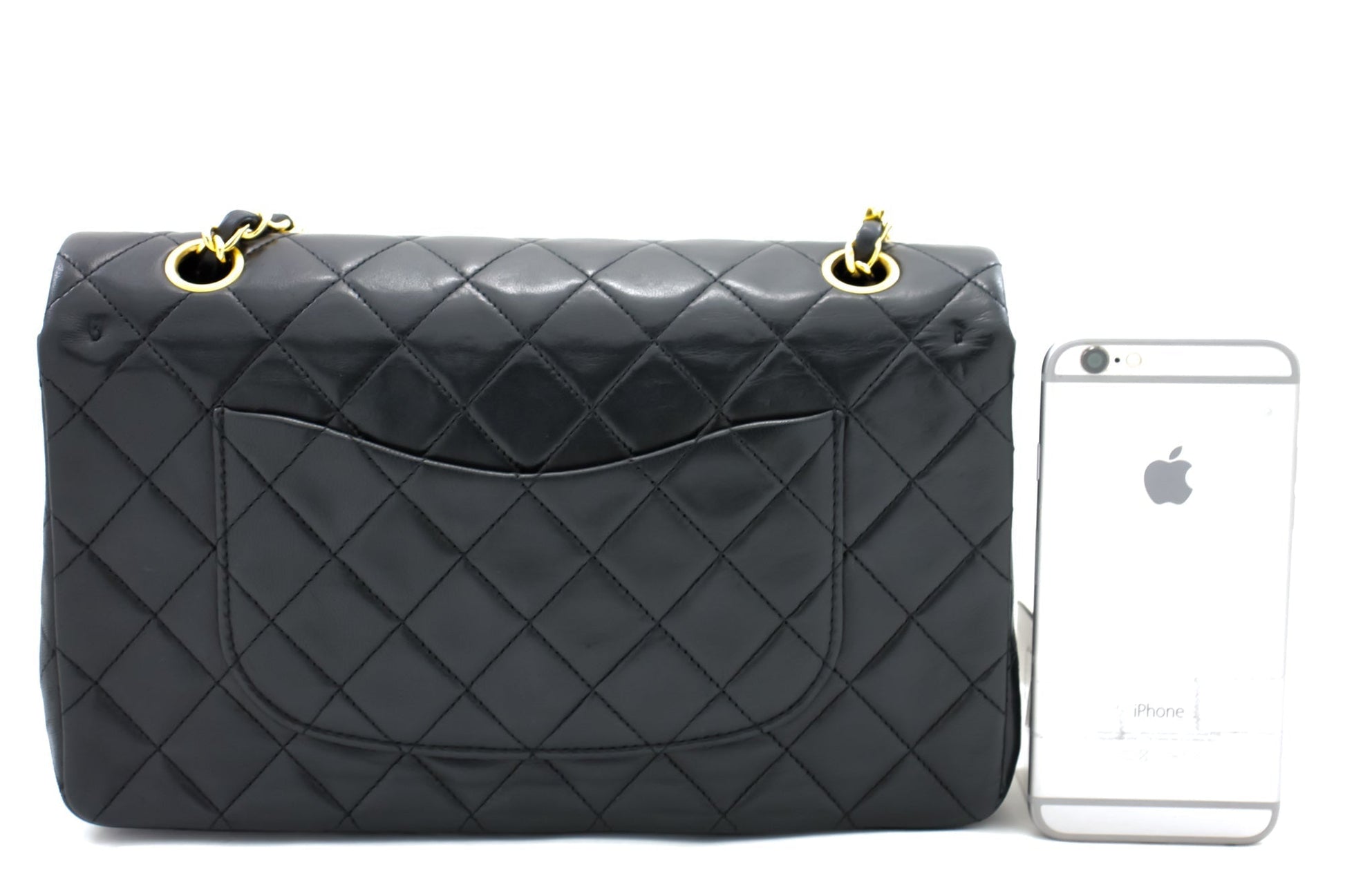 An authentic CHANEL Classic Double Flap 10" Chain Shoulder Bag Black made of black Lambskin i65 This item is Vintage / Classic. The year of manufacture would be 1989-1991.