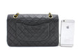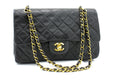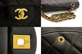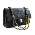 CHANEL Classic Double Flap 10" Chain Shoulder Bag Black Lambskin i68