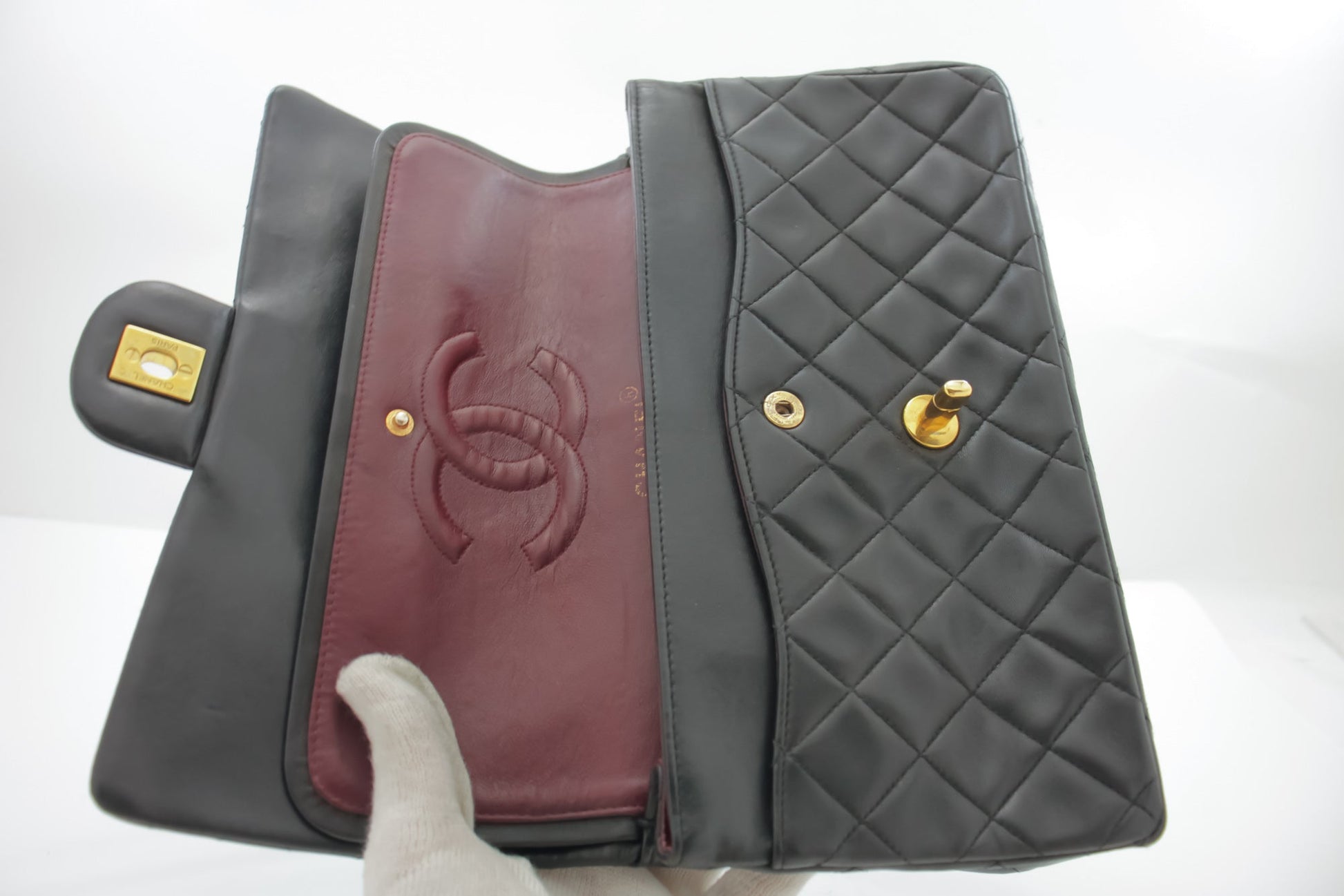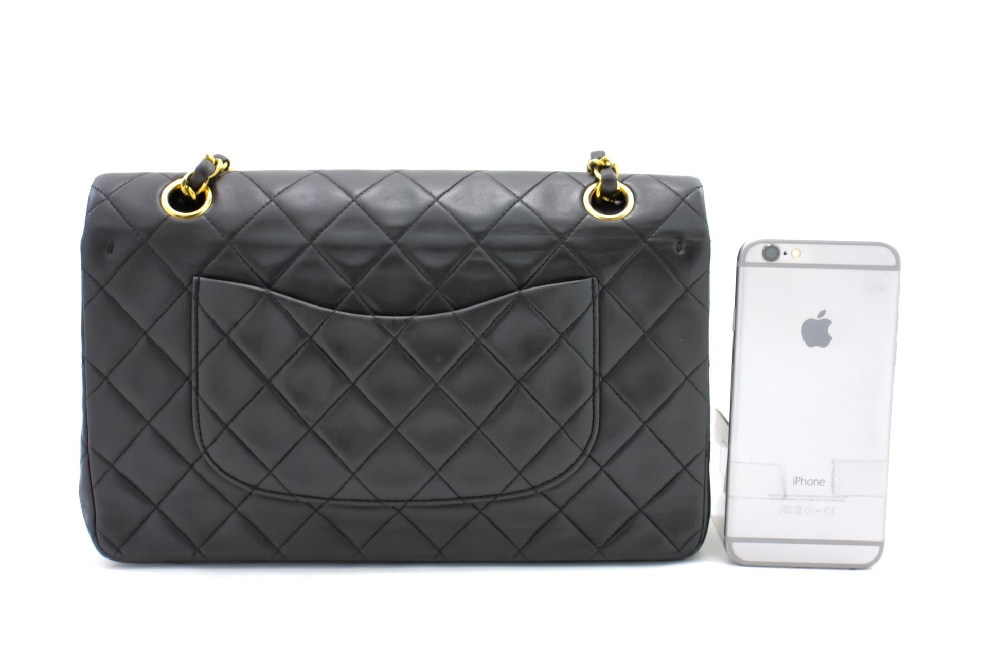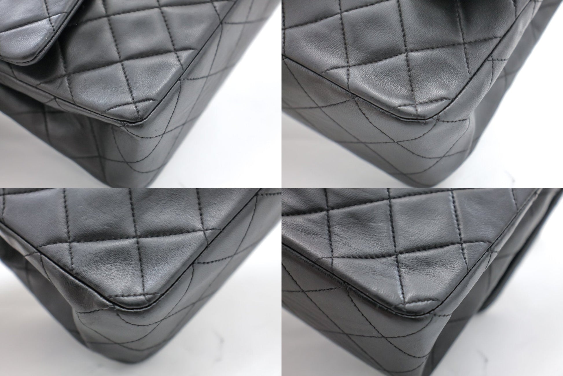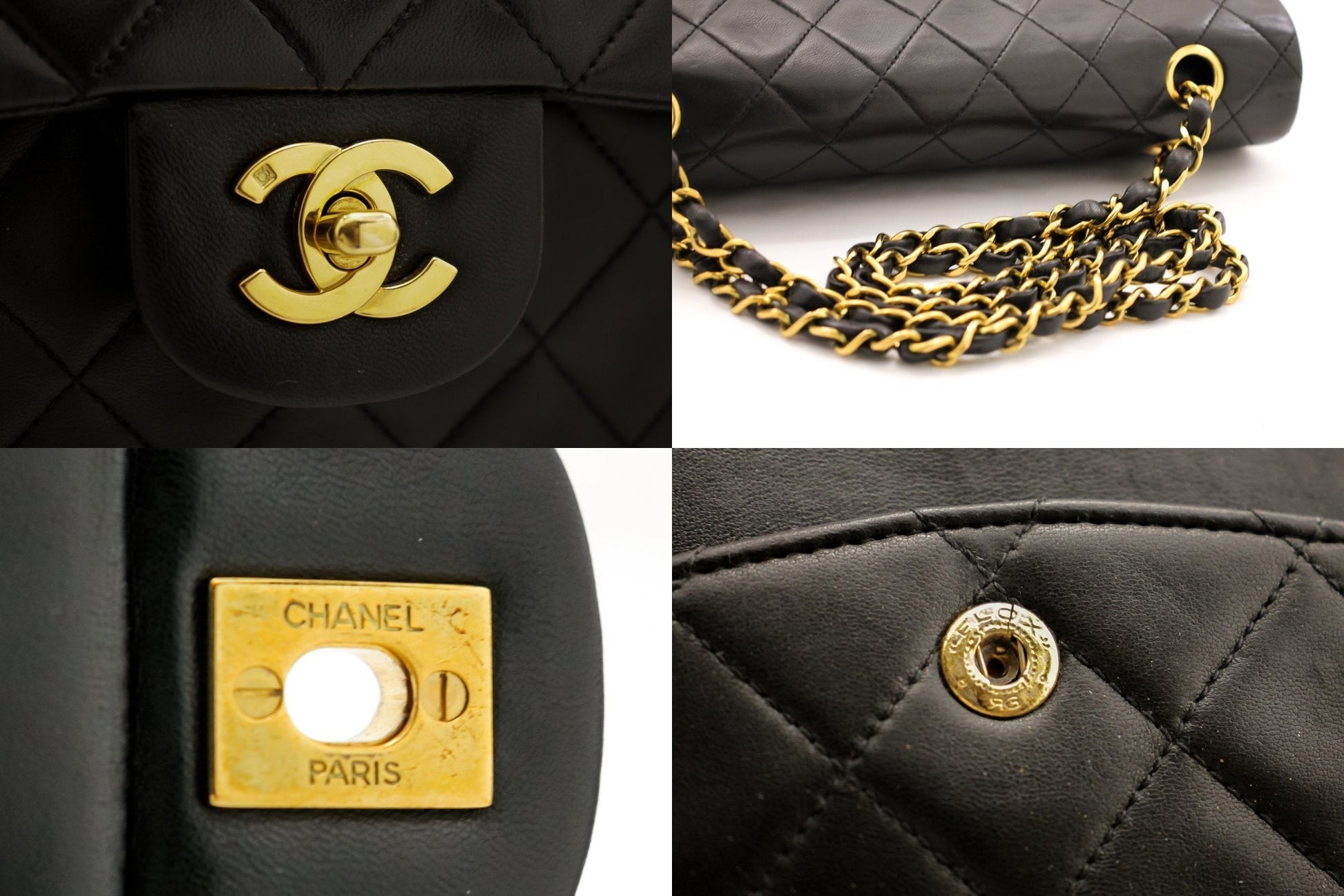 An authentic CHANEL Classic Double Flap 10" Chain Shoulder Bag Black made of black Lambskin i68 This item is Vintage / Classic. The year of manufacture would be 1991-1994.