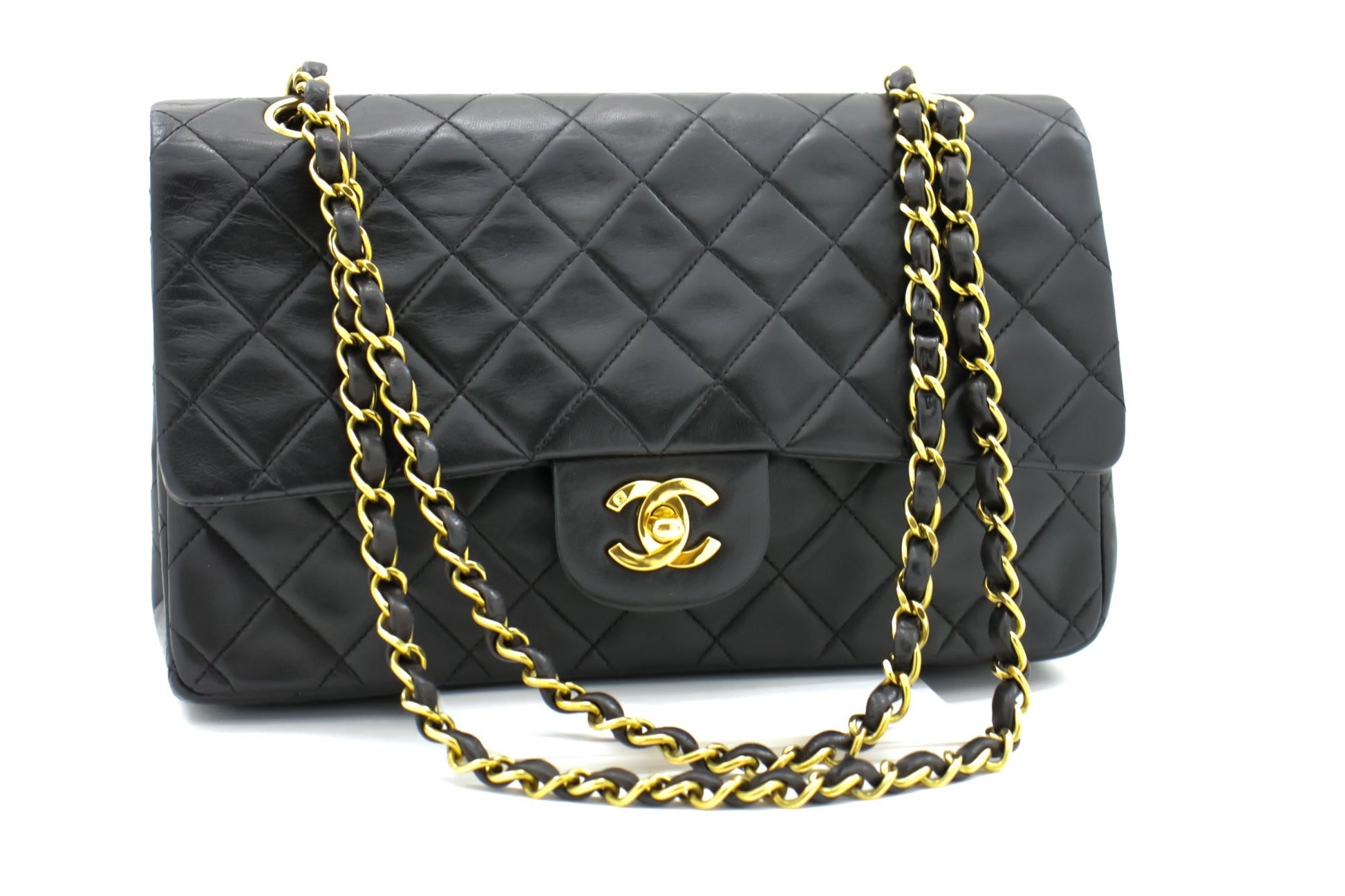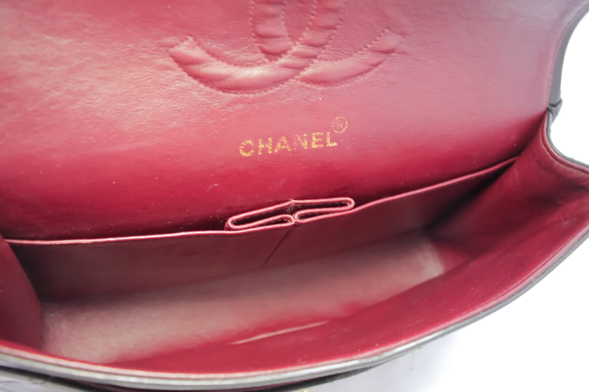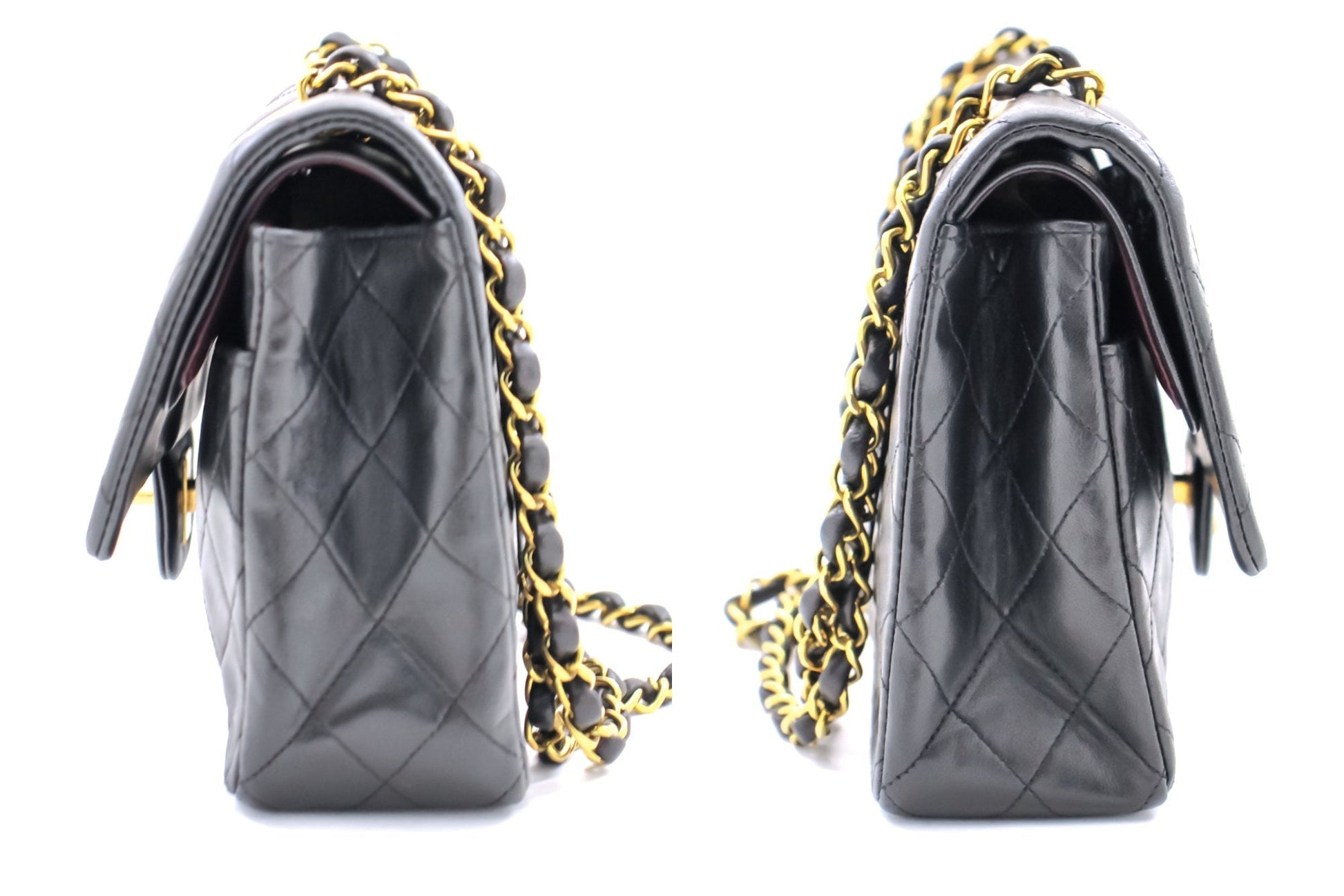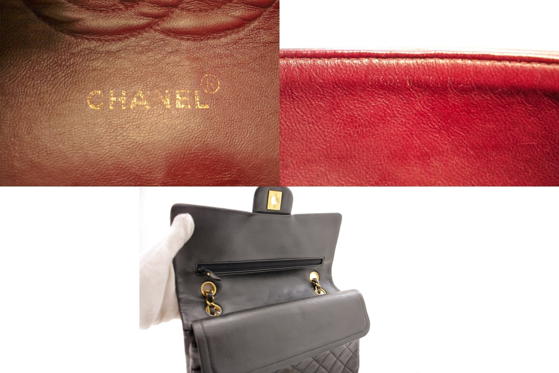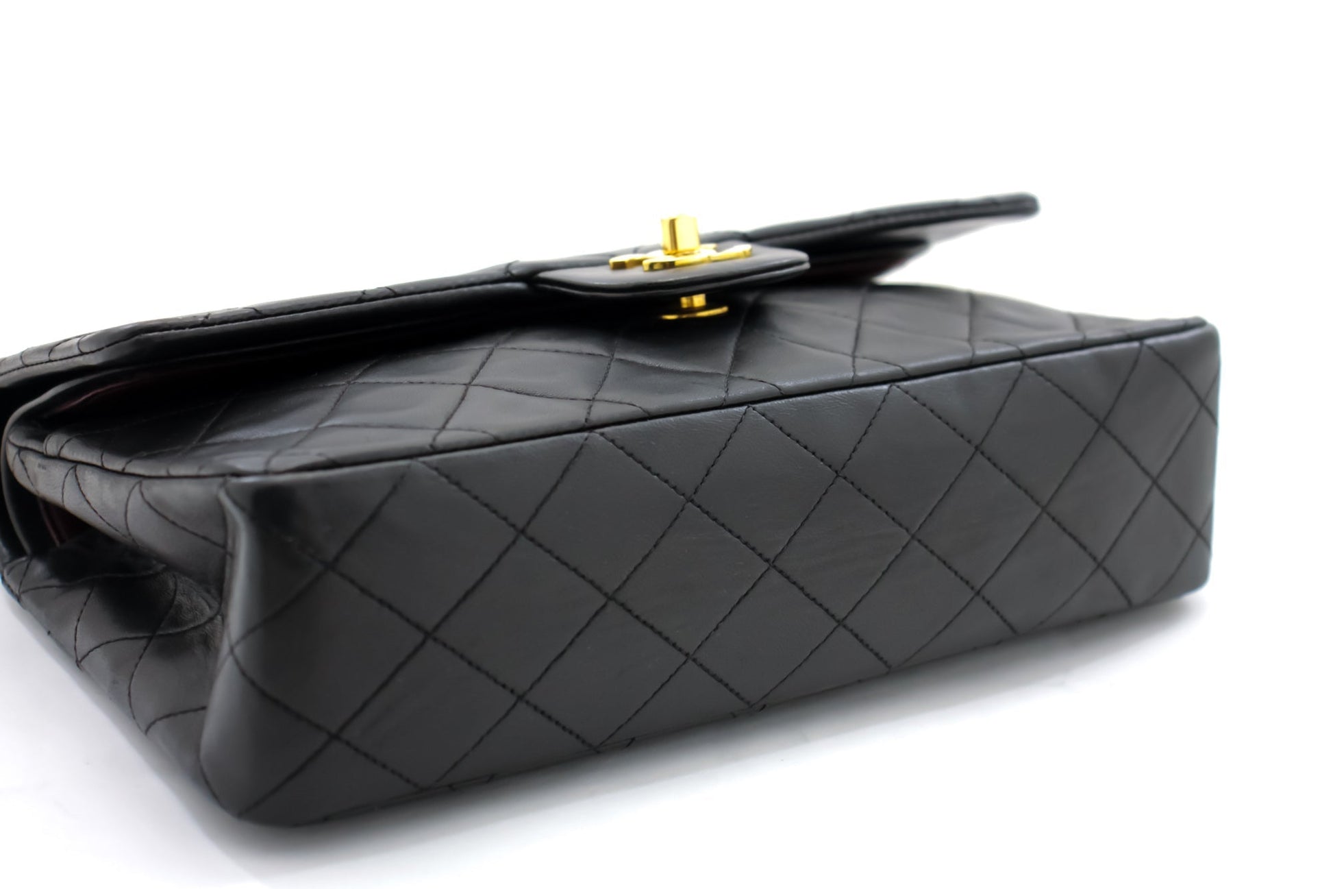 An authentic CHANEL Classic Double Flap 10" Chain Shoulder Bag Black made of black Lambskin i68 This item is Vintage / Classic. The year of manufacture would be 1991-1994.