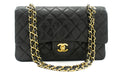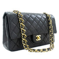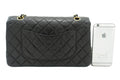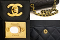 CHANEL Classic Double Flap 10" Chain Shoulder Bag Black Lambskin j92