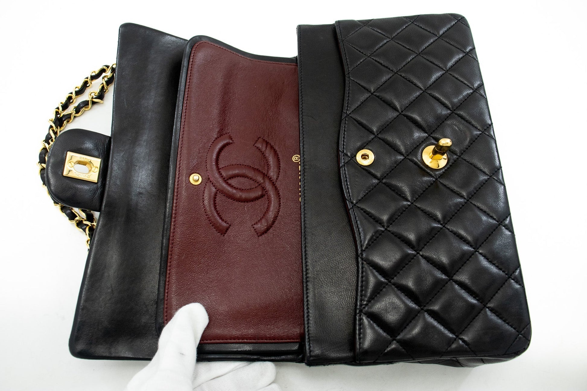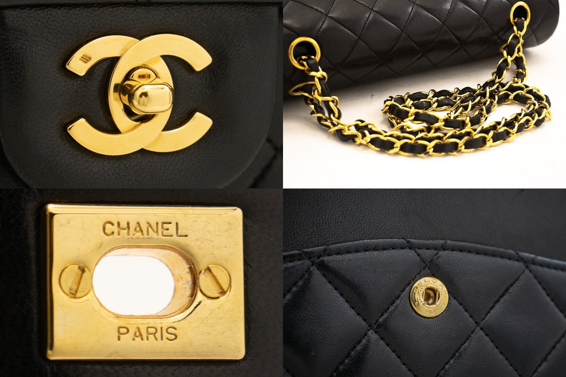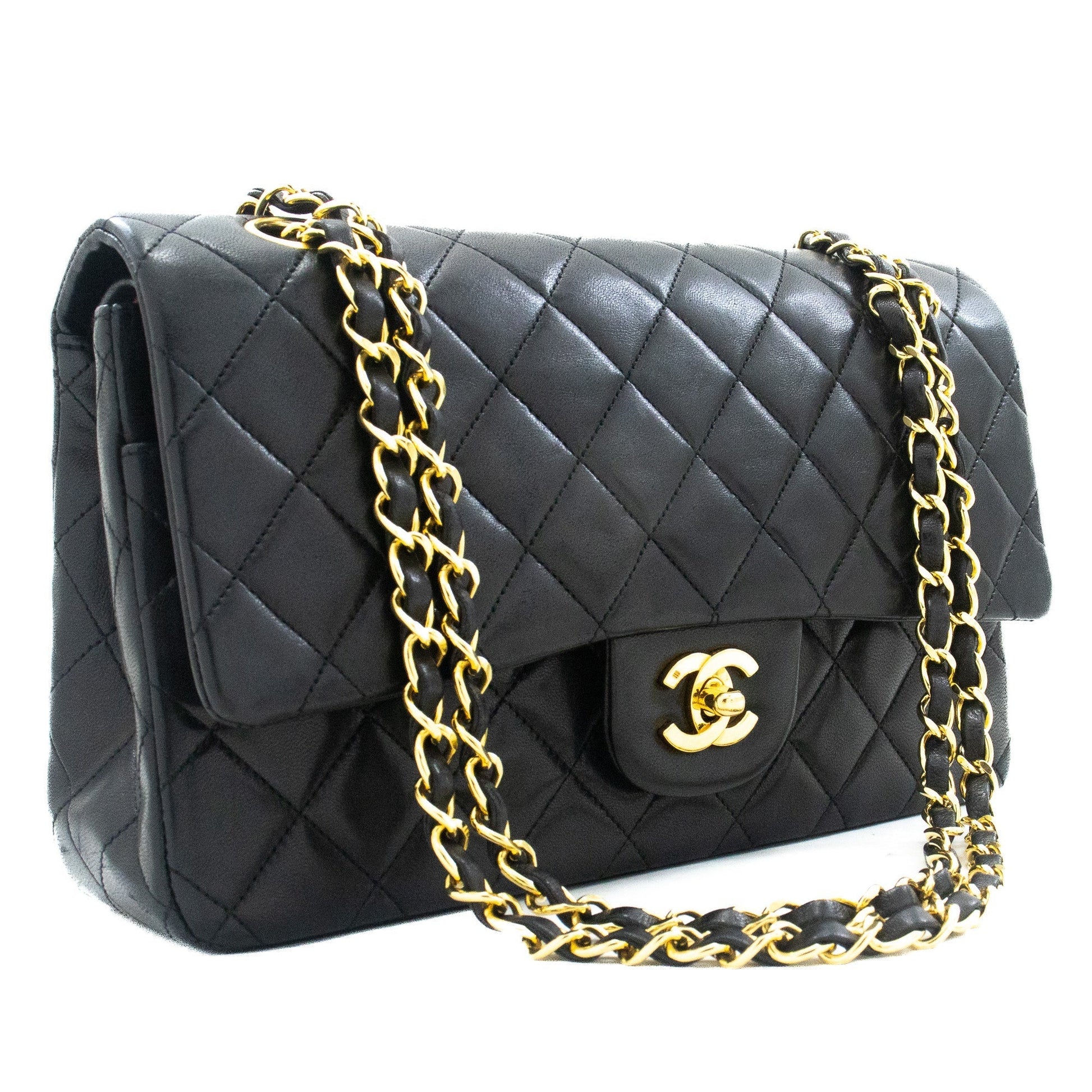 An authentic CHANEL Classic Double Flap 10" Chain Shoulder Bag Black made of black Lambskin j92 This item is Vintage / Classic. The year of manufacture would be 1989-1991.
