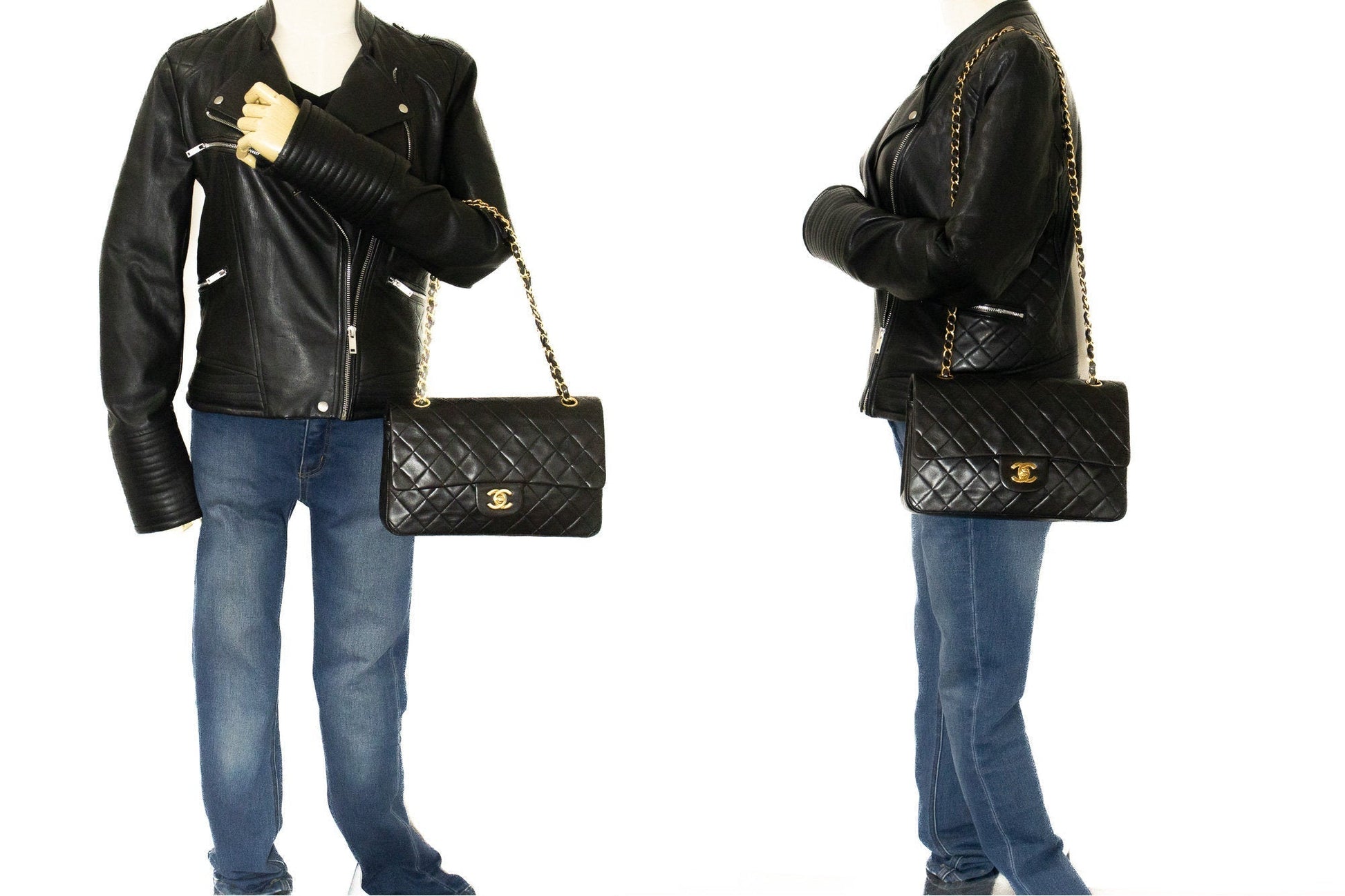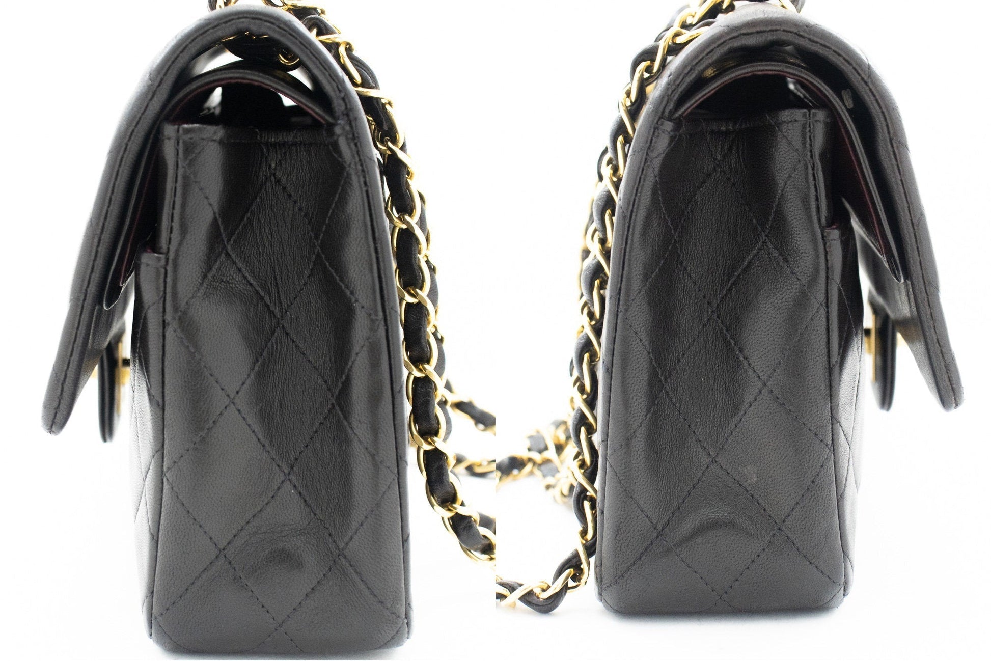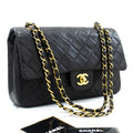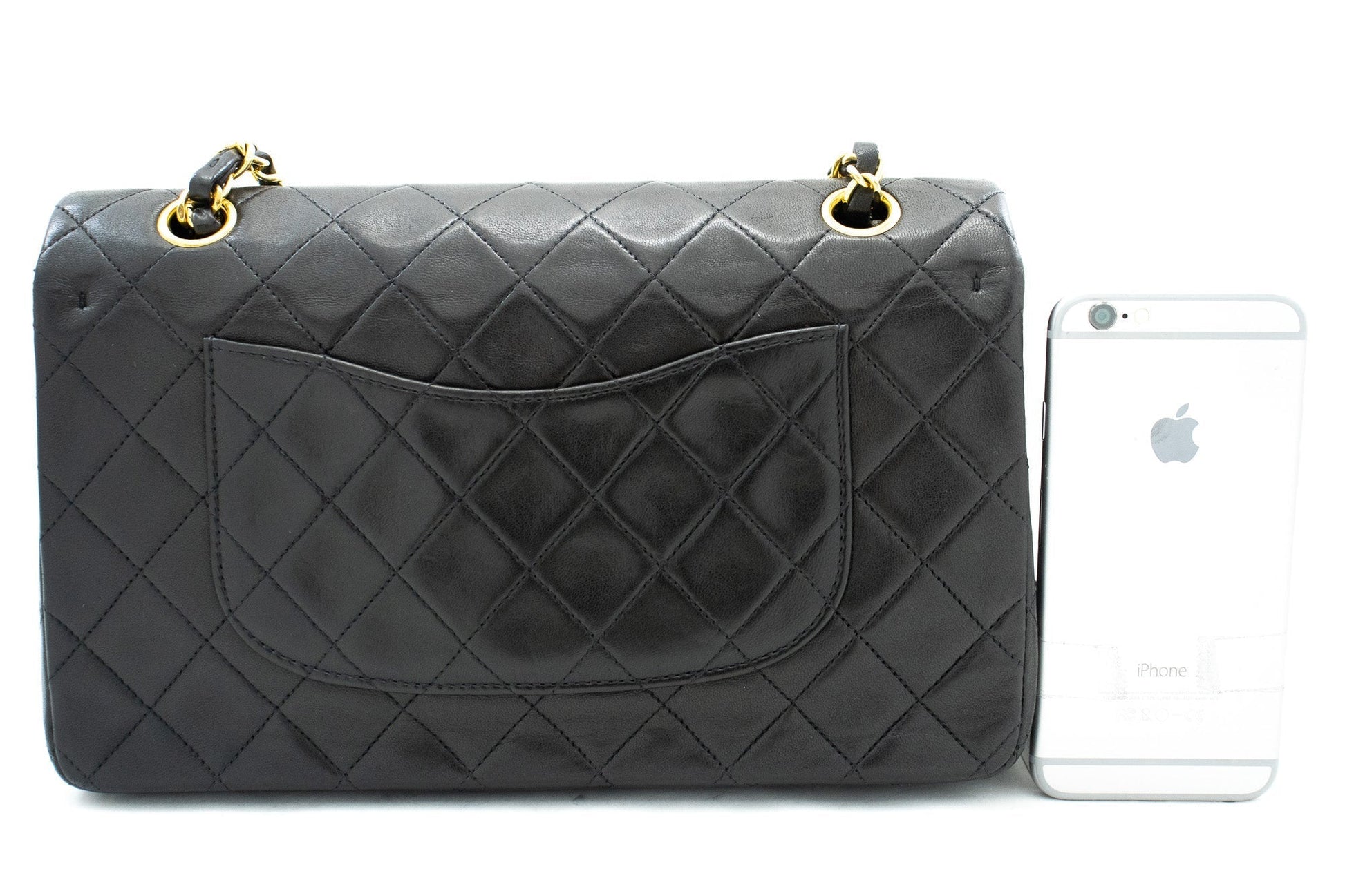 CHANEL Classic Double Flap 10" Chain Shoulder Bag Black Lambskin k04
