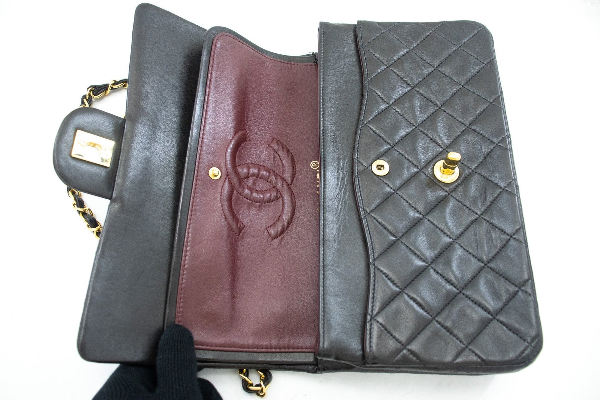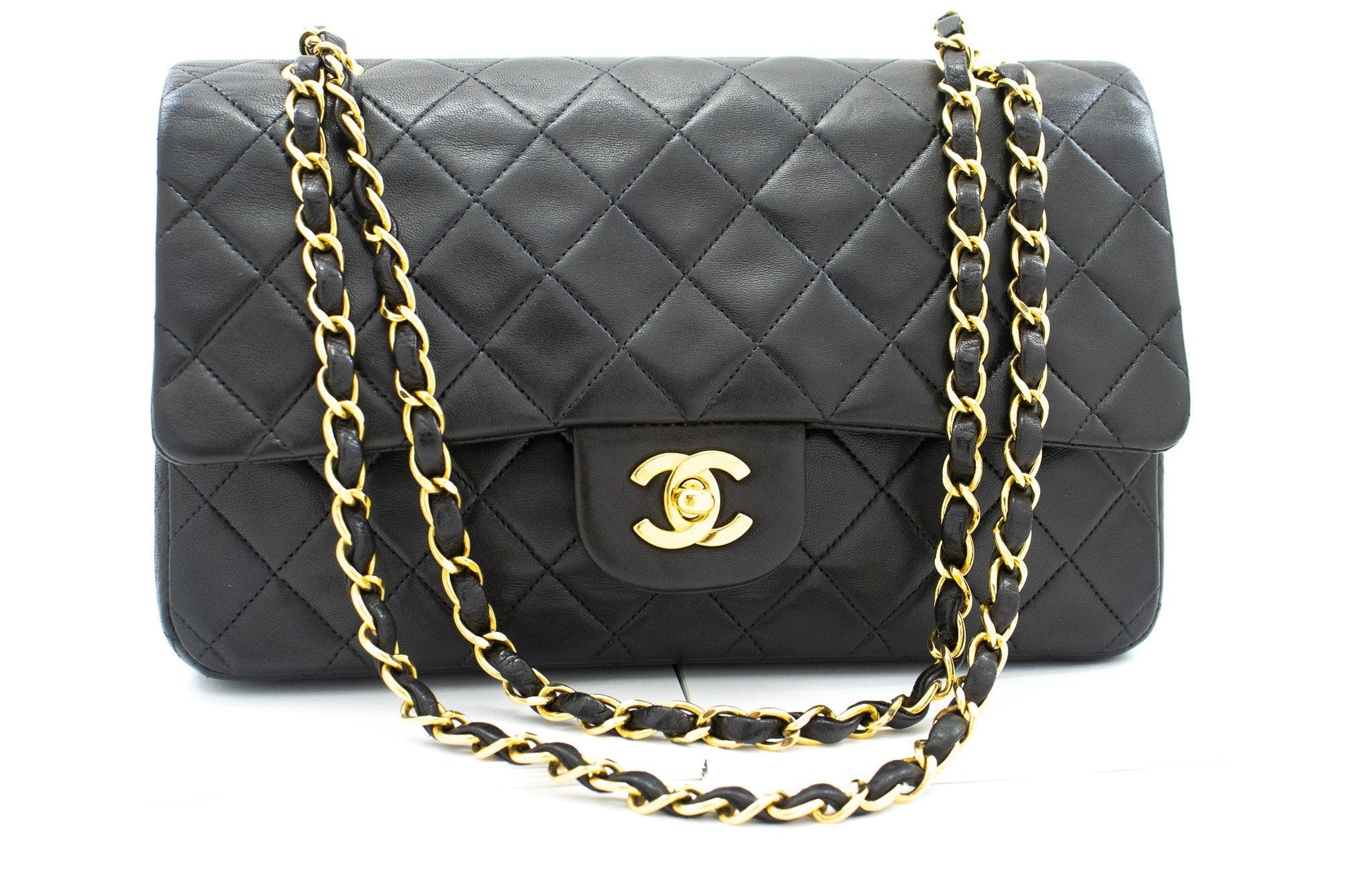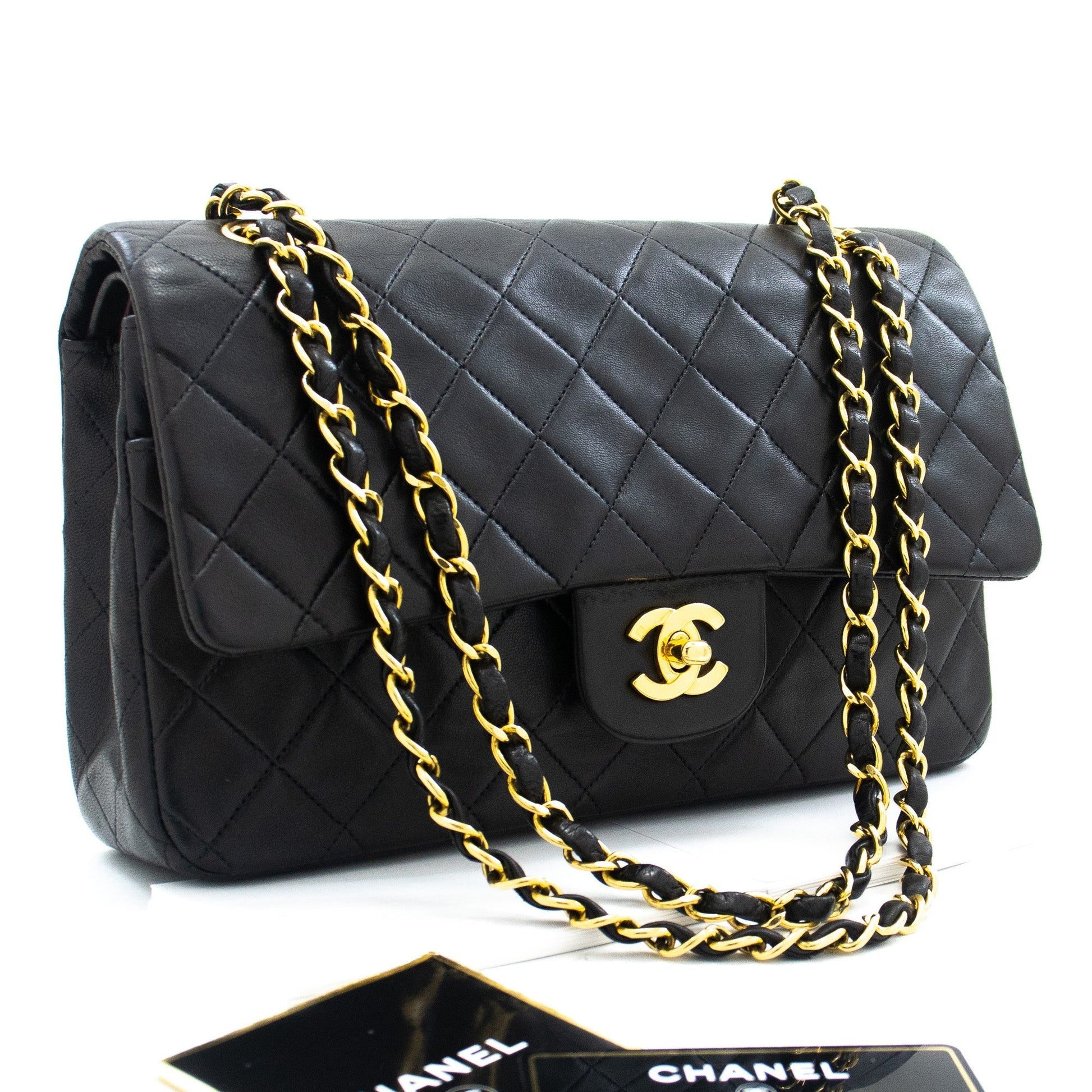 An authentic CHANEL Classic Double Flap 10" Chain Shoulder Bag Black made of black Lambskin k04 This item is Vintage / Classic. The year of manufacture would be 1996-1997.