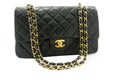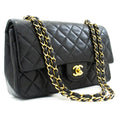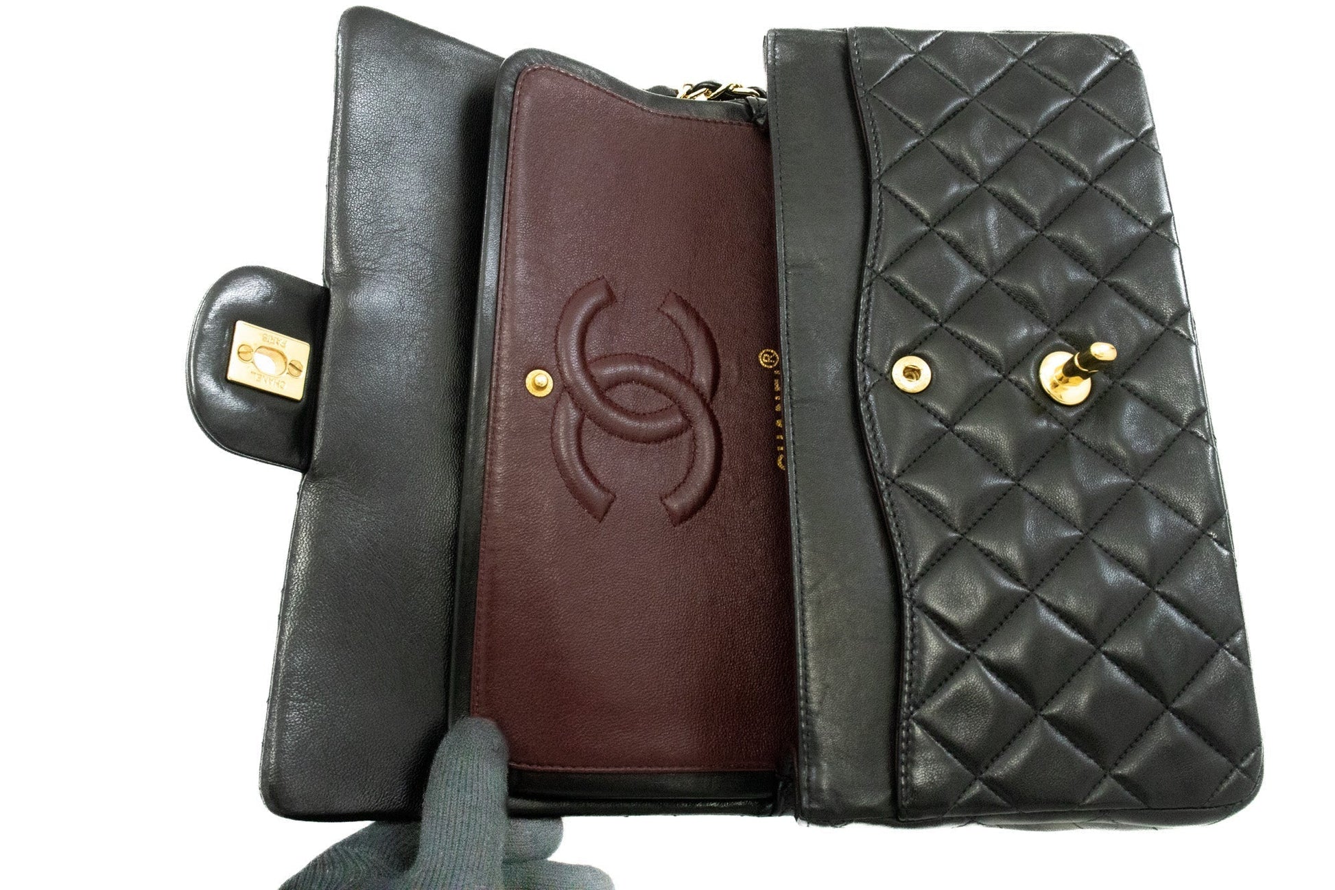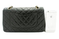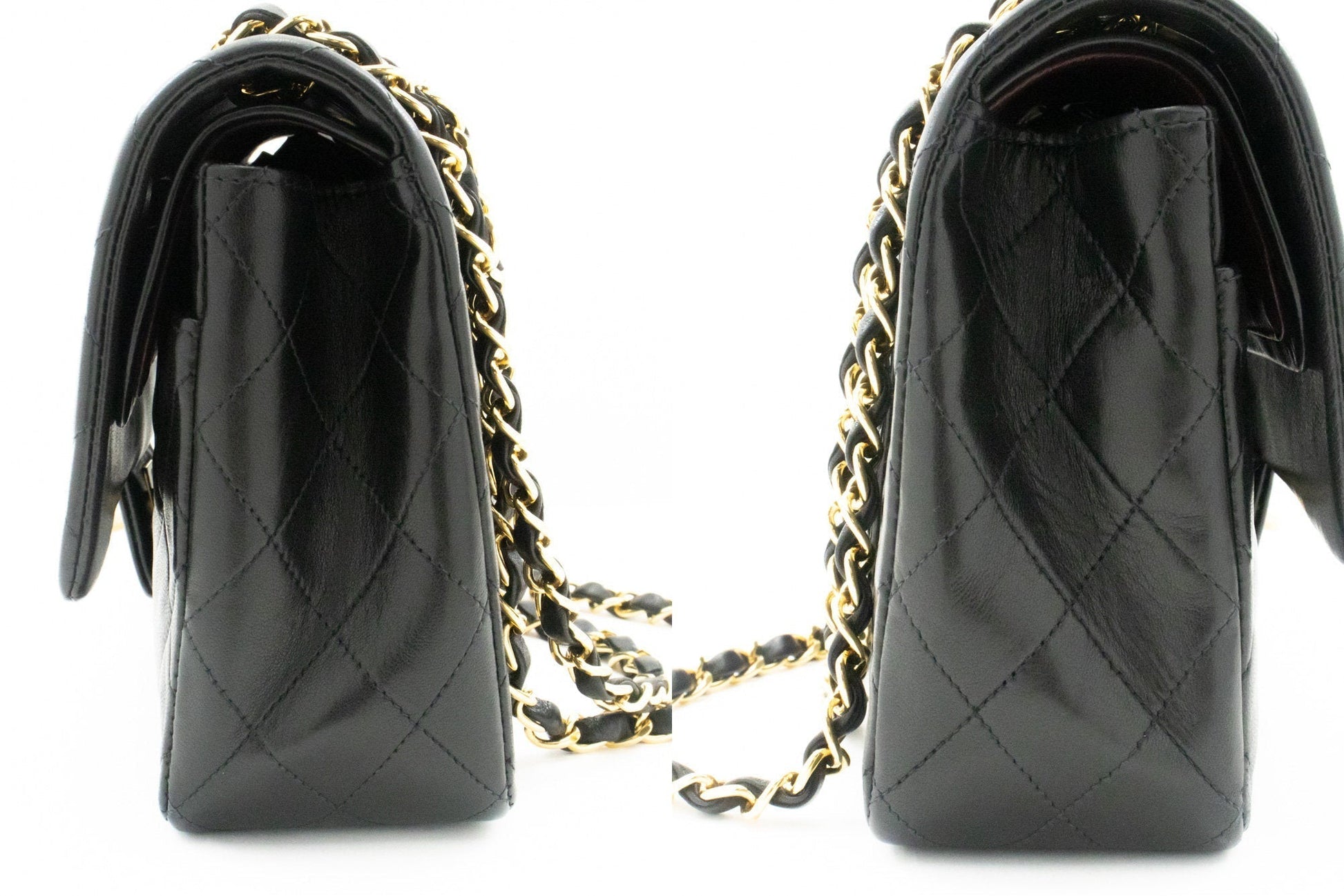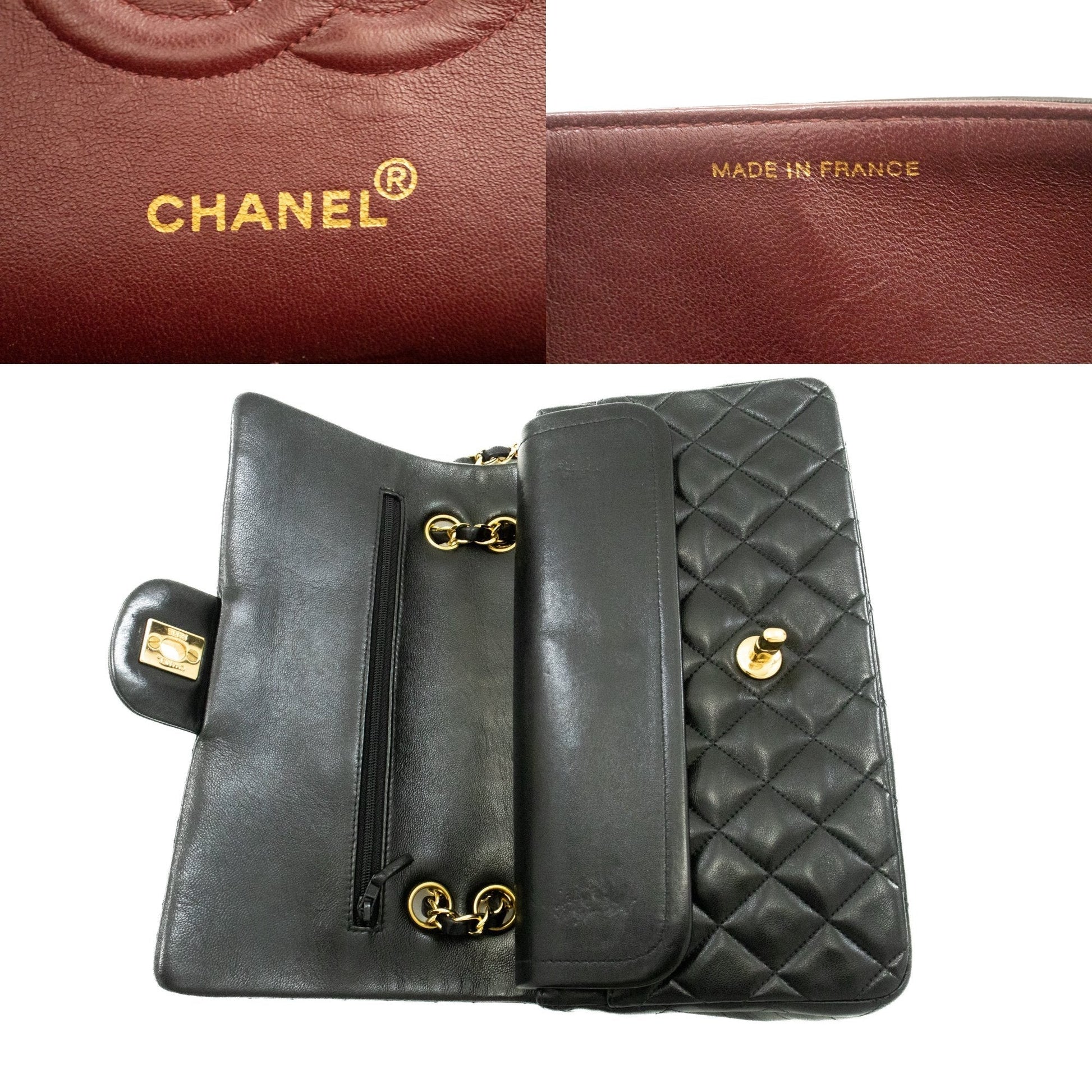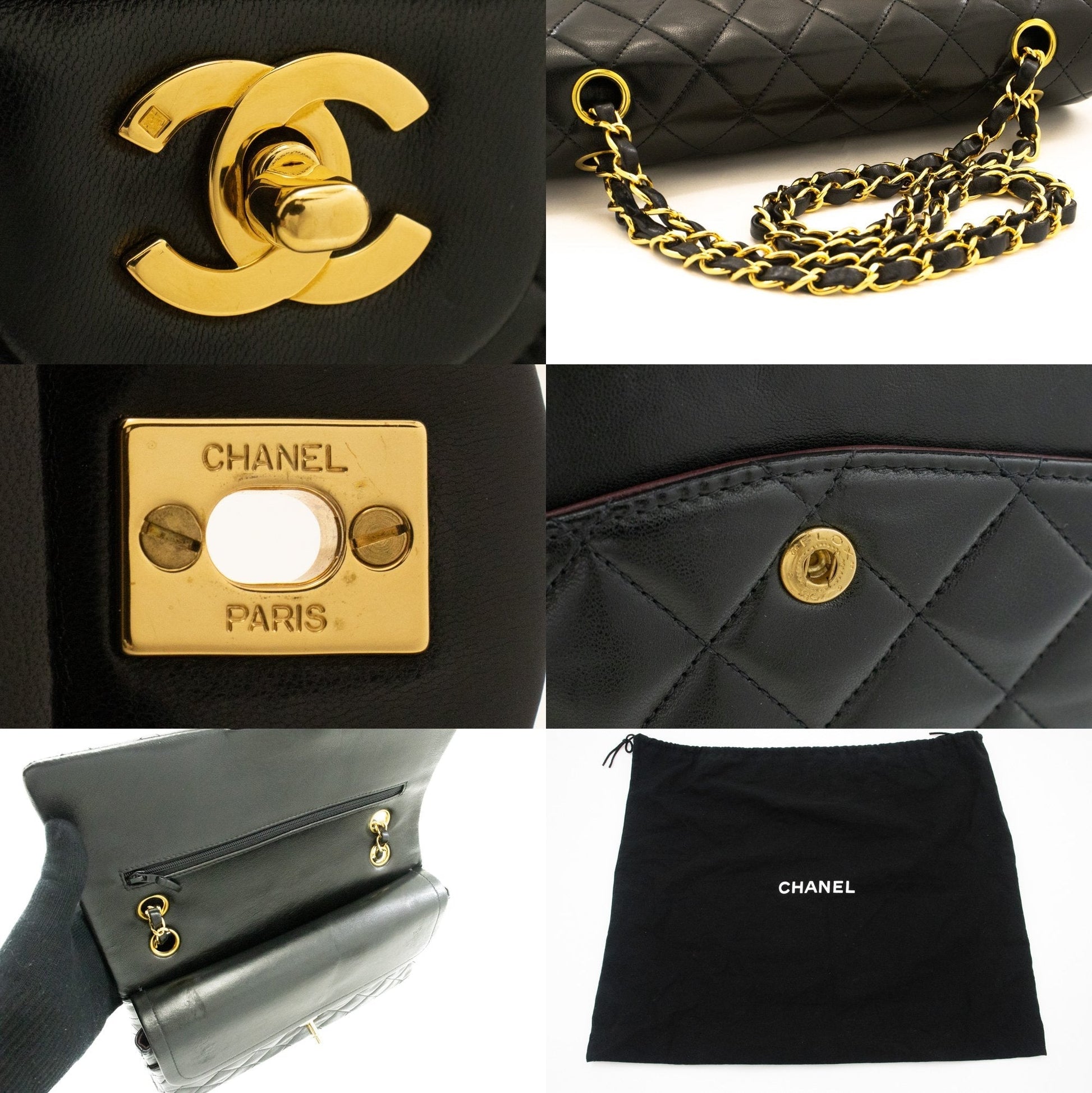 CHANEL Classic Double Flap 10" Chain Shoulder Bag Black Lambskin k39