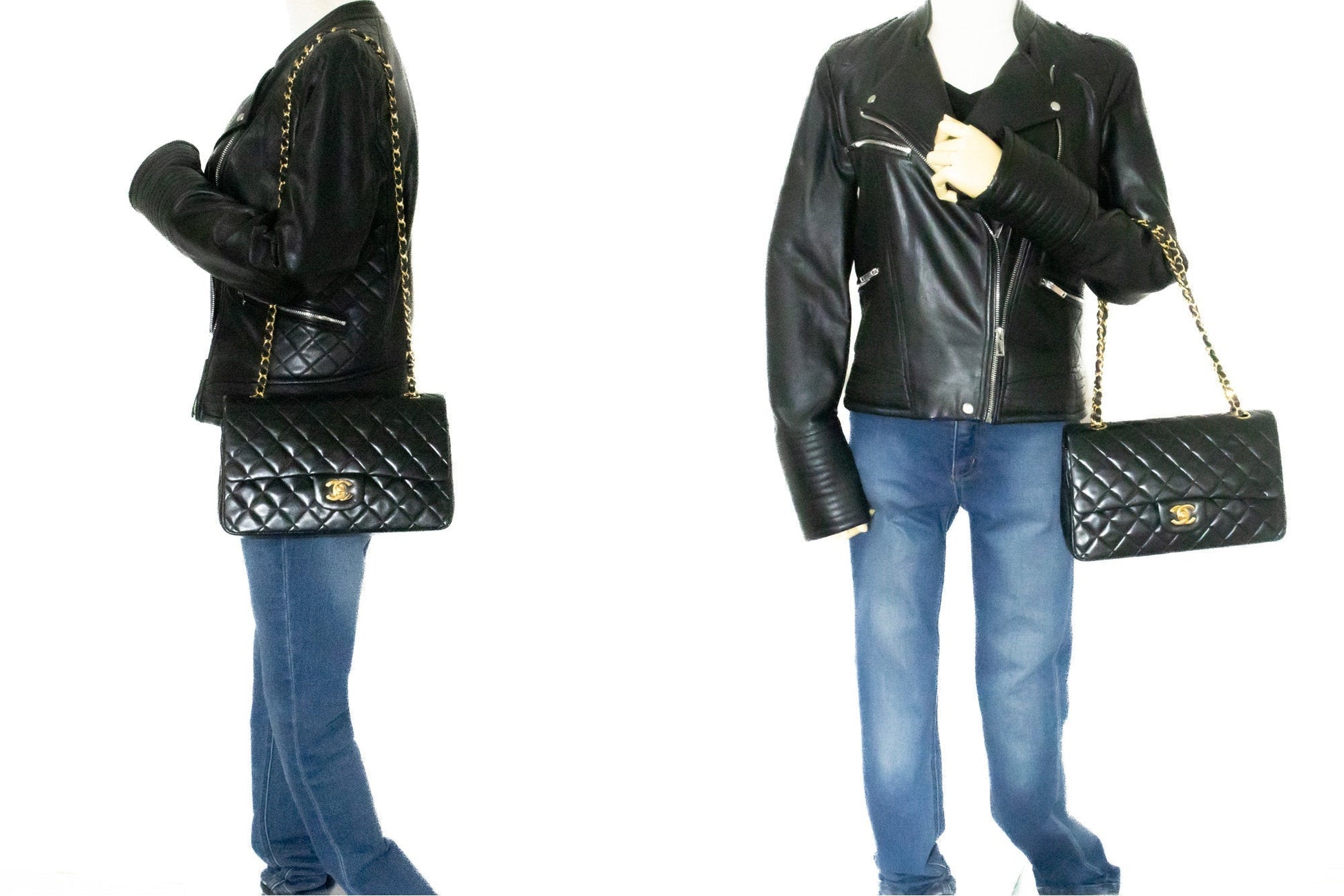 An authentic CHANEL Classic Double Flap 10" Chain Shoulder Bag Black made of black Lambskin k39 This item is Vintage / Classic. The year of manufacture would be 1996-1997.