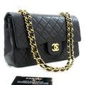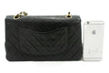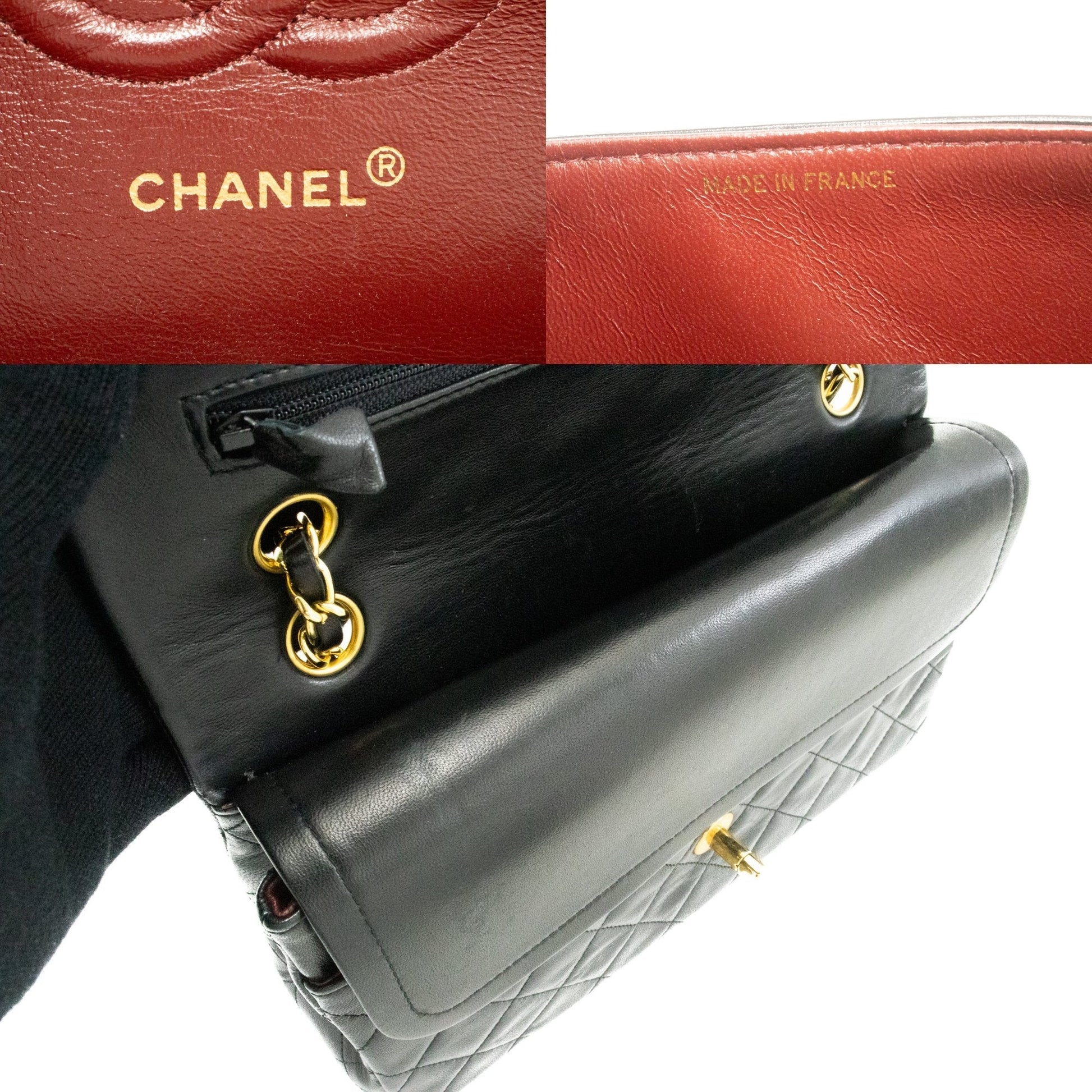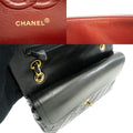 CHANEL Classic Double Flap 10" Chain Shoulder Bag Black Lambskin k60