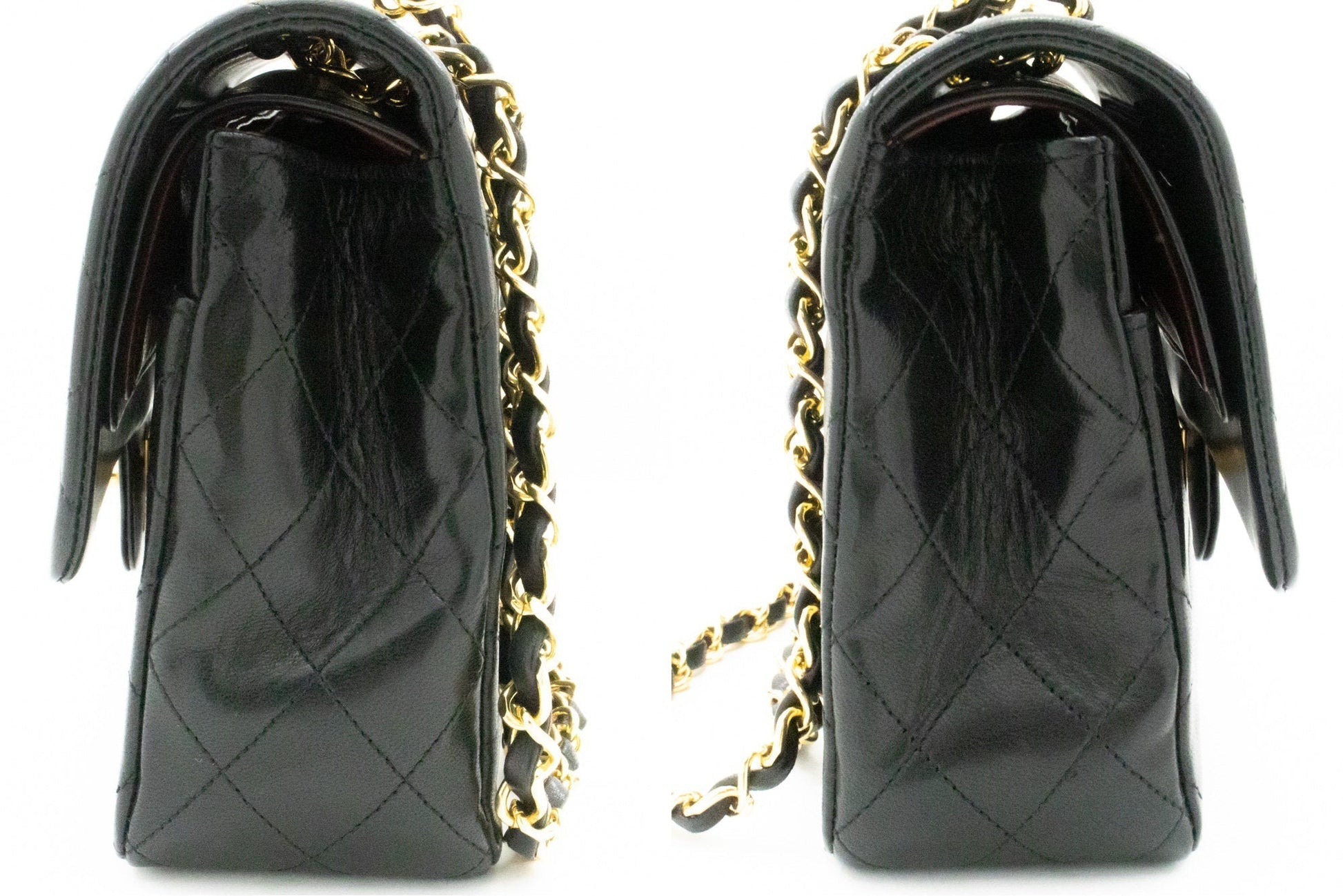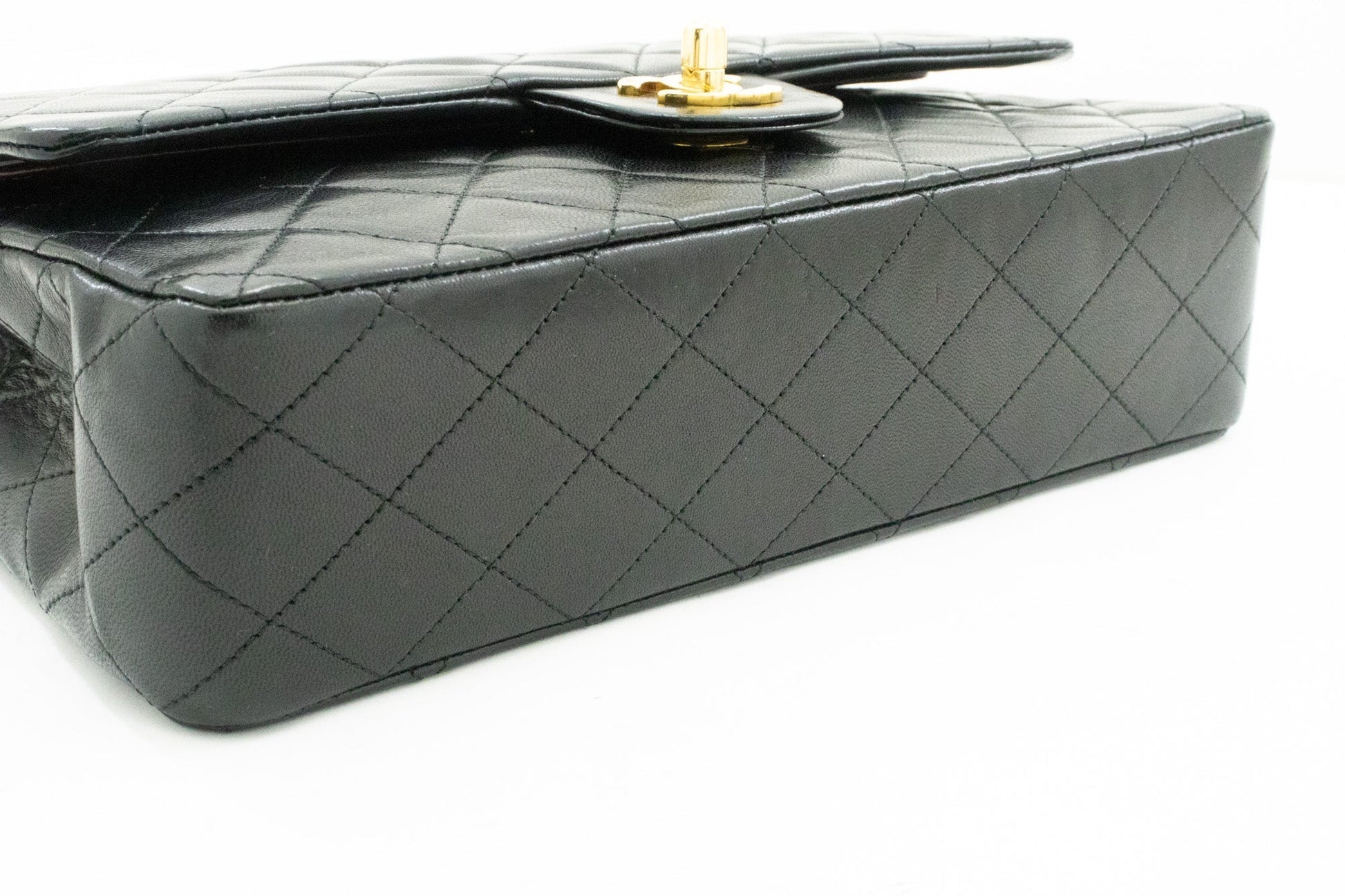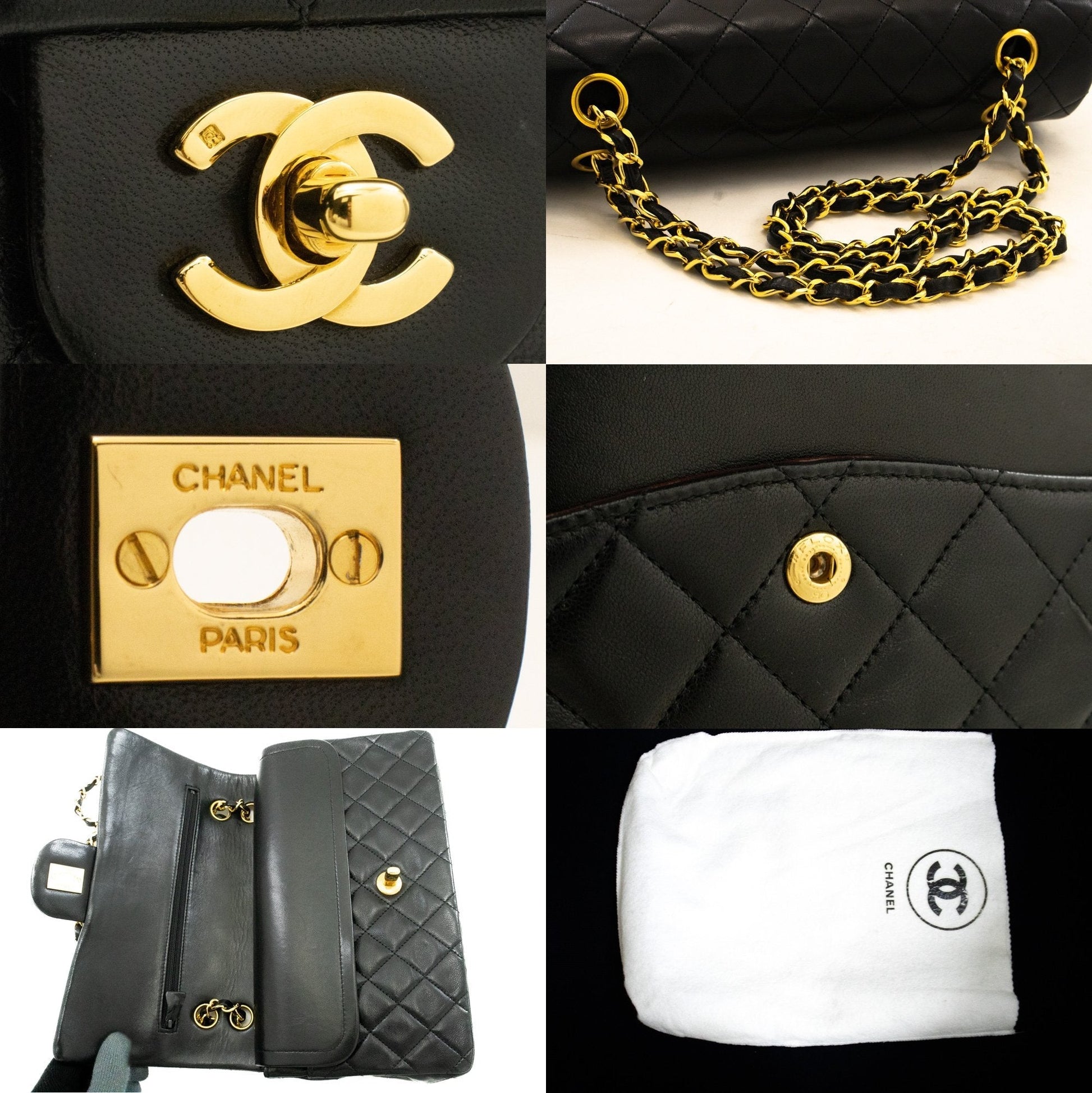 An authentic CHANEL Classic Double Flap 10" Chain Shoulder Bag Black made of black Lambskin k60 This item is Vintage / Classic. The year of manufacture would be 1989-1991.