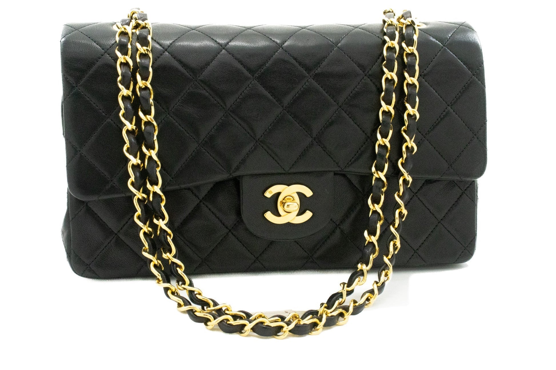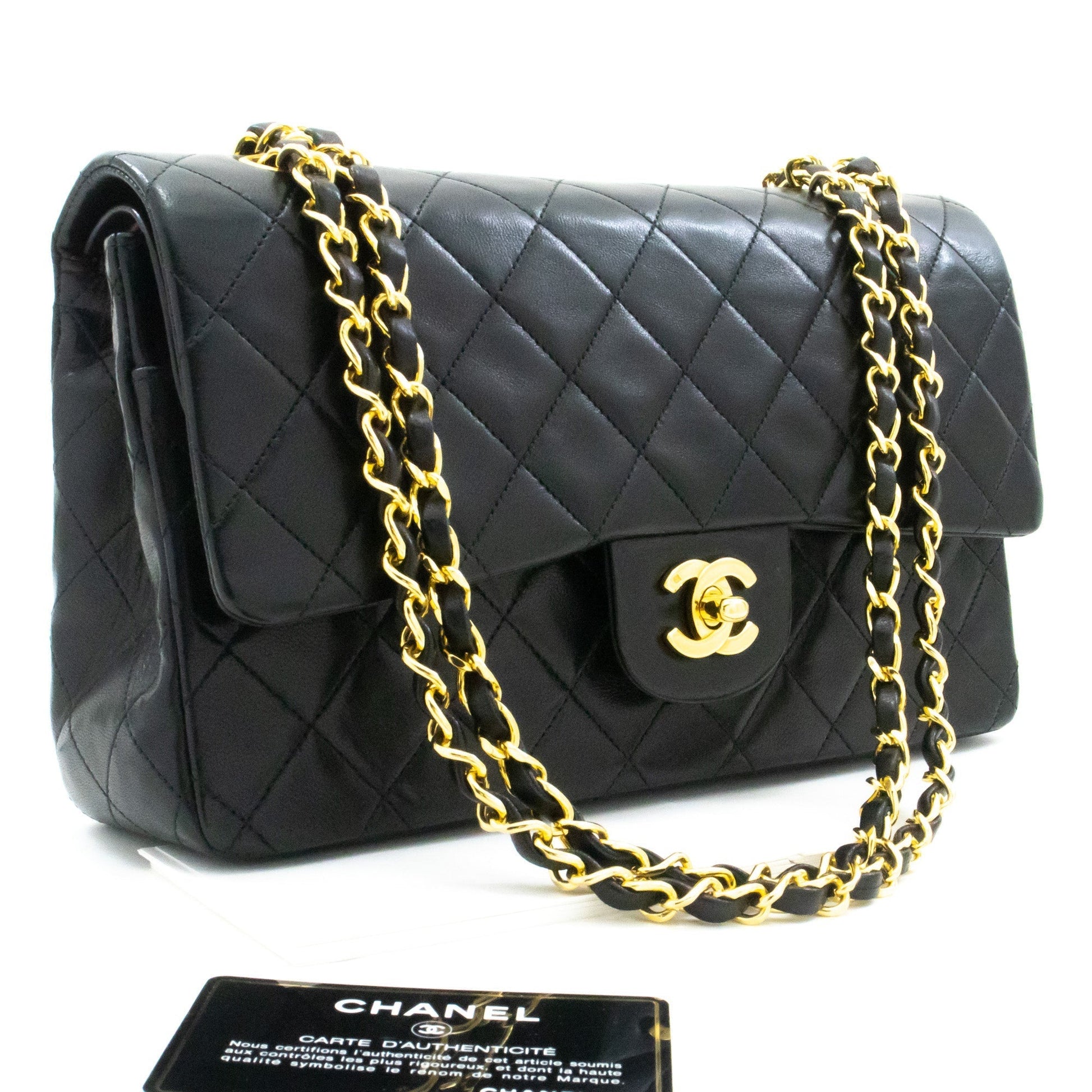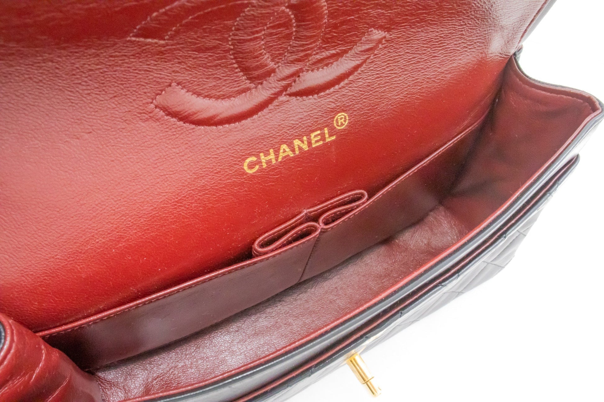 An authentic CHANEL Classic Double Flap 10" Chain Shoulder Bag Black made of black Lambskin k60 This item is Vintage / Classic. The year of manufacture would be 1989-1991.
