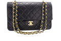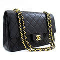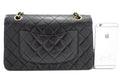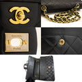 CHANEL Classic Double Flap 10" Chain Shoulder Bag Black Lambskin k69