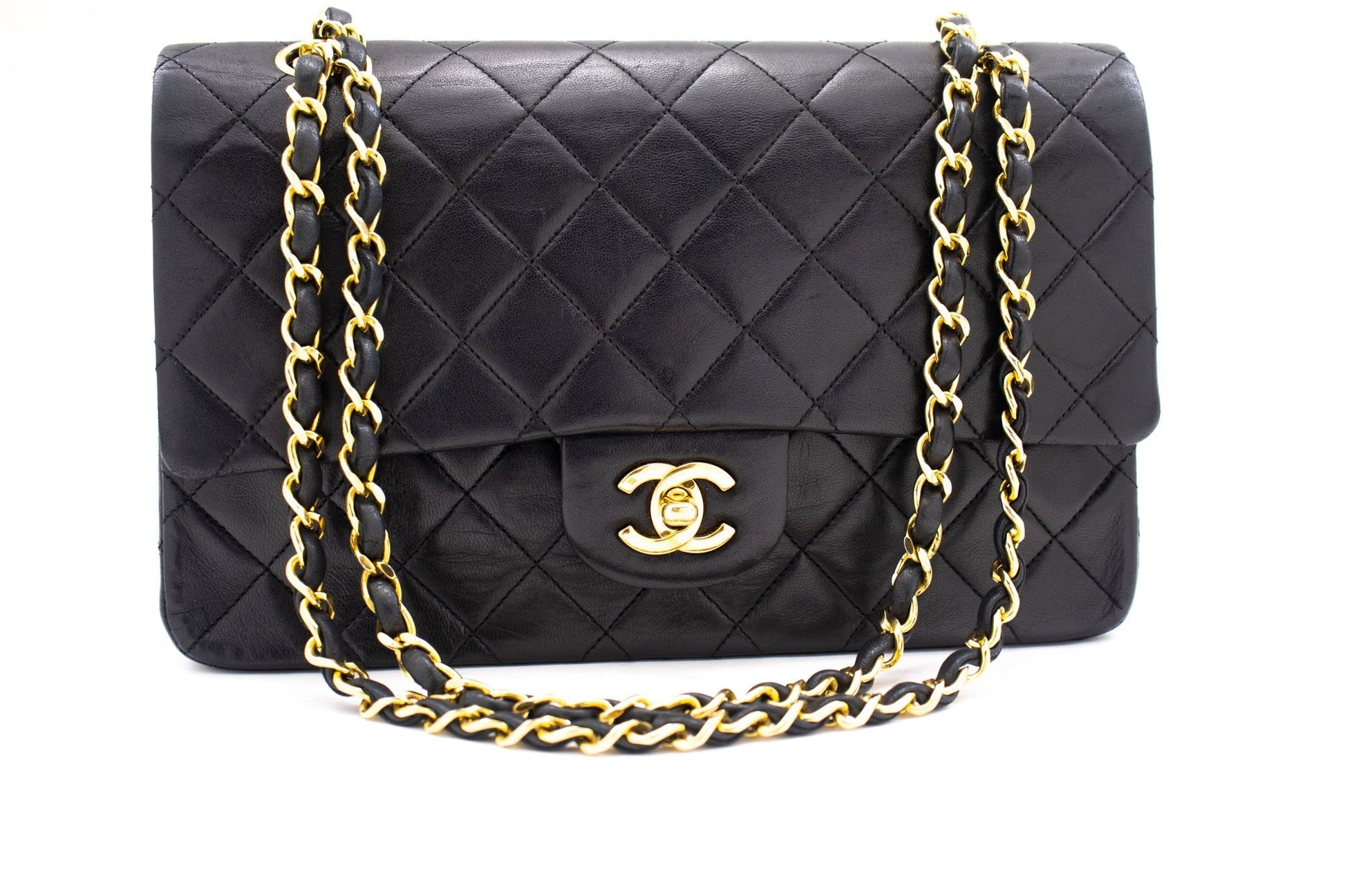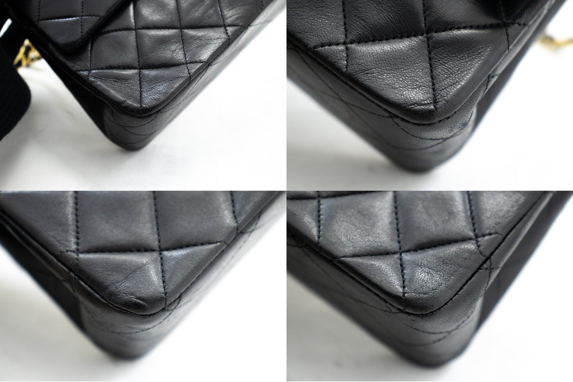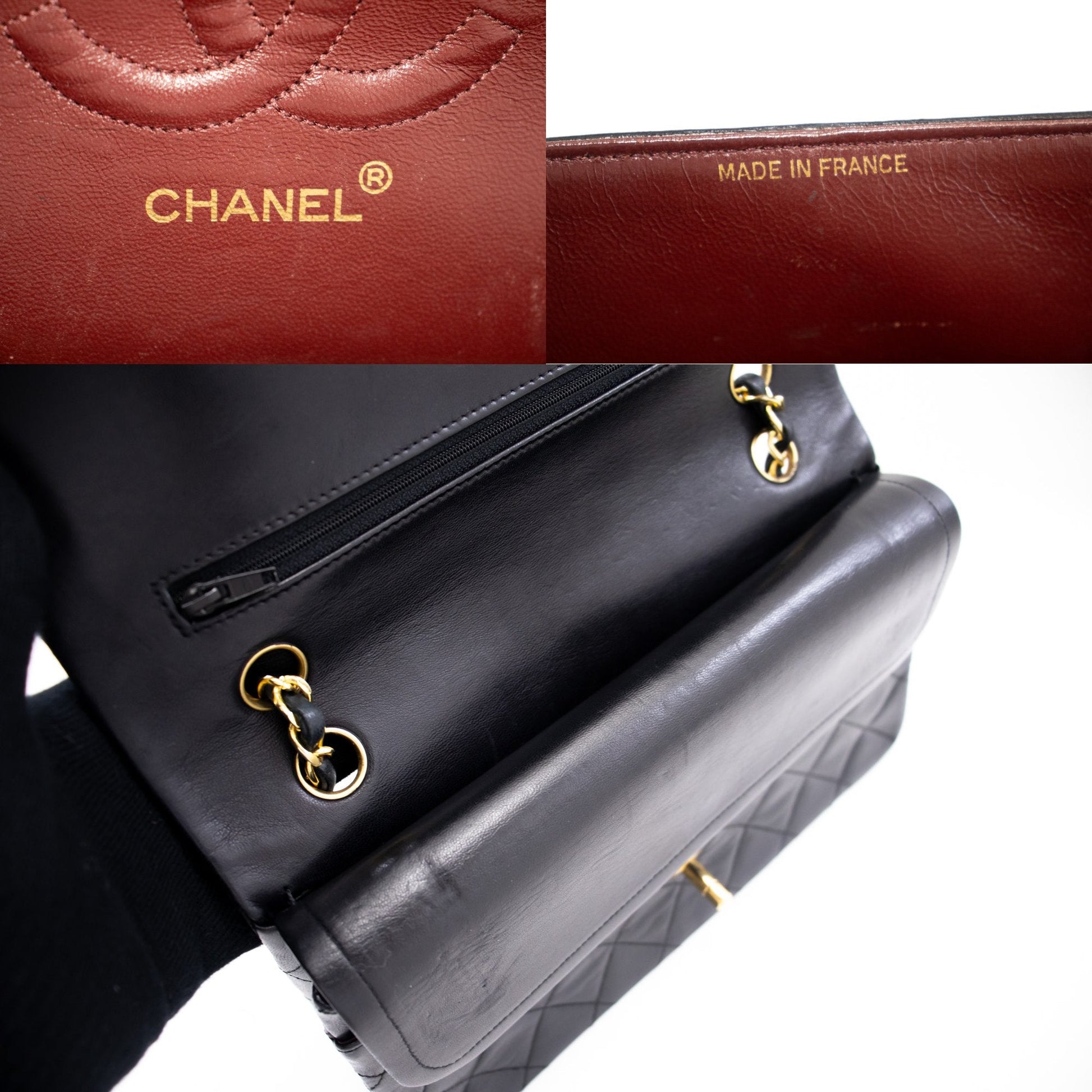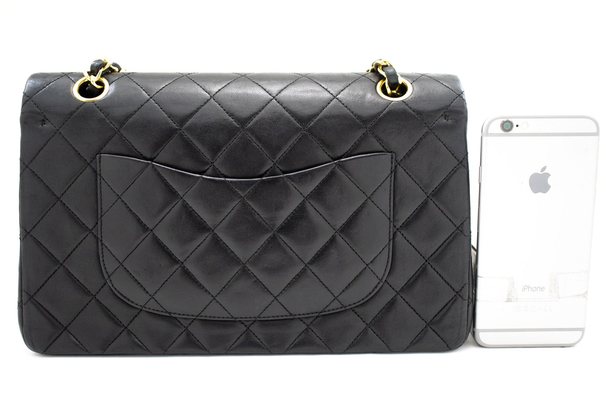 An authentic CHANEL Classic Double Flap 10" Chain Shoulder Bag Black made of black Lambskin k69 This item is Vintage / Classic. The year of manufacture would be 1986-1988.