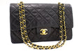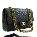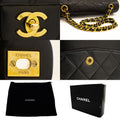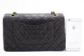 CHANEL Classic Double Flap 10" Chain Shoulder Bag Black Lambskin k71