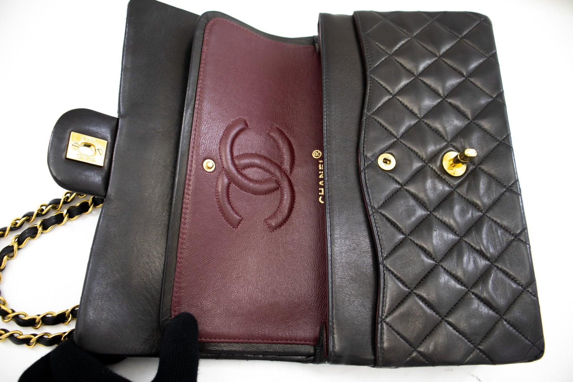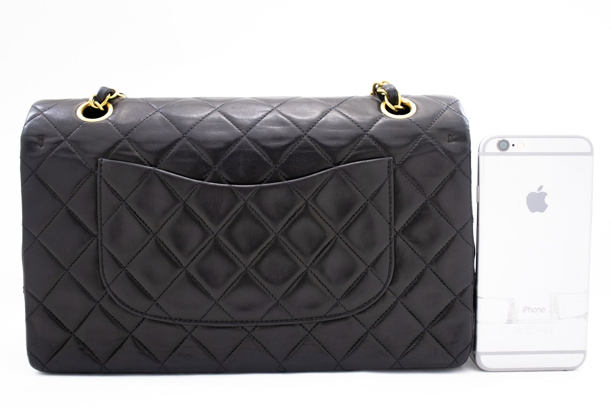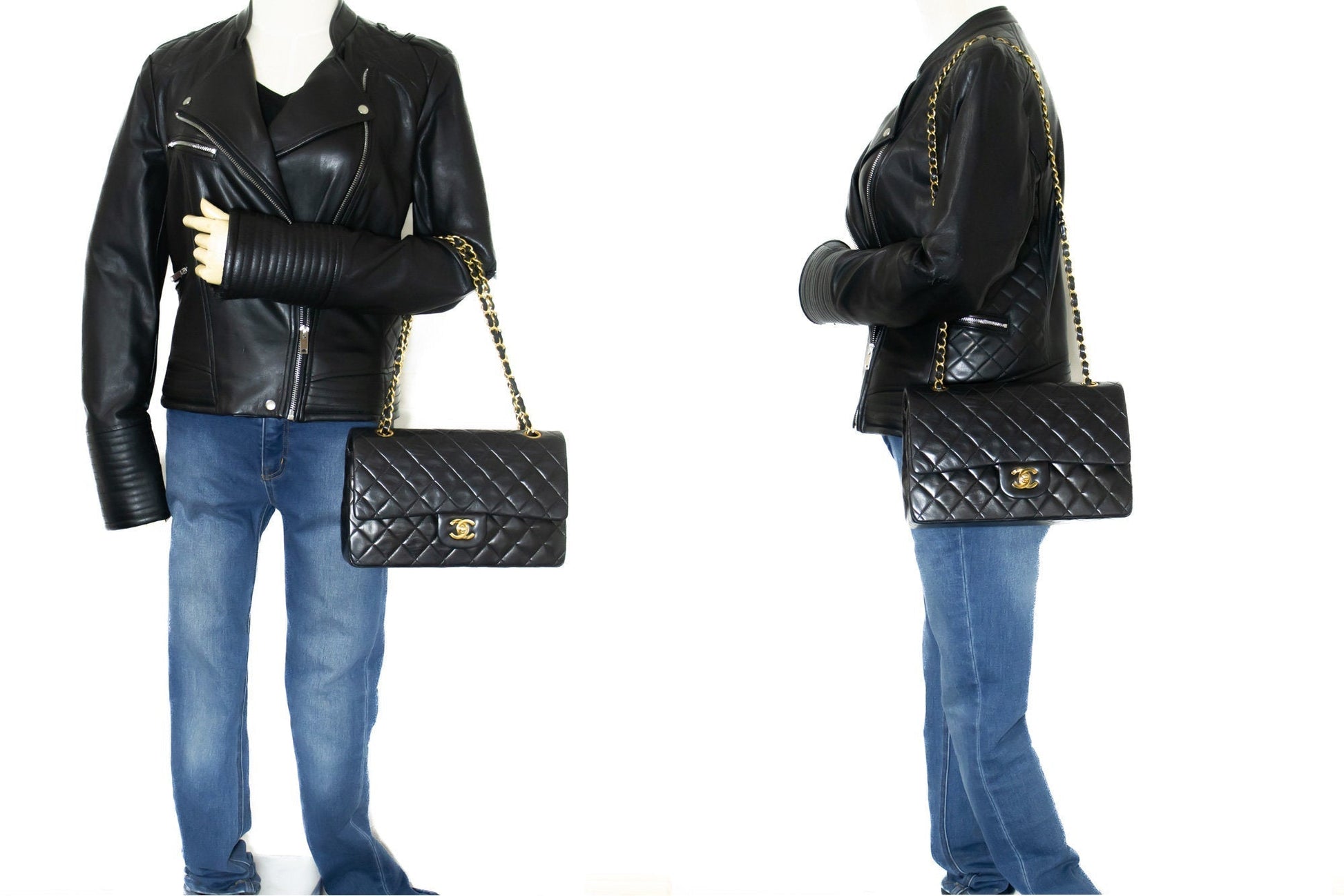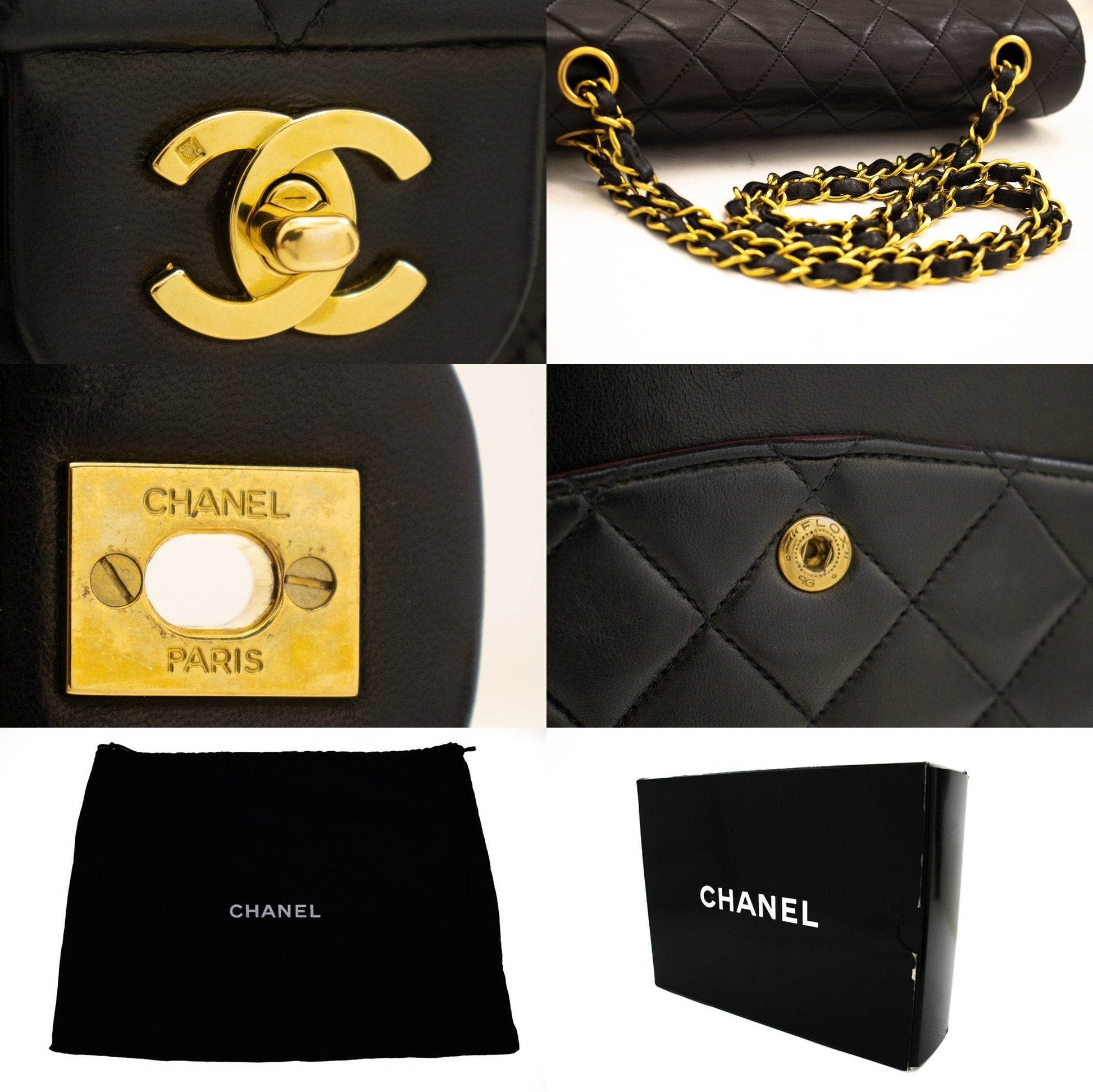 An authentic CHANEL Classic Double Flap 10" Chain Shoulder Bag Black made of black Lambskin k71 This item is Vintage / Classic. The year of manufacture would be 1994-1996.