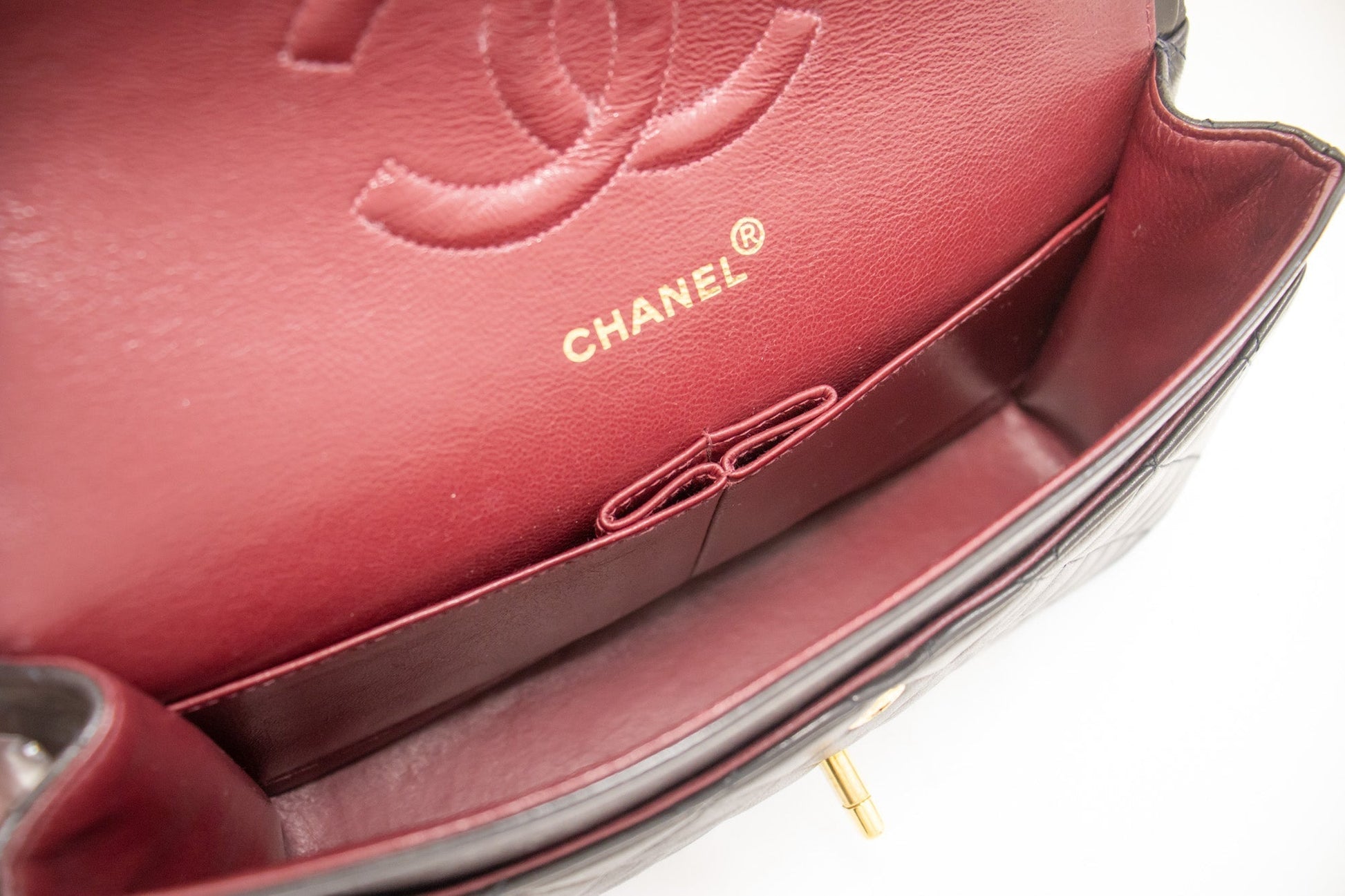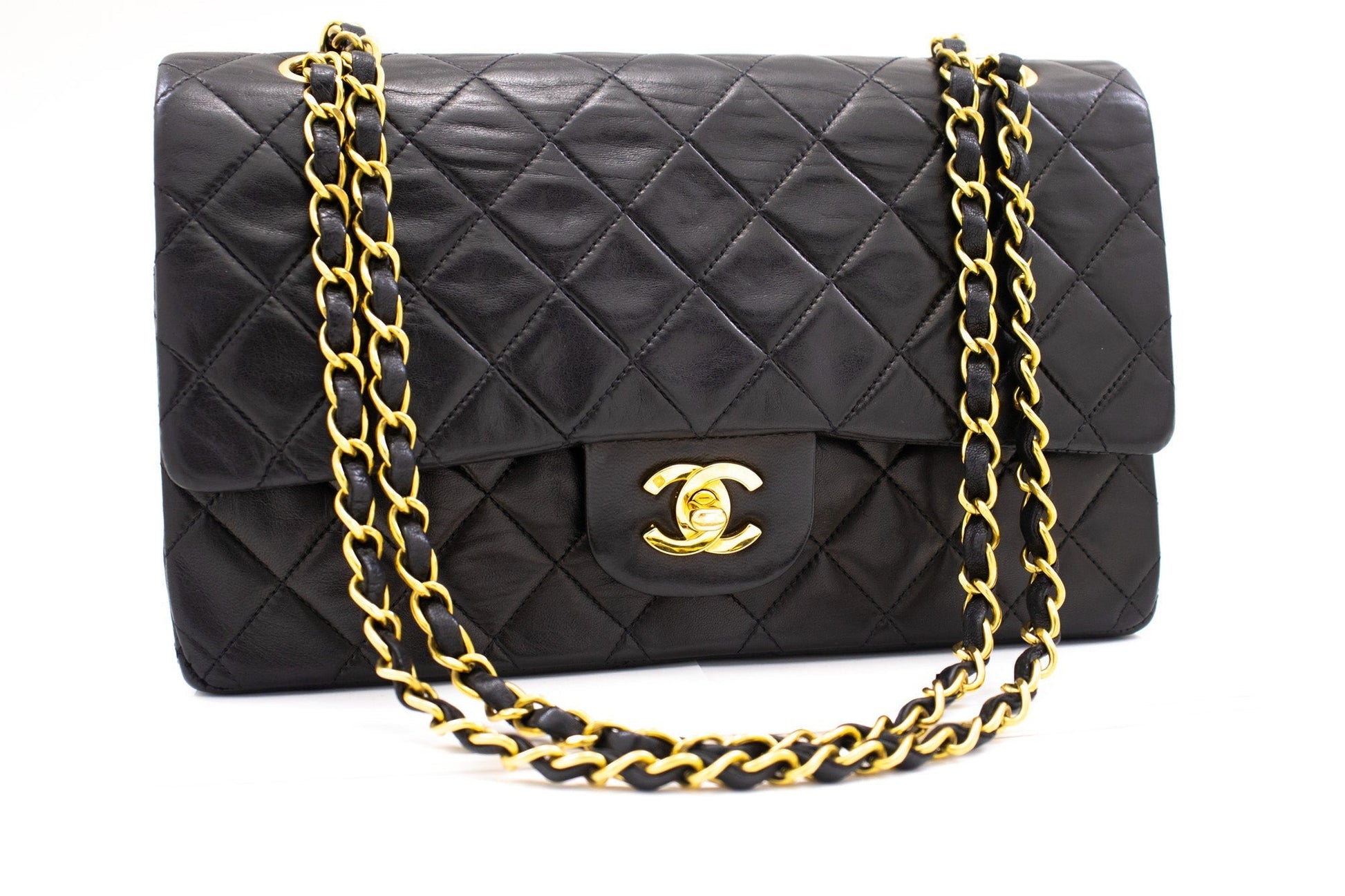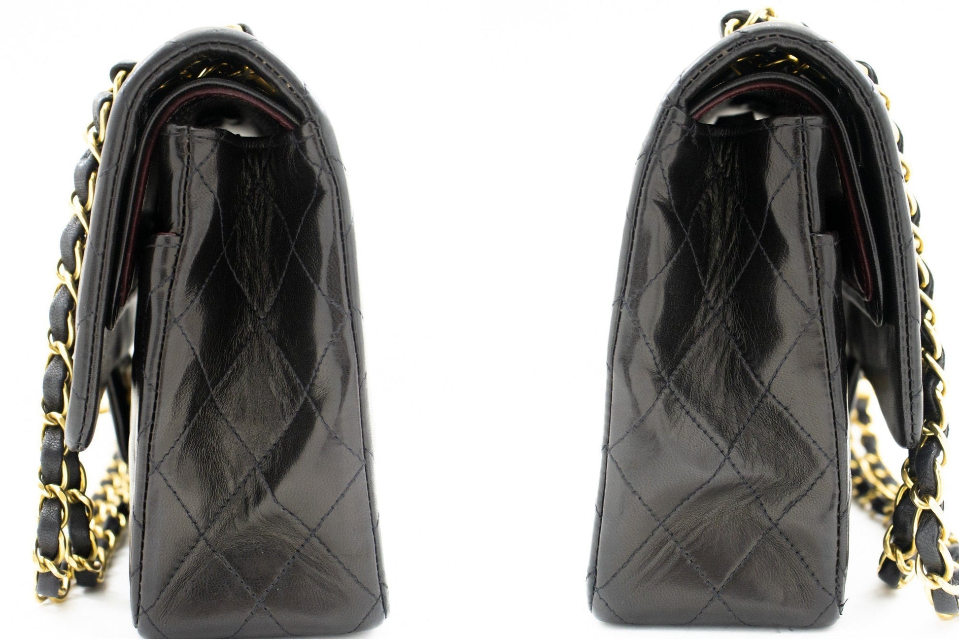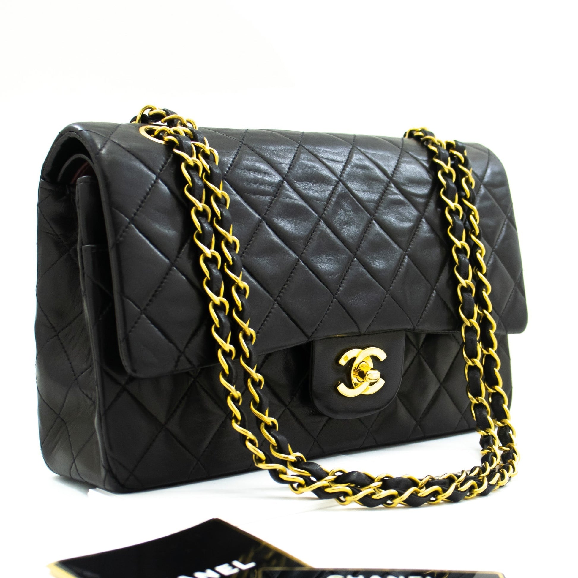 An authentic CHANEL Classic Double Flap 10" Chain Shoulder Bag Black made of black Lambskin k71 This item is Vintage / Classic. The year of manufacture would be 1994-1996.