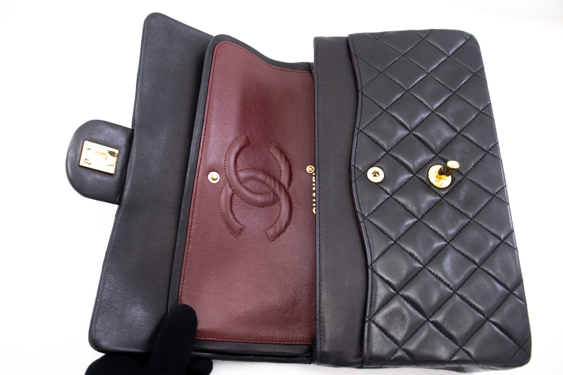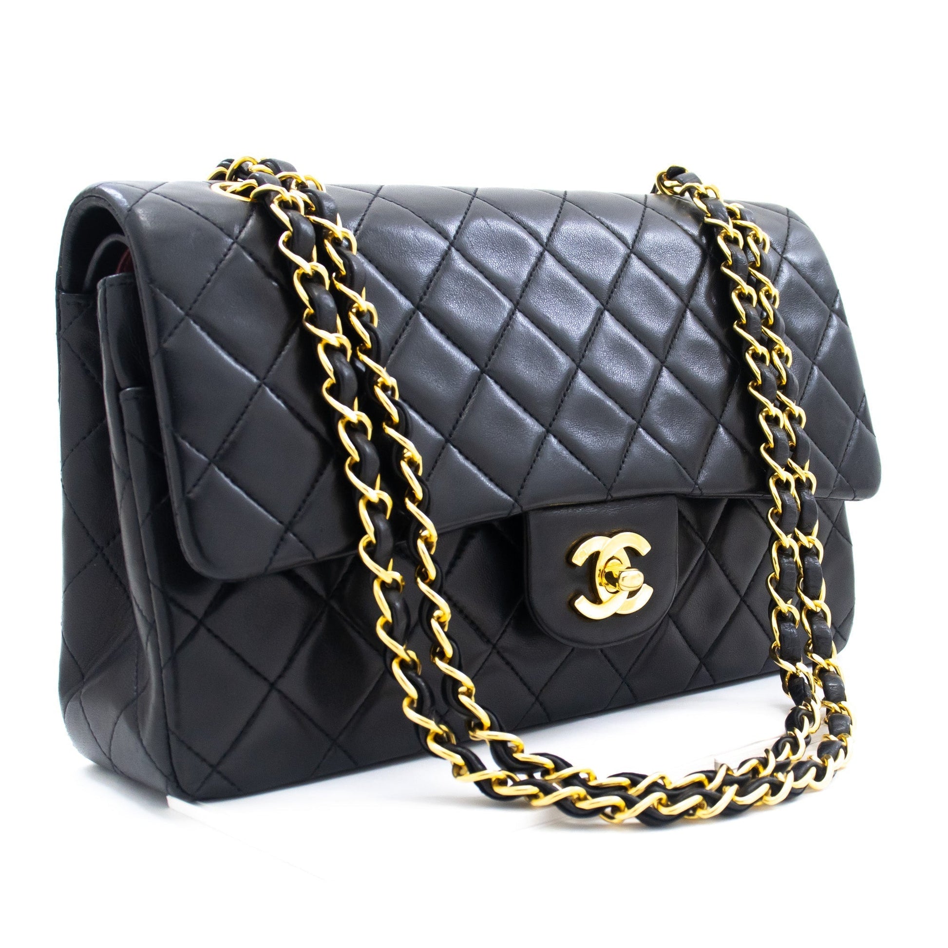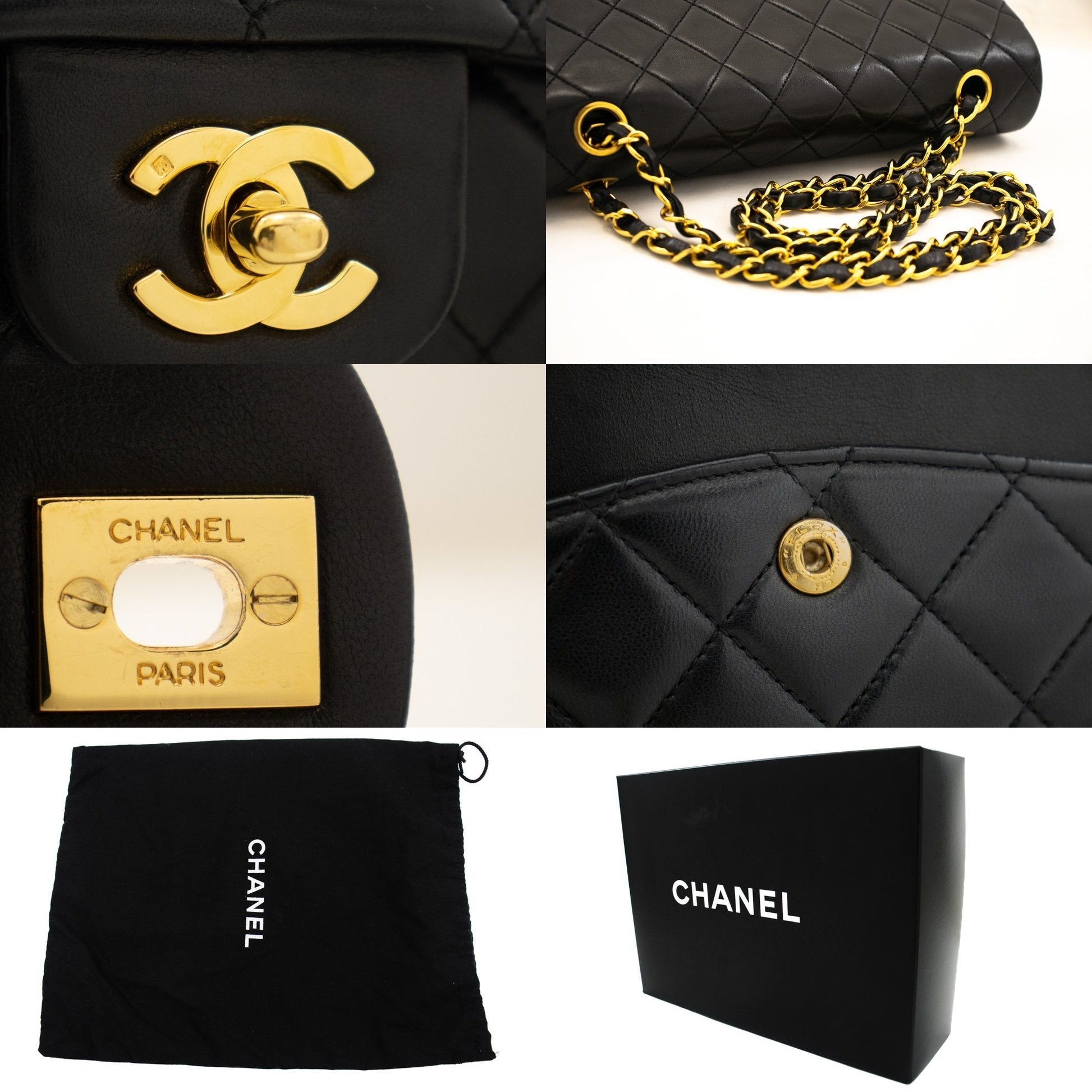 An authentic CHANEL Classic Double Flap 10" Chain Shoulder Bag Black made of black Lambskin k76 This item is Vintage / Classic. The year of manufacture would be 1994-1996.