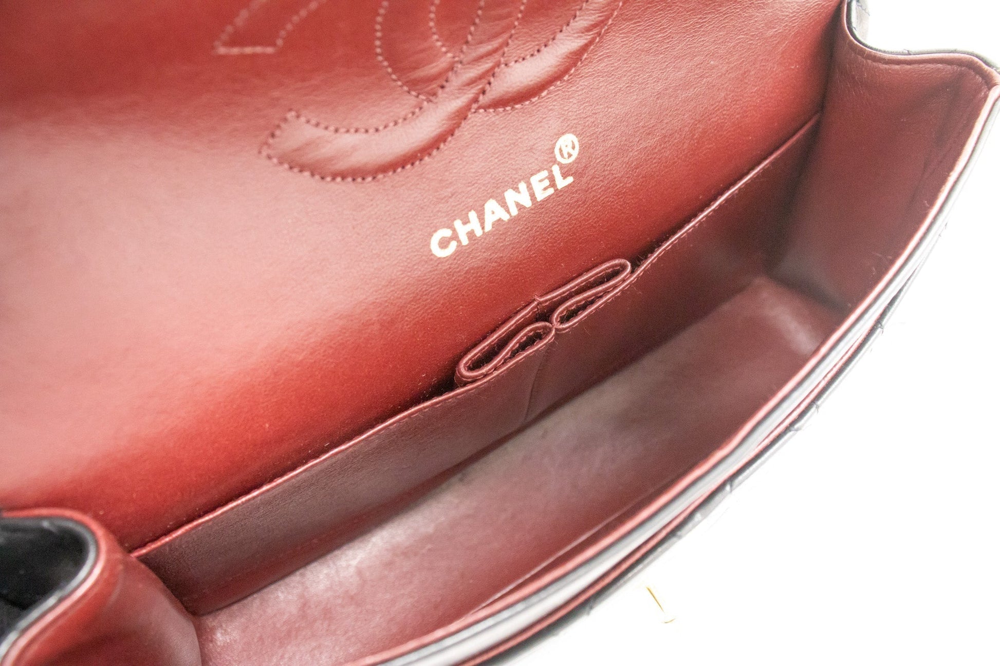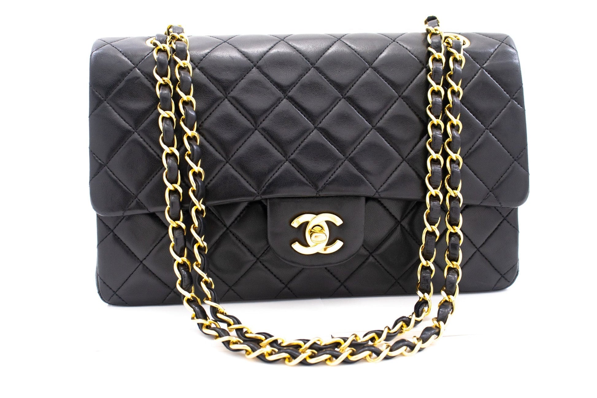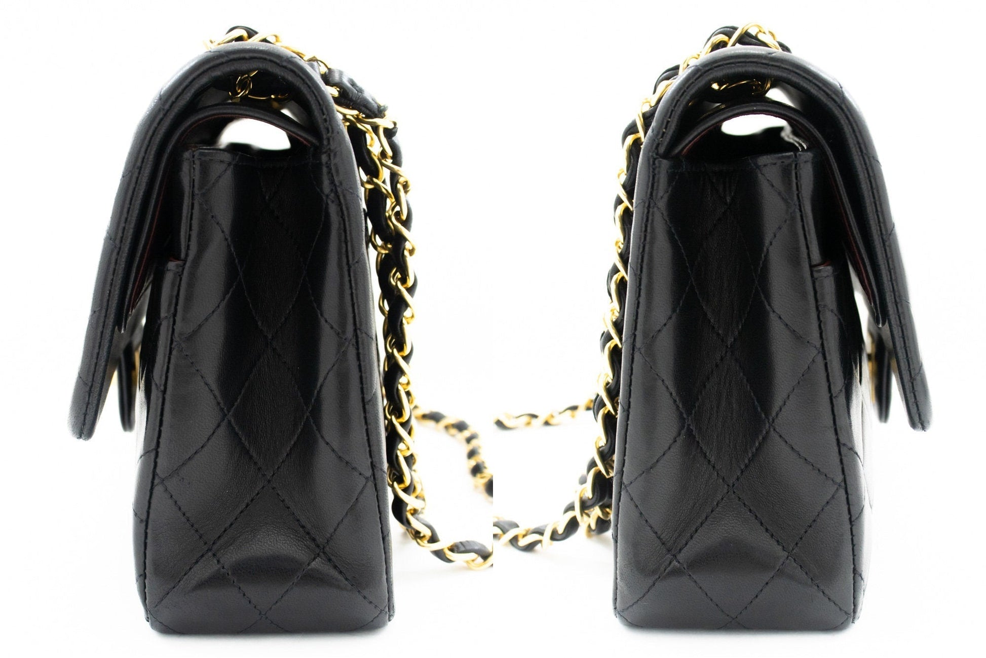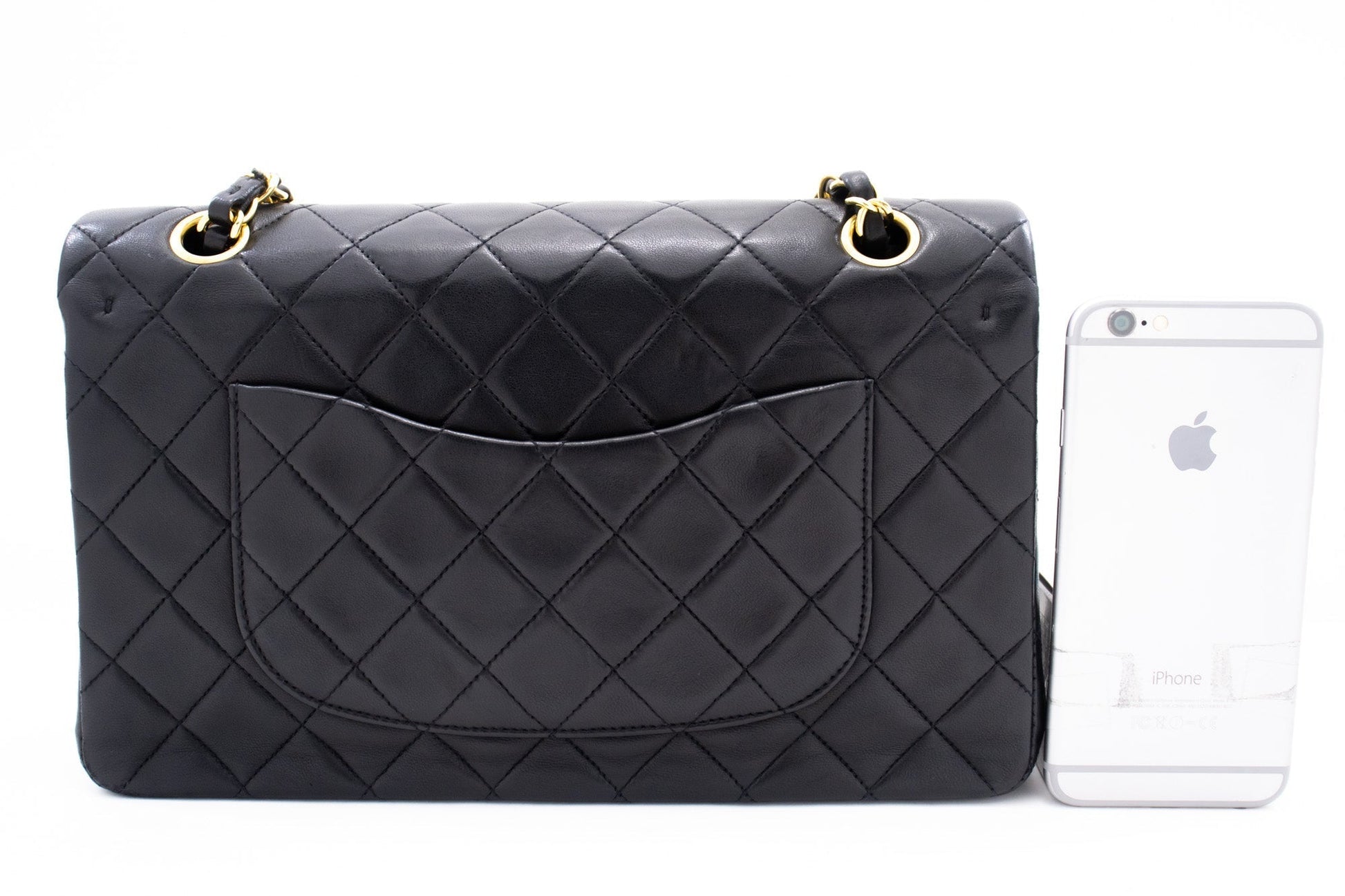 An authentic CHANEL Classic Double Flap 10" Chain Shoulder Bag Black made of black Lambskin k76 This item is Vintage / Classic. The year of manufacture would be 1994-1996.