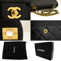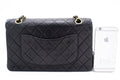 CHANEL Classic Double Flap 10" Chain Shoulder Bag Black Lambskin k76