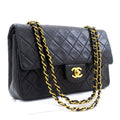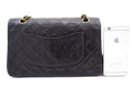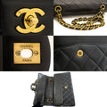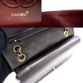 CHANEL Classic Double Flap 10" Chain Shoulder Bag Black Lambskin k77