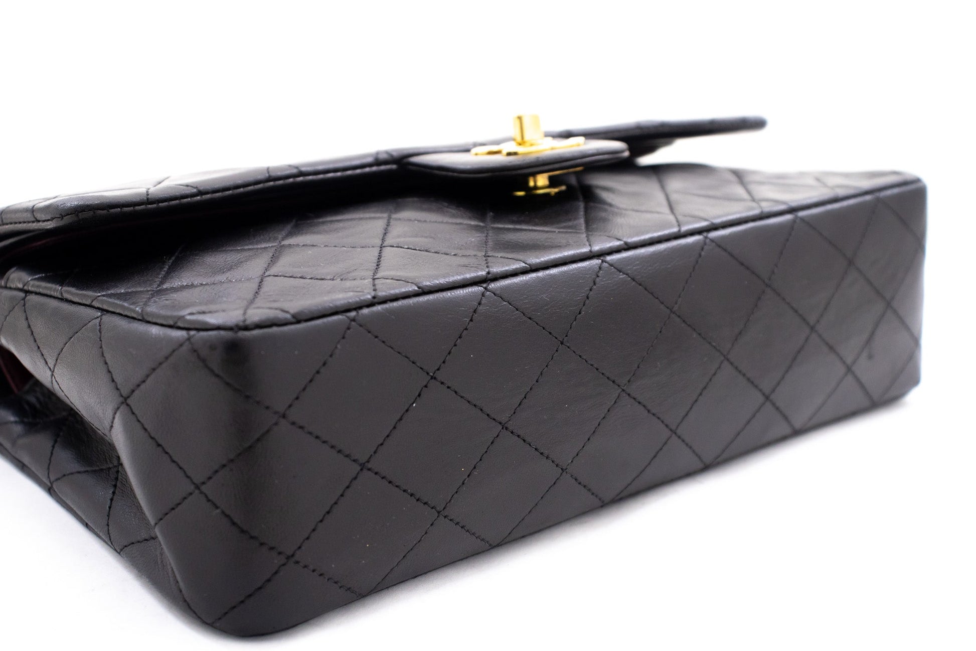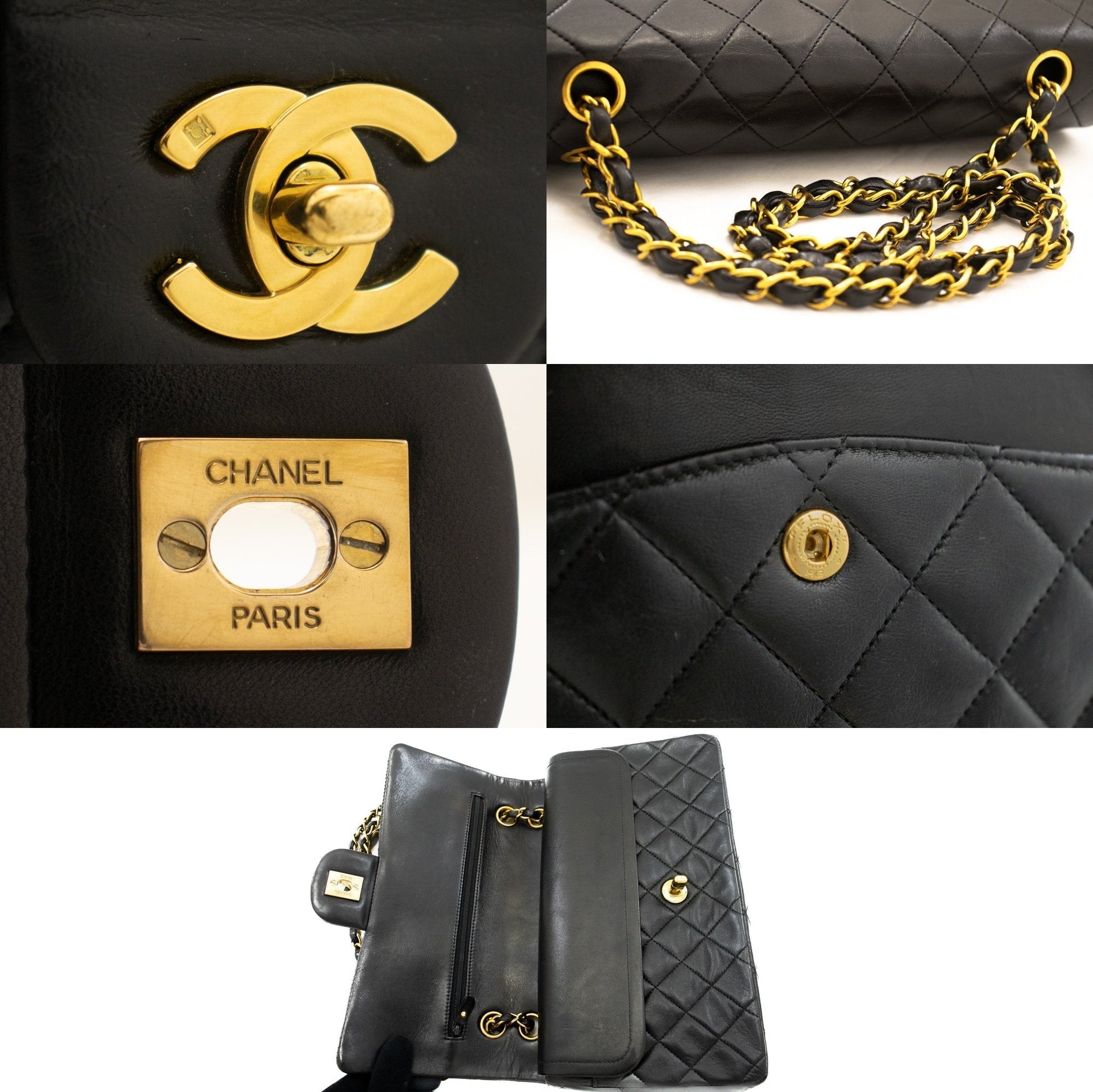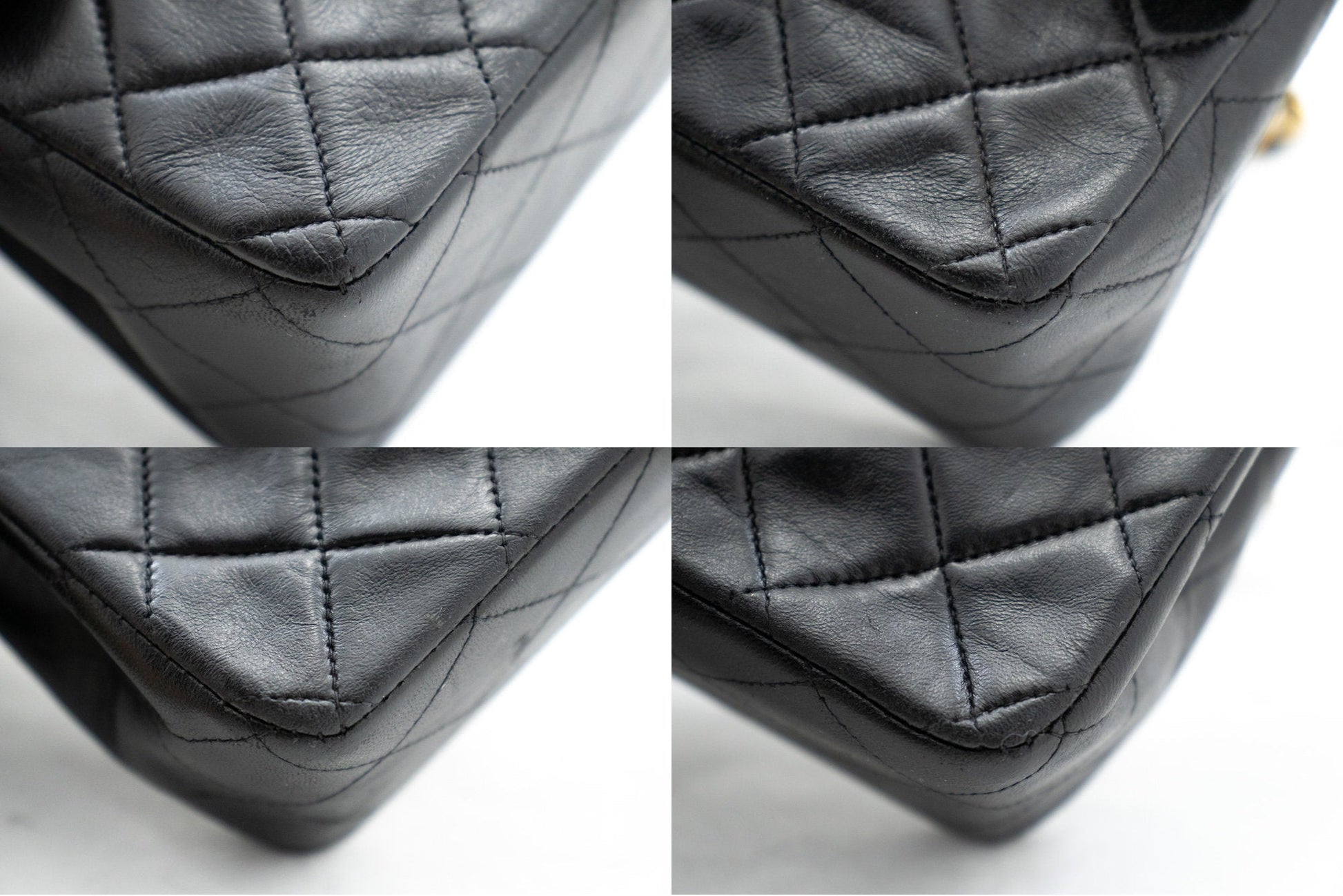 An authentic CHANEL Classic Double Flap 10" Chain Shoulder Bag Black made of black Lambskin k77 This item is Vintage / Classic. The year of manufacture would be 1994-1996.