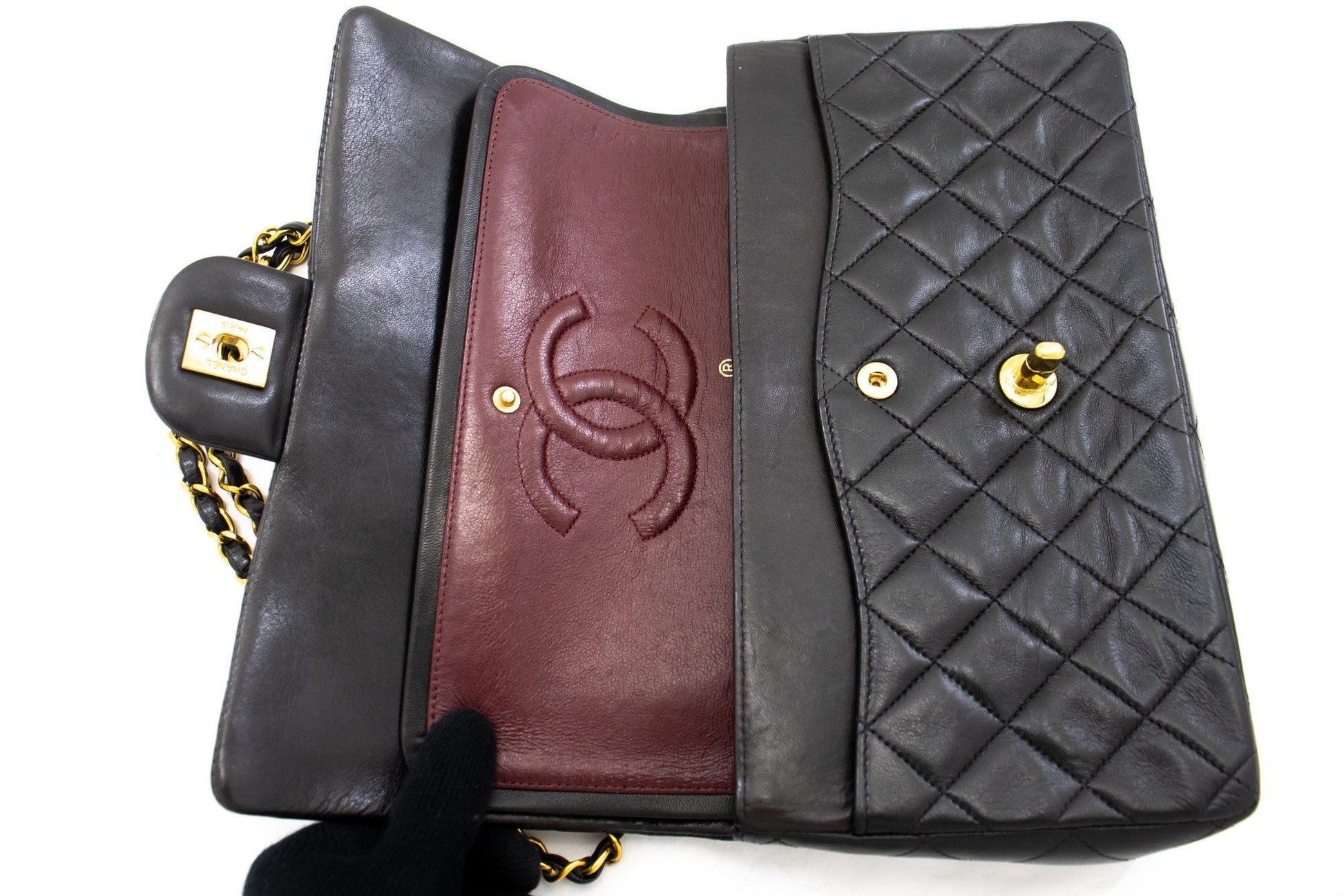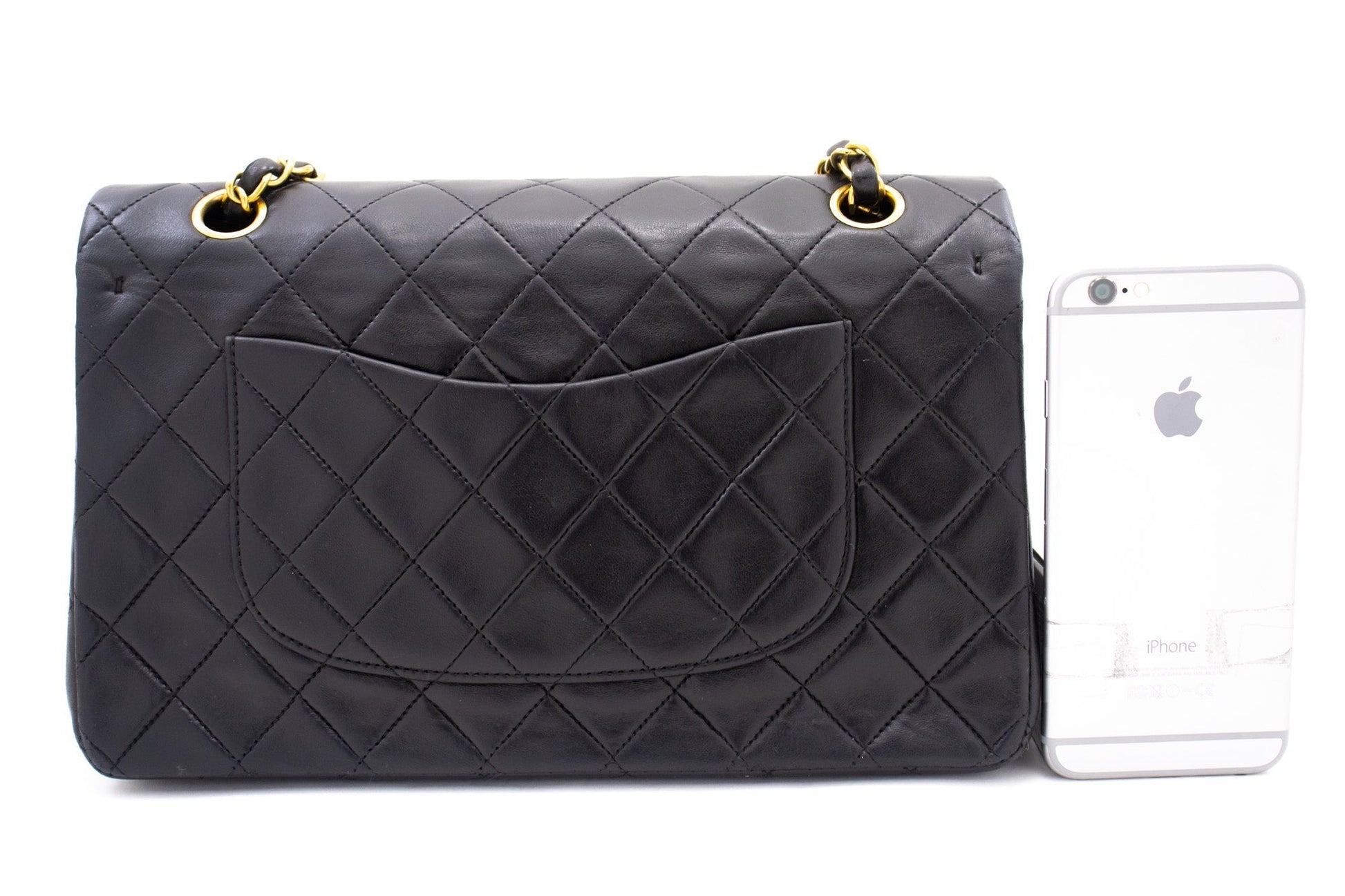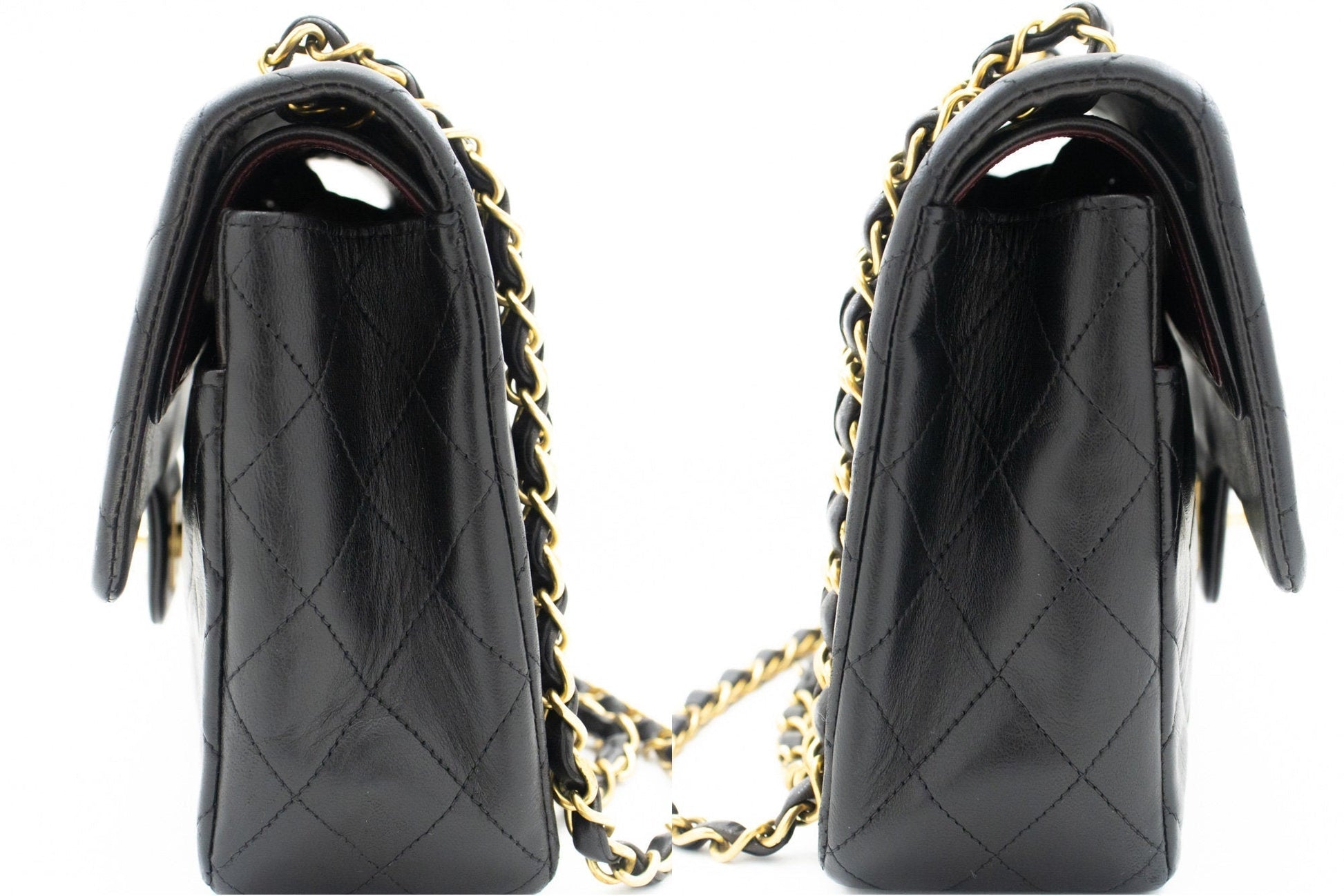 An authentic CHANEL Classic Double Flap 10" Chain Shoulder Bag Black made of black Lambskin k77 This item is Vintage / Classic. The year of manufacture would be 1994-1996.