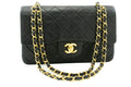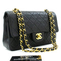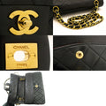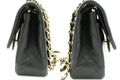 CHANEL Classic Double Flap 9" Chain Shoulder Bag Black Lambskin k51