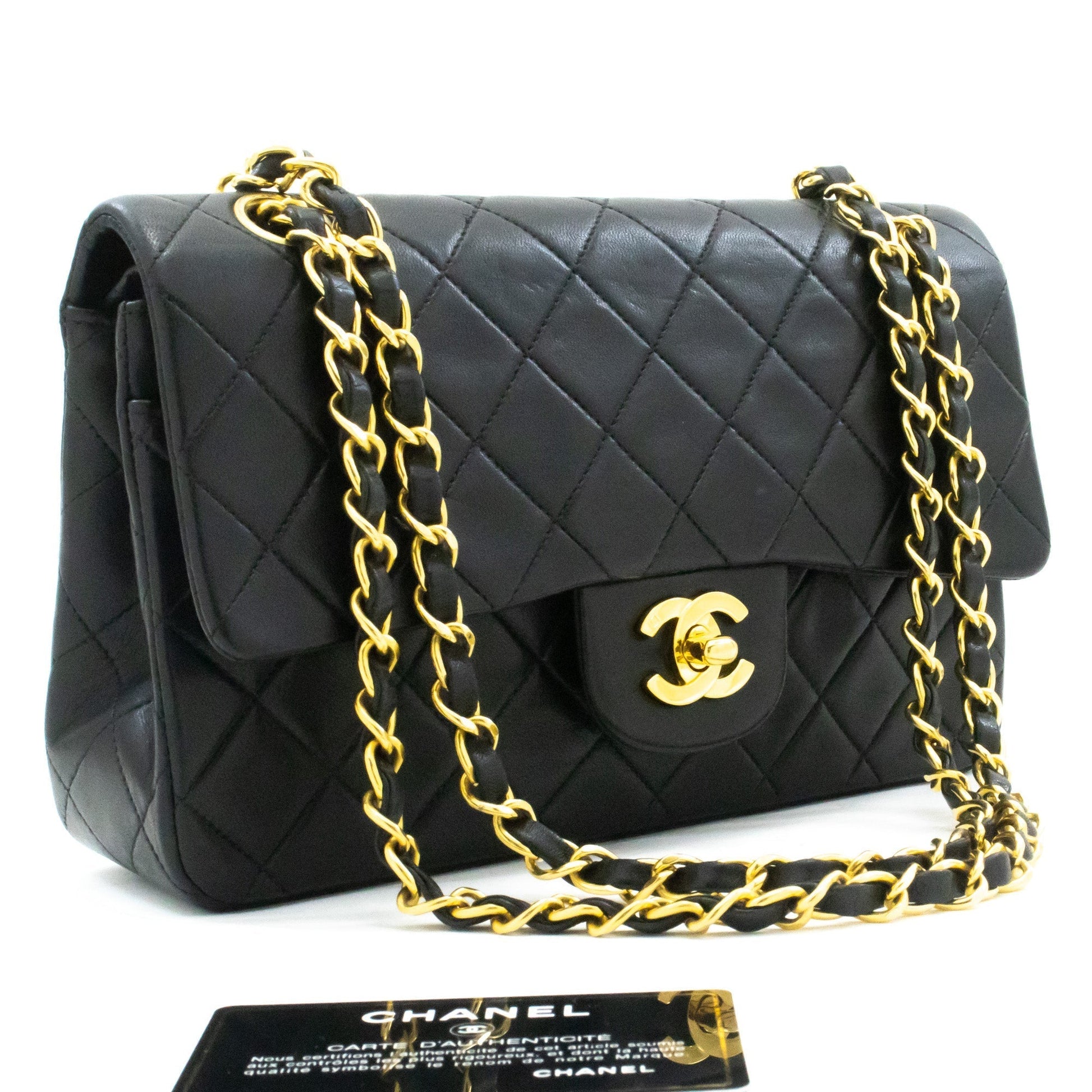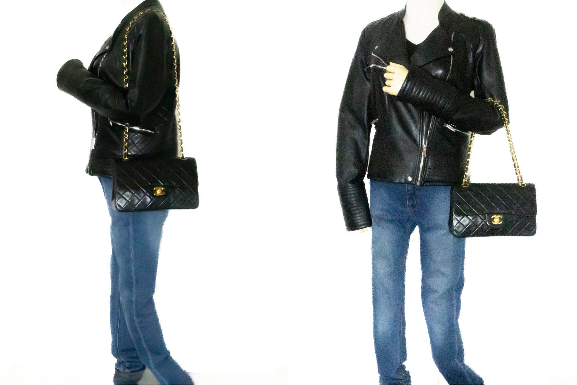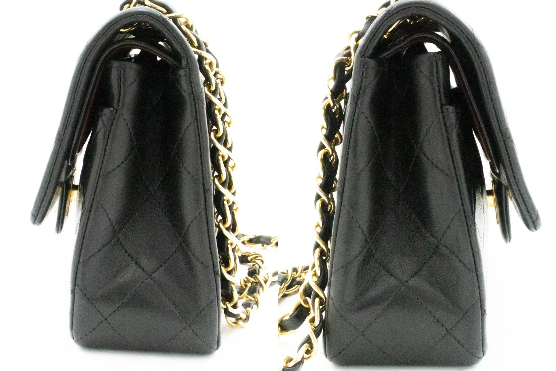 An authentic CHANEL Classic Double Flap 9" Chain Shoulder Bag Black made of black Lambskin k51 This item is Vintage / Classic. The year of manufacture would be 1991-1994.