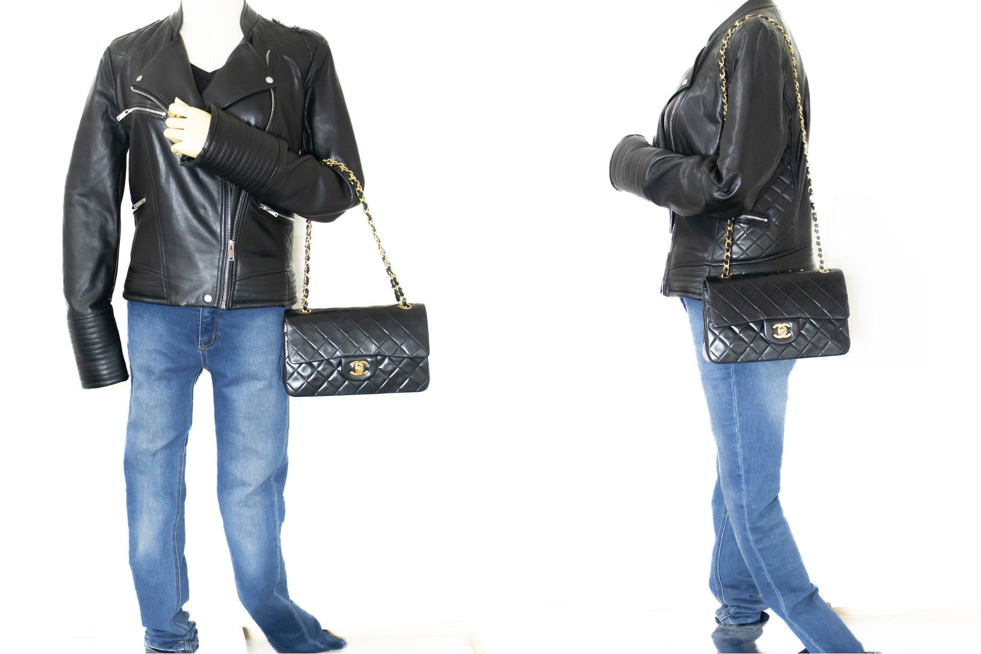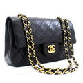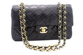 CHANEL Classic Double Flap 9" Chain Shoulder Bag Black Lambskin k80