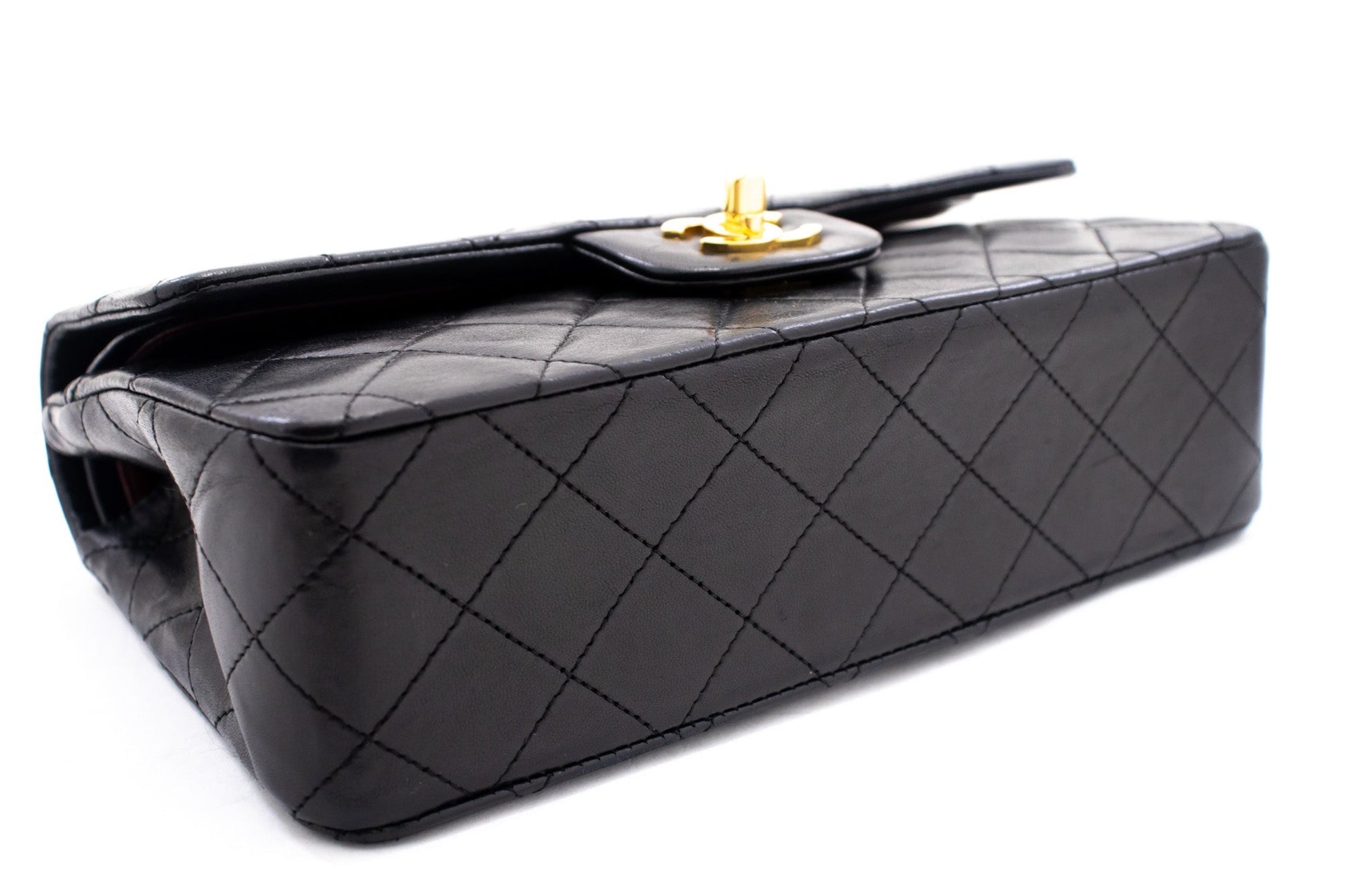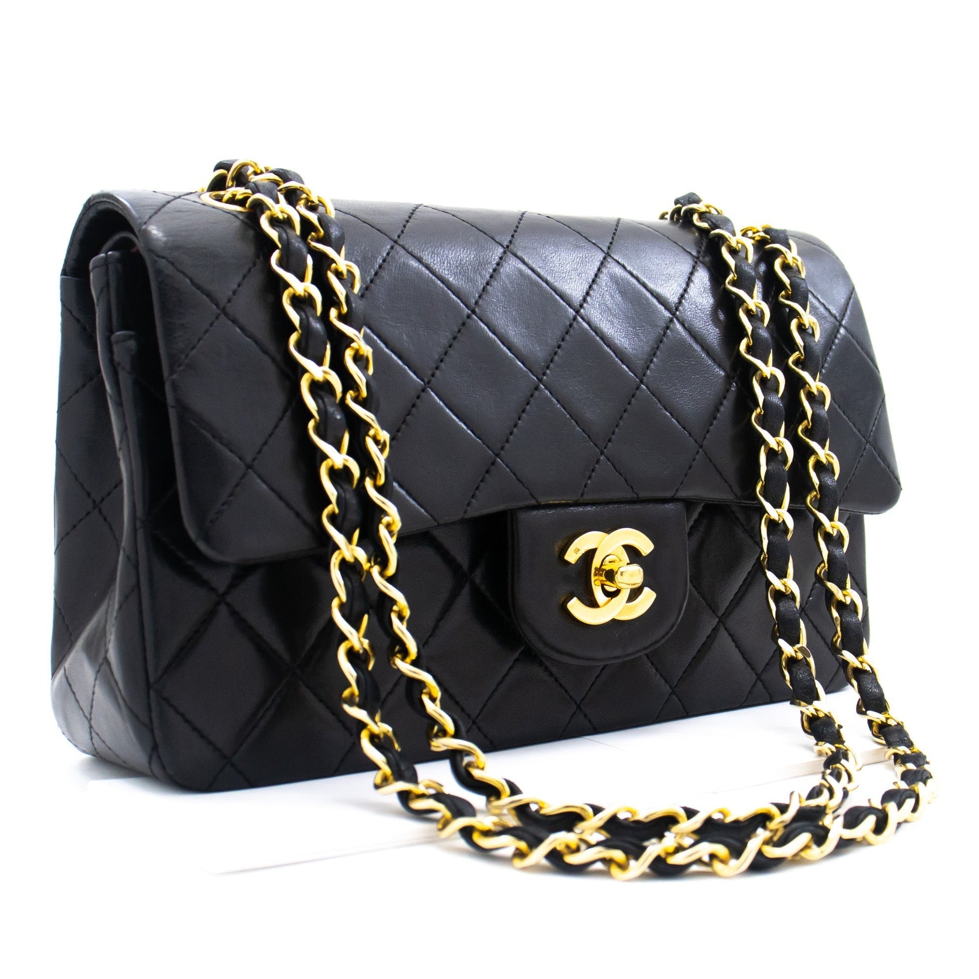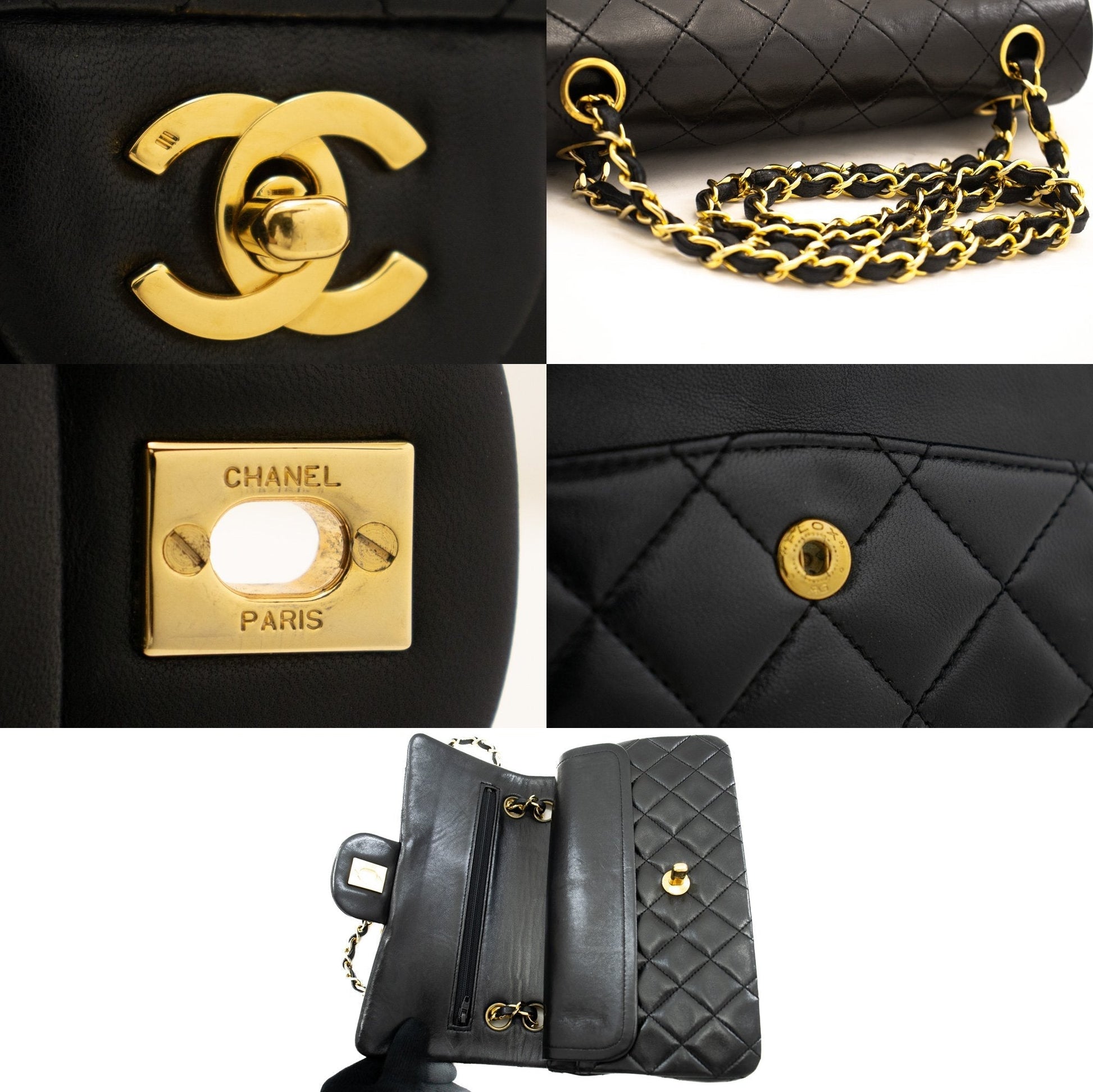 An authentic CHANEL Classic Double Flap 9" Chain Shoulder Bag Black made of black Lambskin k80 This item is Vintage / Classic. The year of manufacture would be 1989-1991.