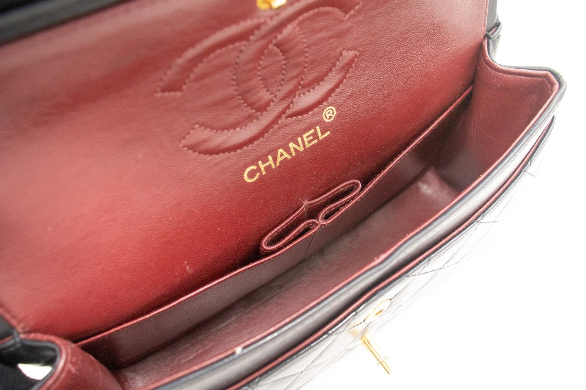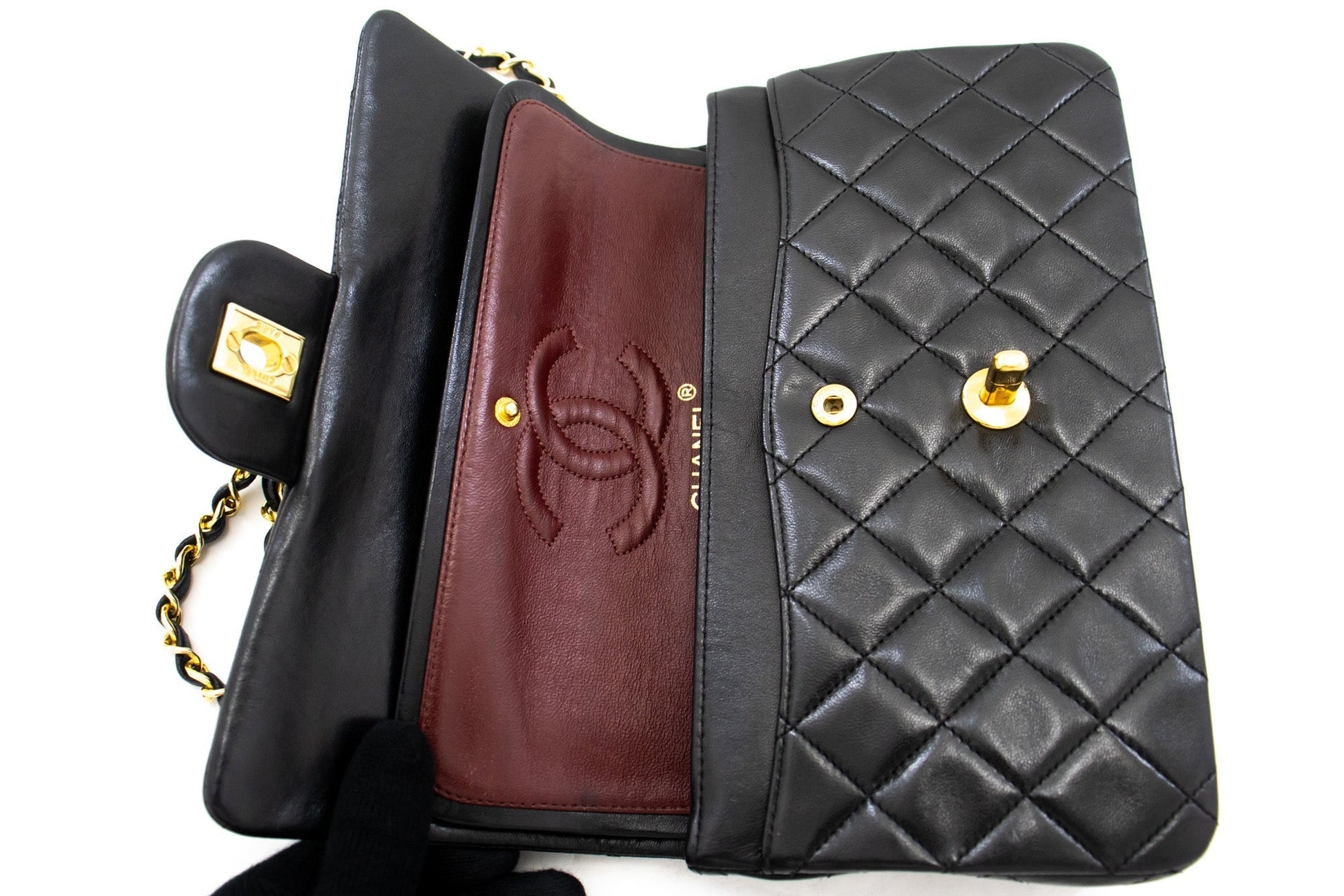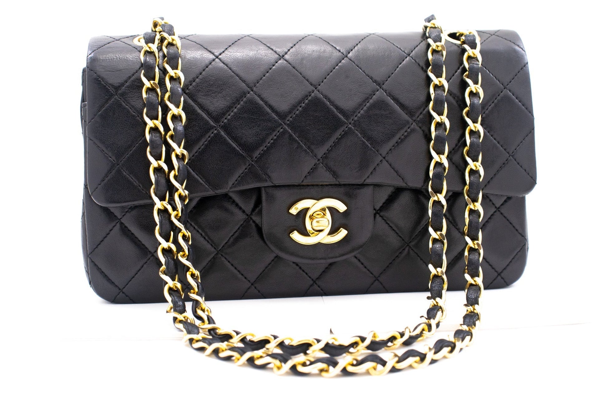 An authentic CHANEL Classic Double Flap 9" Chain Shoulder Bag Black made of black Lambskin k80 This item is Vintage / Classic. The year of manufacture would be 1989-1991.